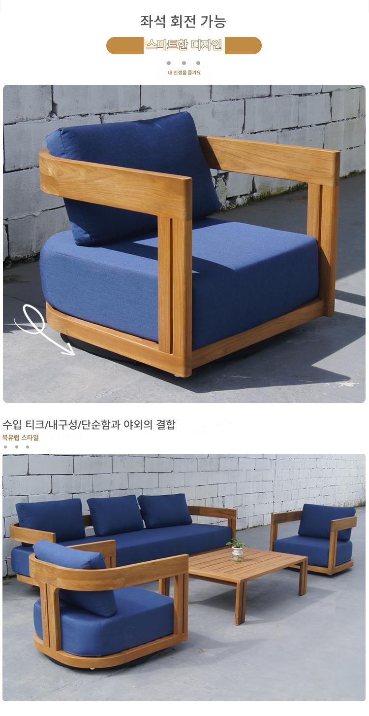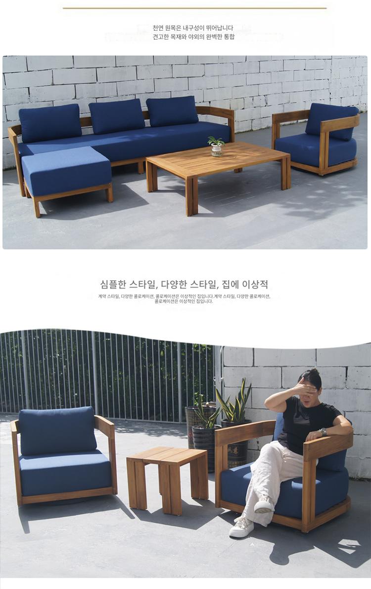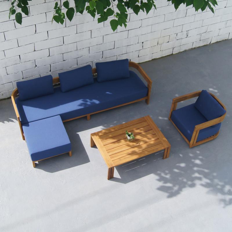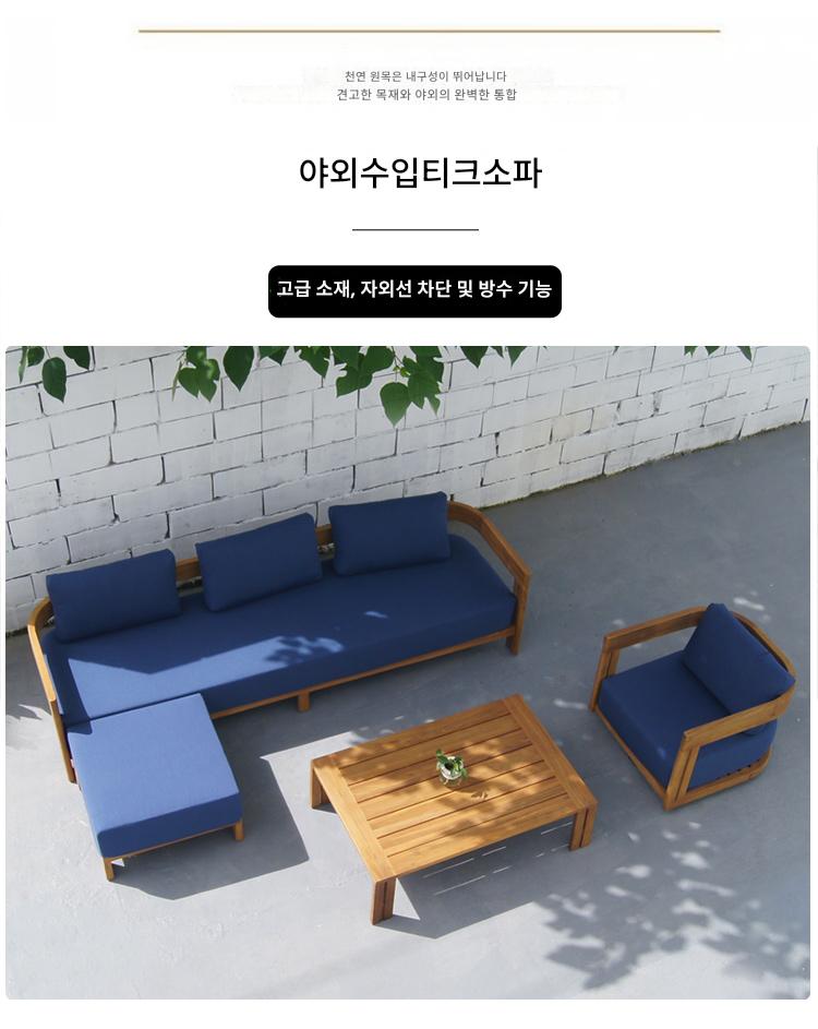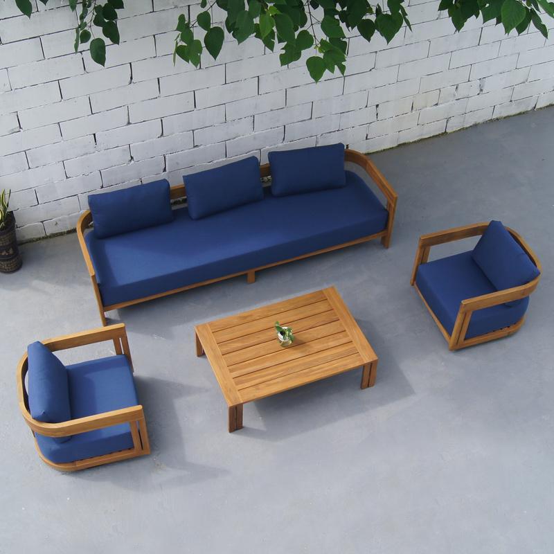 야외 티크 소파 안뜰 빌라 정원 견고한 나무 가구 야외 레저 침대 방수 선크림 조합 세트