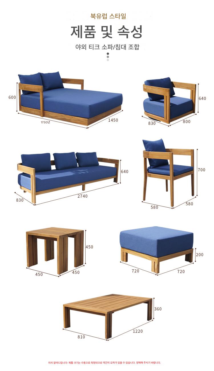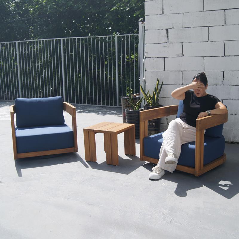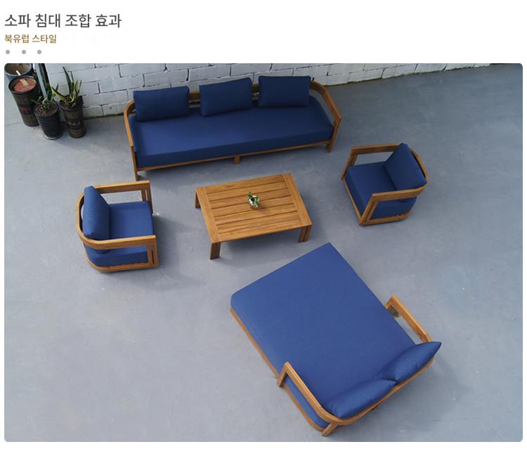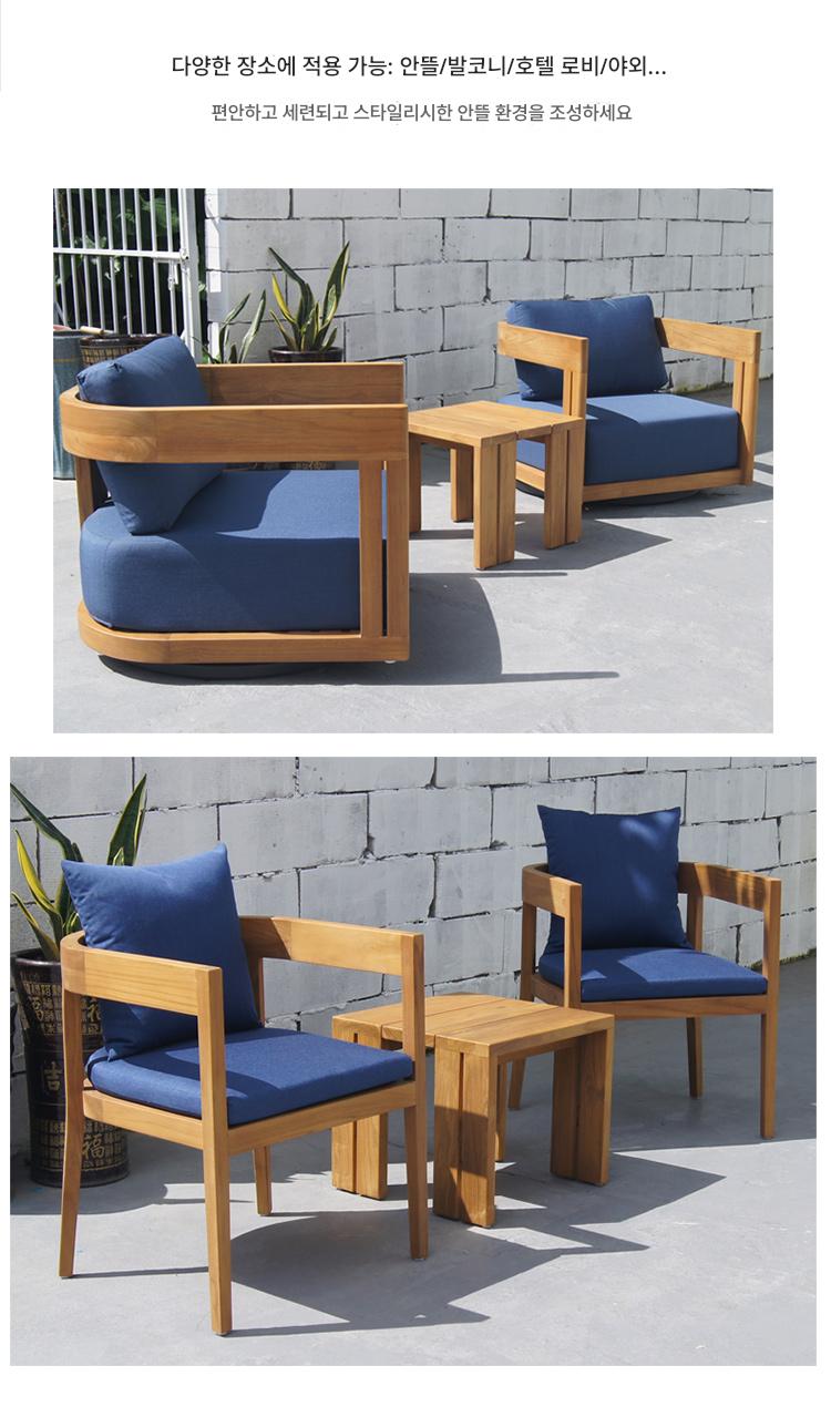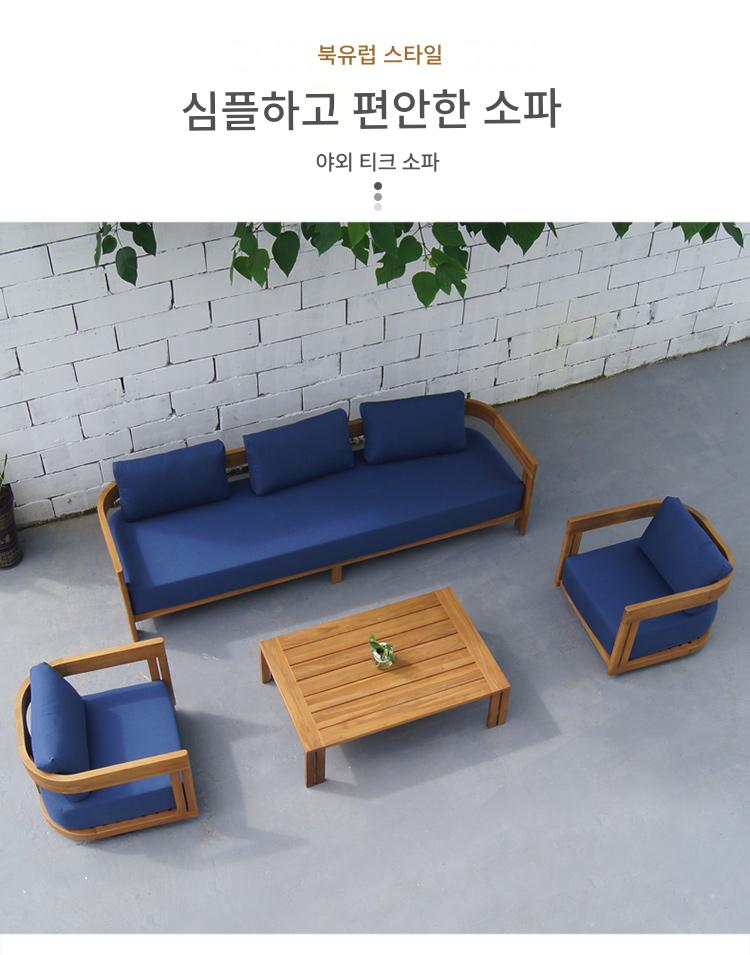 야외 티크 소파 안뜰 빌라 정원 견고한 나무 가구 야외 레저 침대 방수 선크림 조합 세트