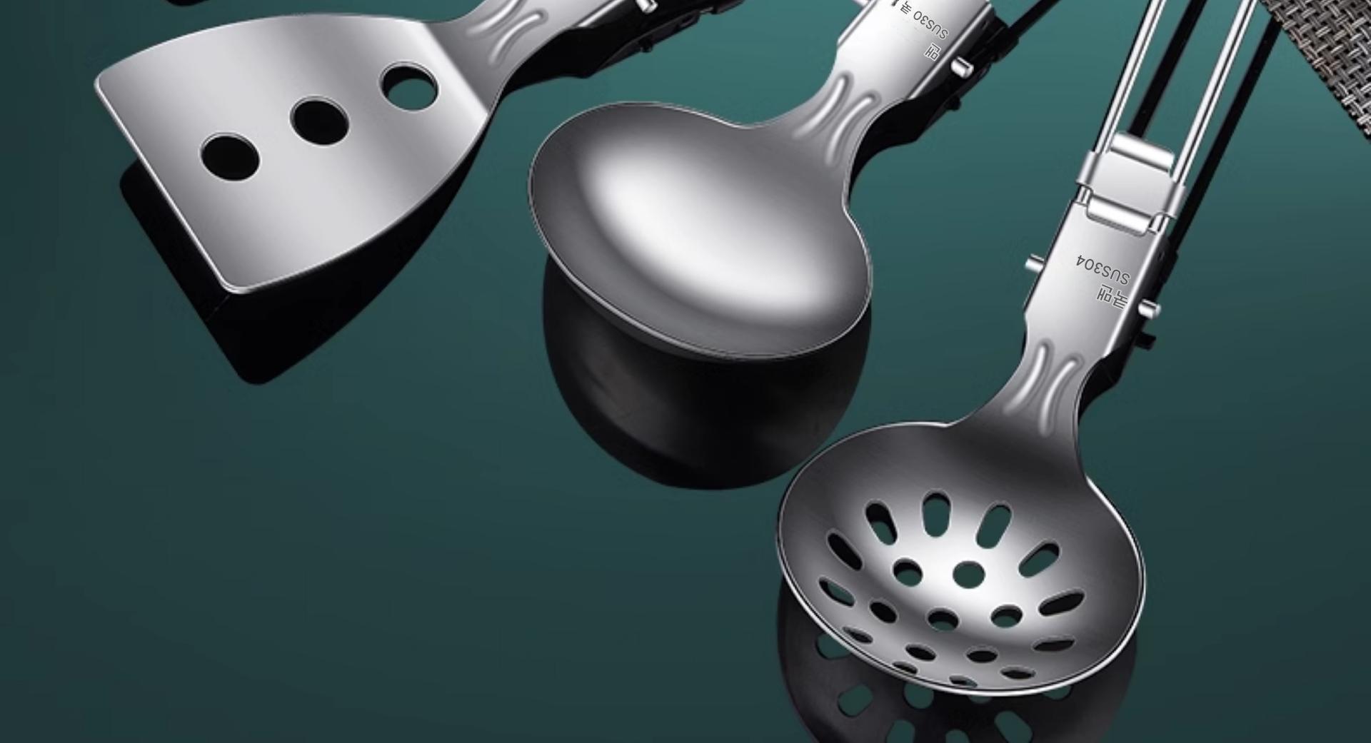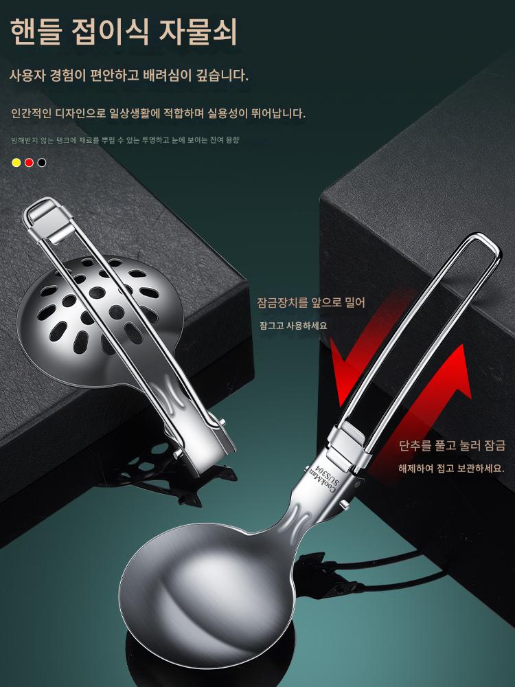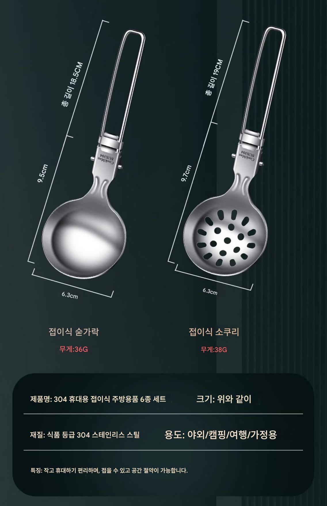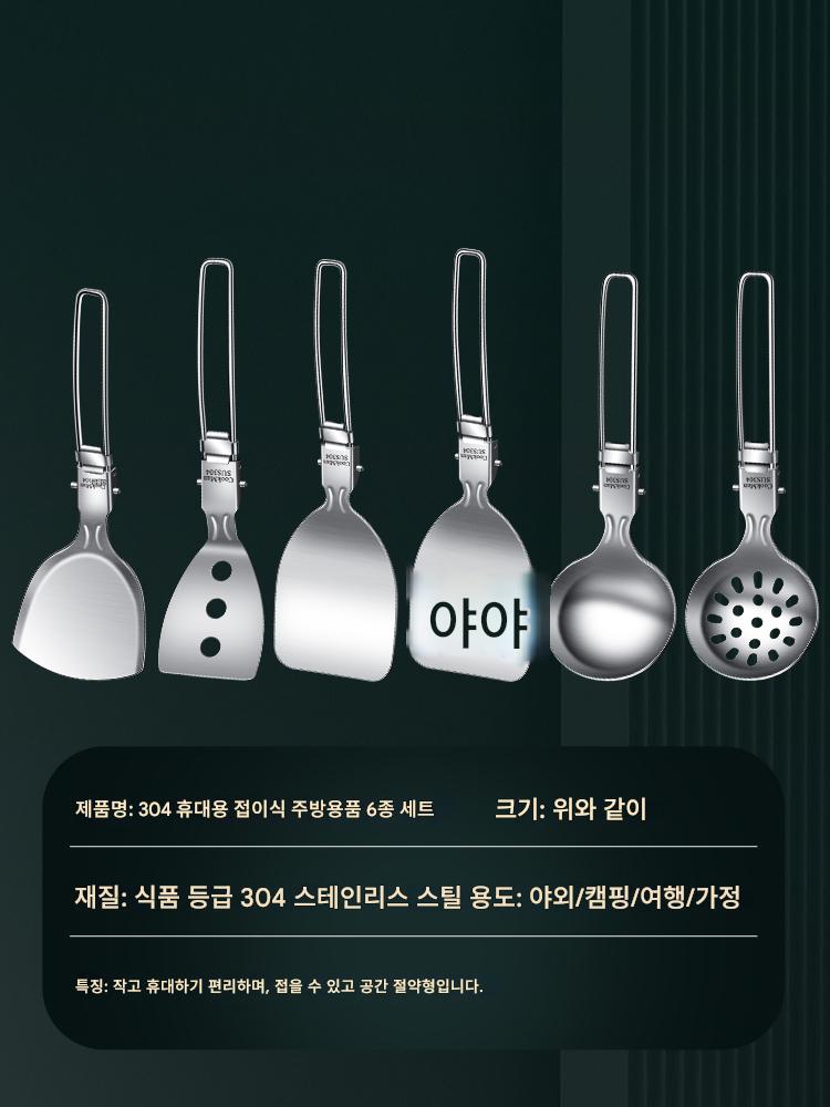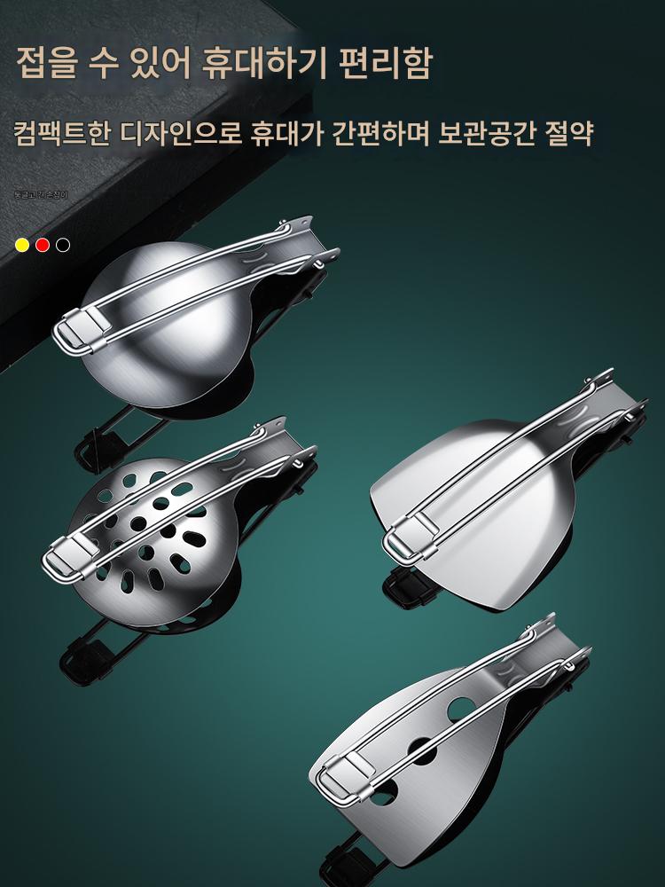 야외 휴대용 접이식 수프 스푼 체 냄비 삽 304 스테인리스 스틸 주방용품 세트 기숙사 캠핑 피크닉 조리도구