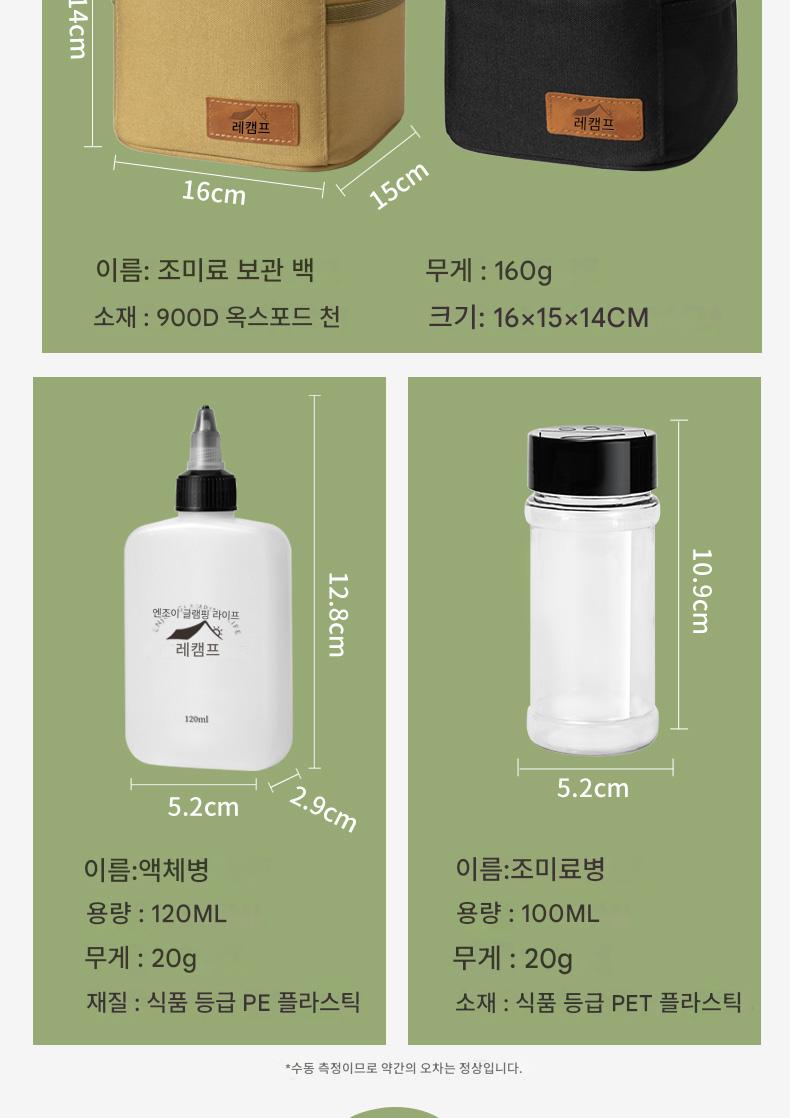 야외 휴대용 조미료 병 세트 캠핑 바베큐 조미료 병 조합 병 자동차 조미료 가방 보관 상자
