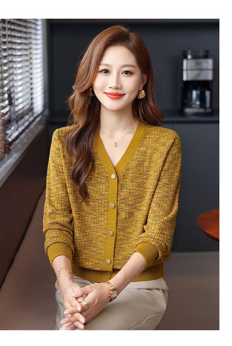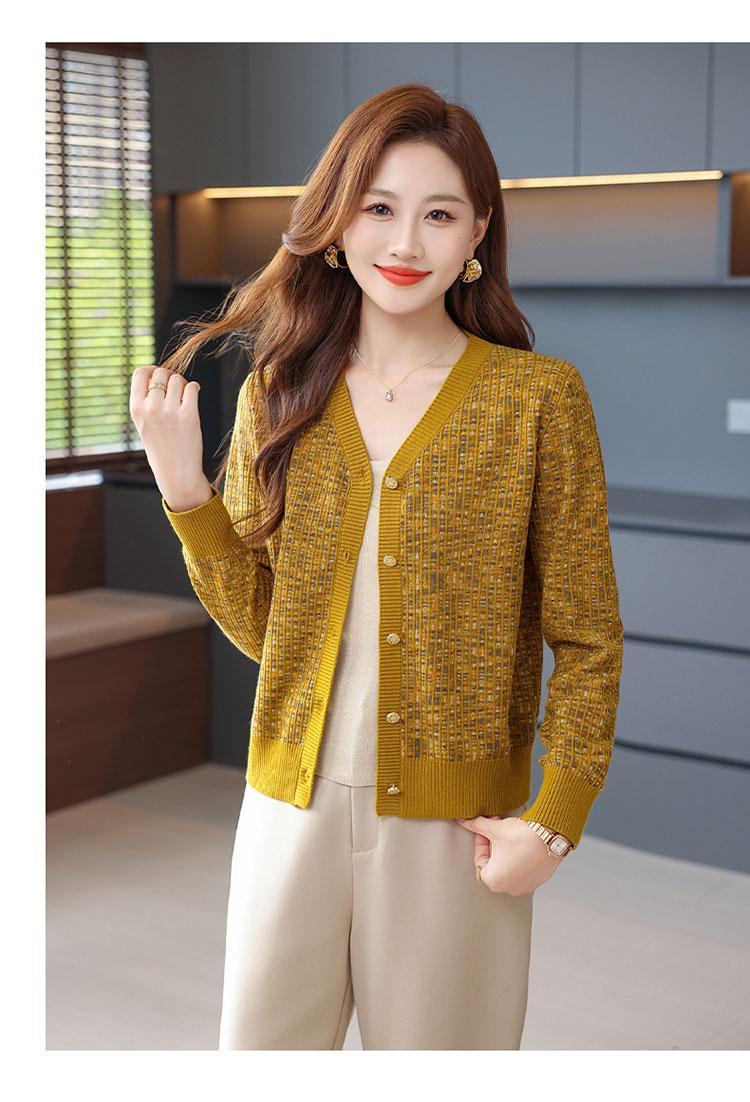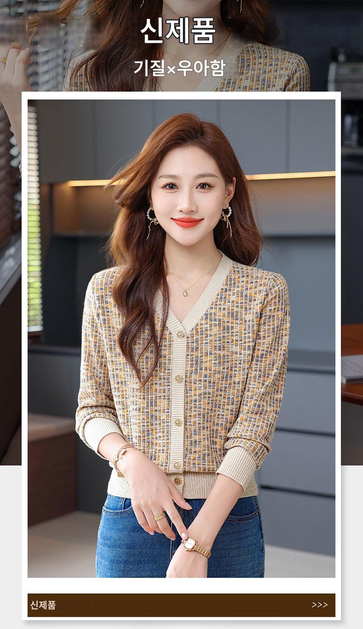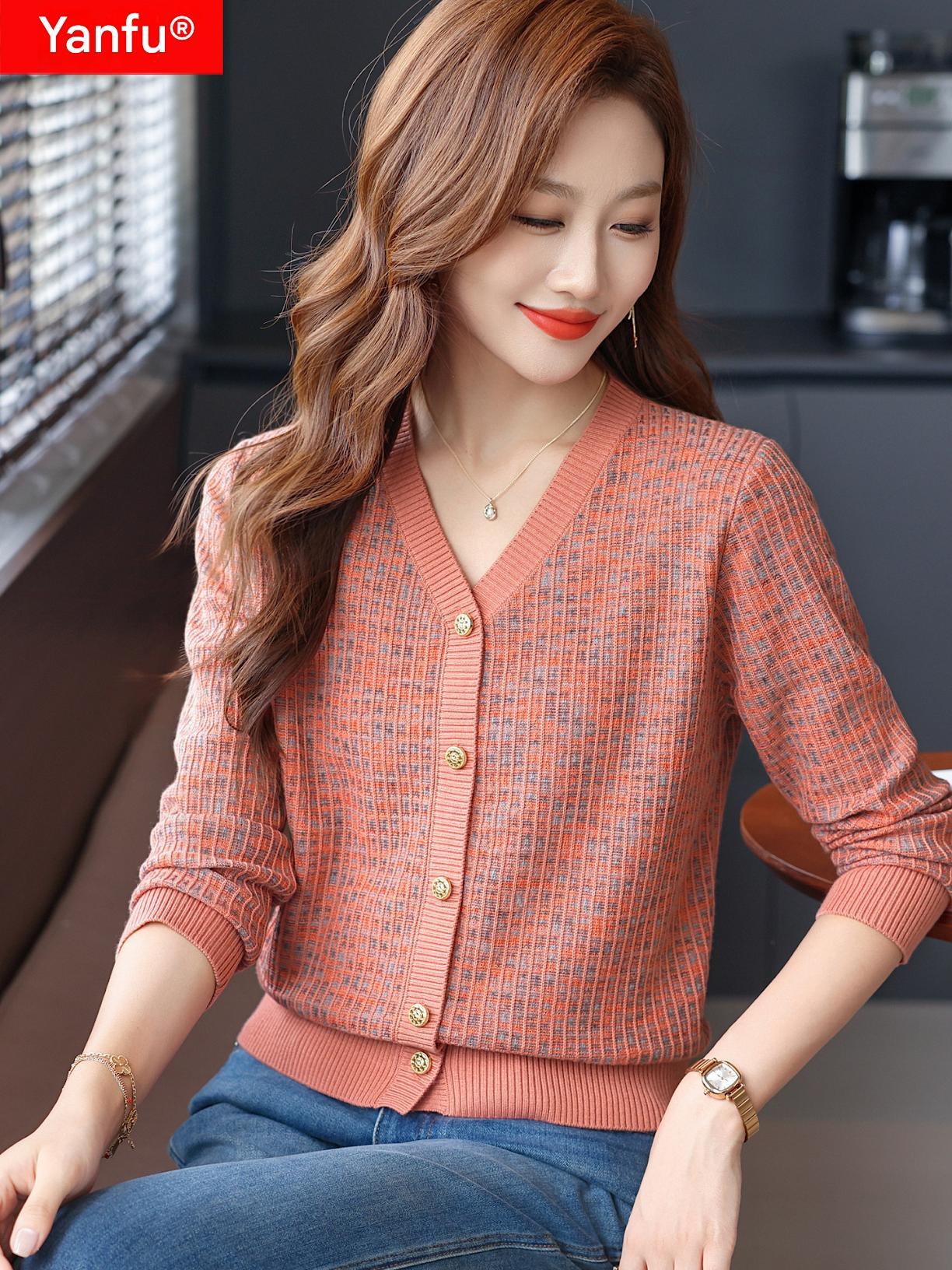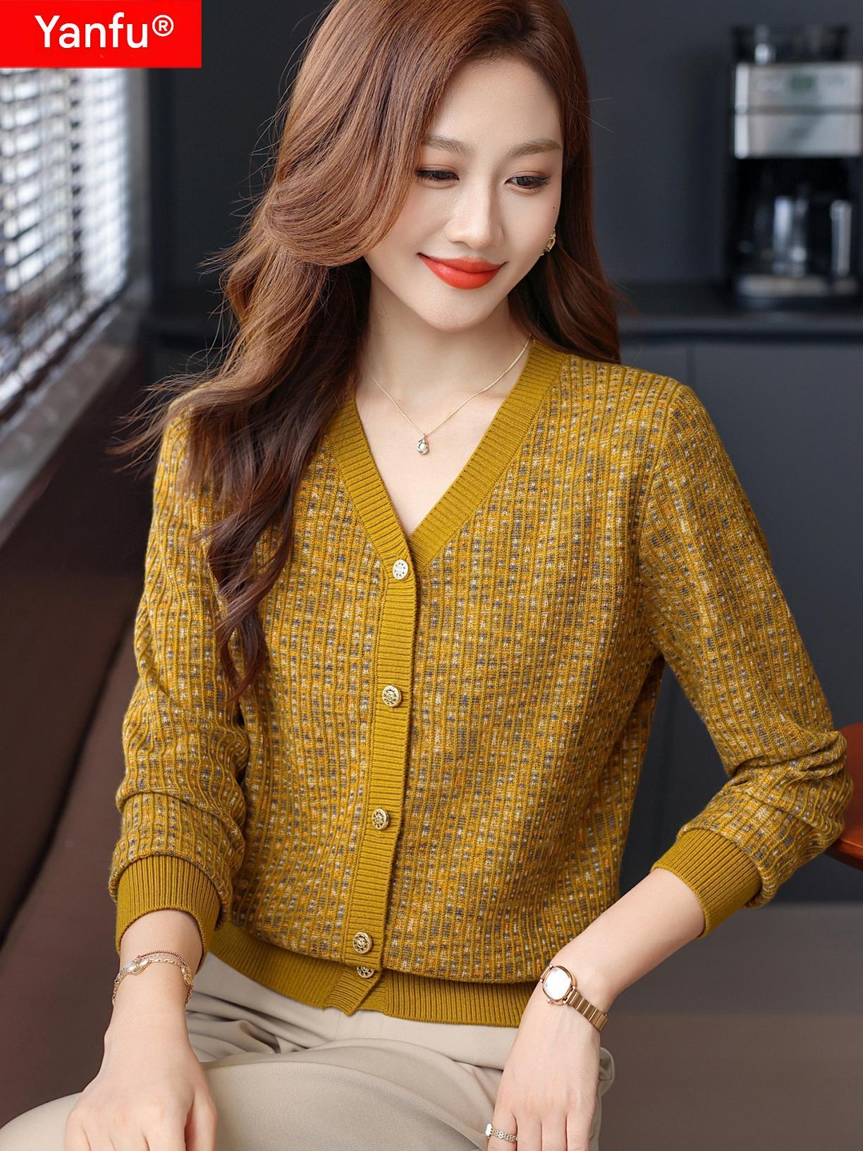 얀푸 100% 울 스웨터 여성 가을 신상품 V넥 니트 카디건 숏 스웨터 재킷 패셔너블 아우터 탑