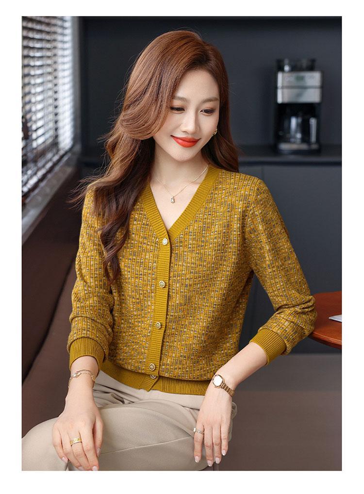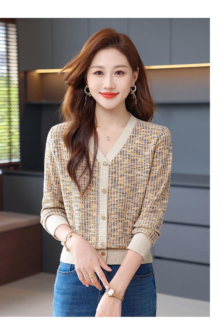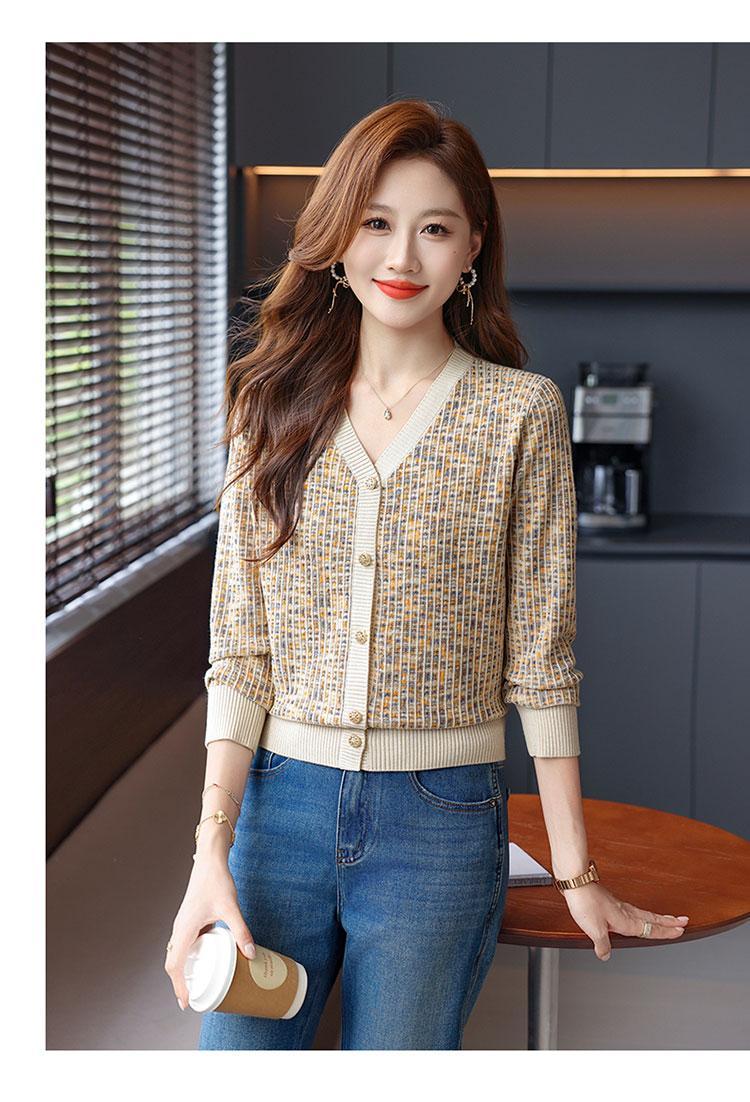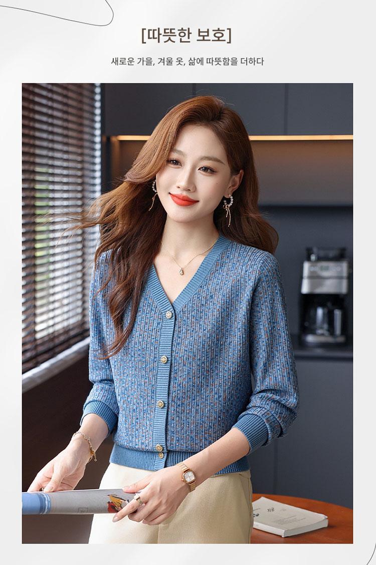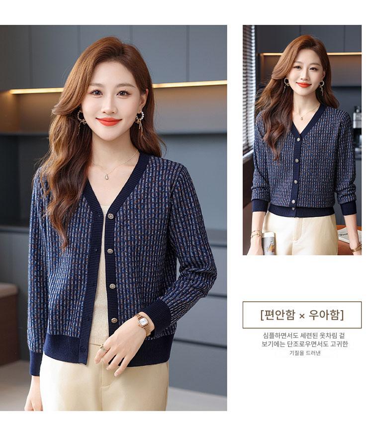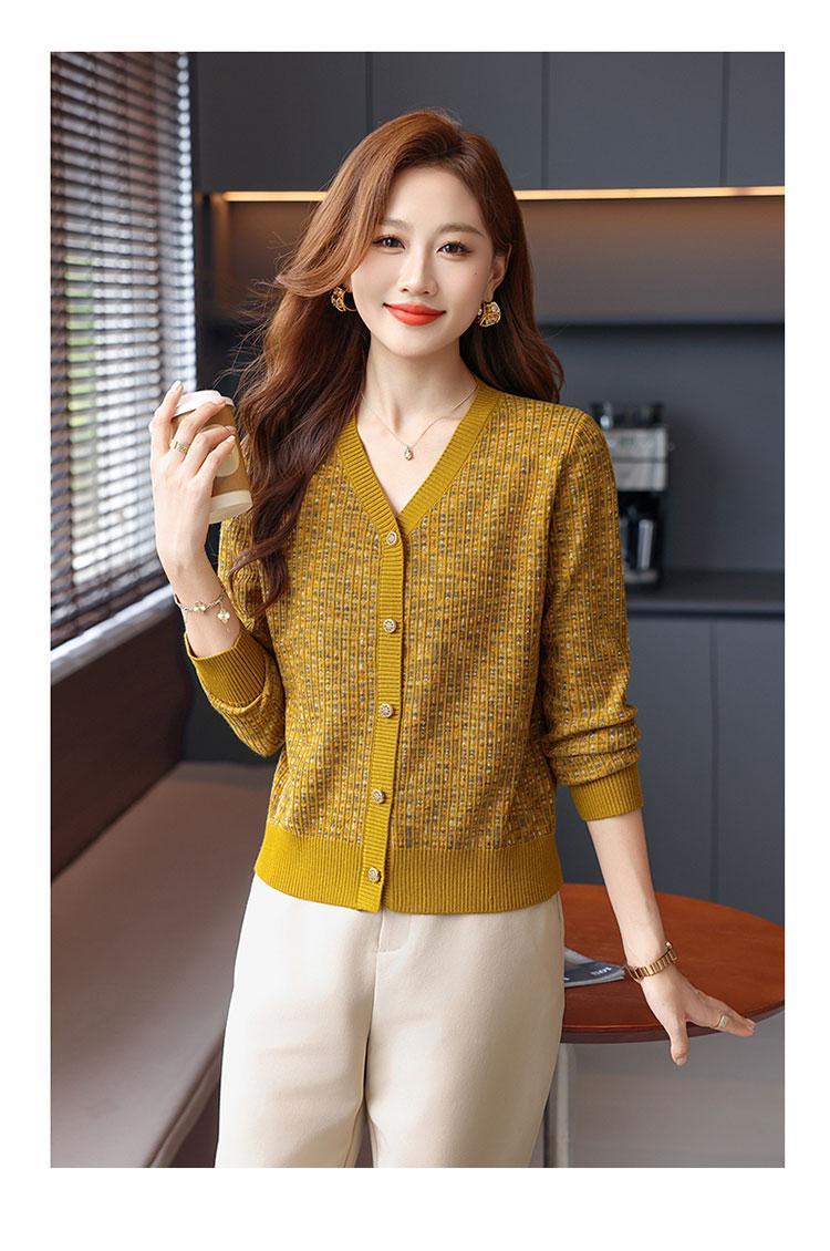 얀푸 100% 울 스웨터 여성 가을 신상품 V넥 니트 카디건 숏 스웨터 재킷 패셔너블 아우터 탑