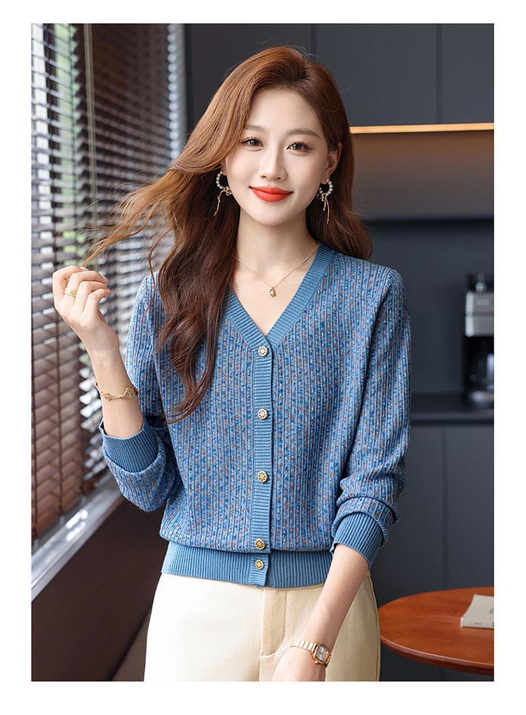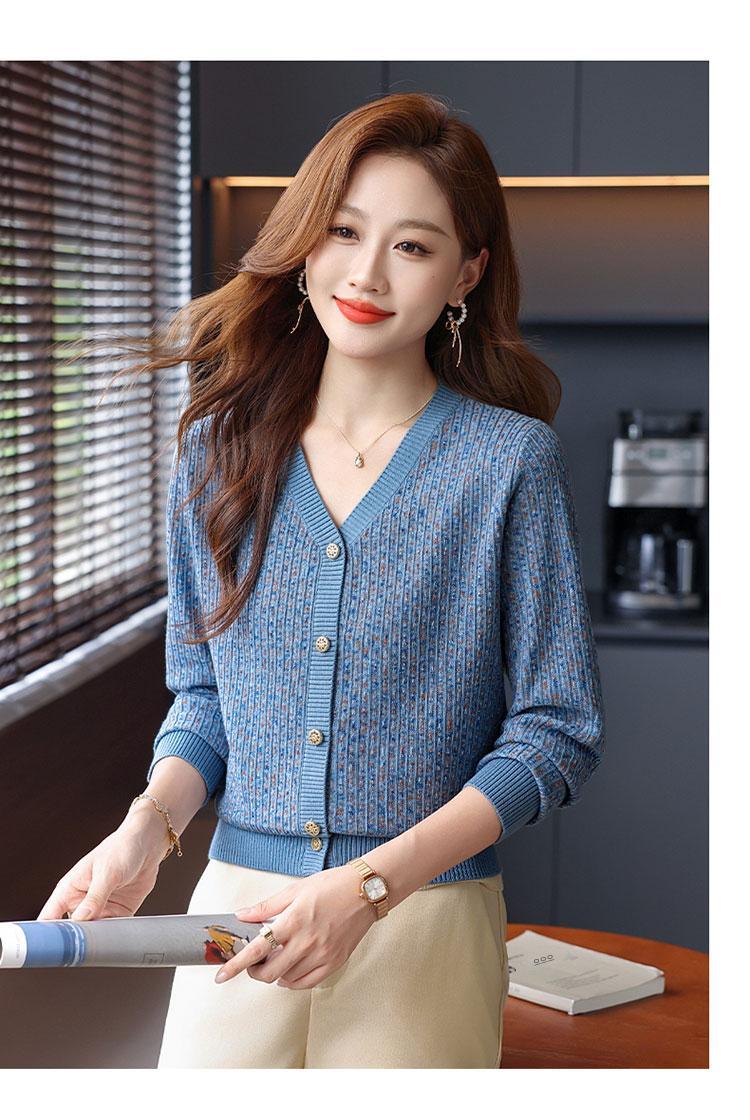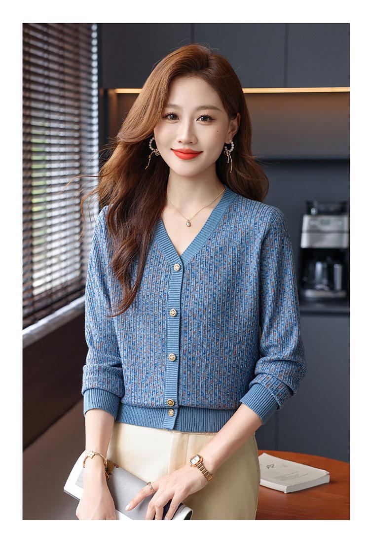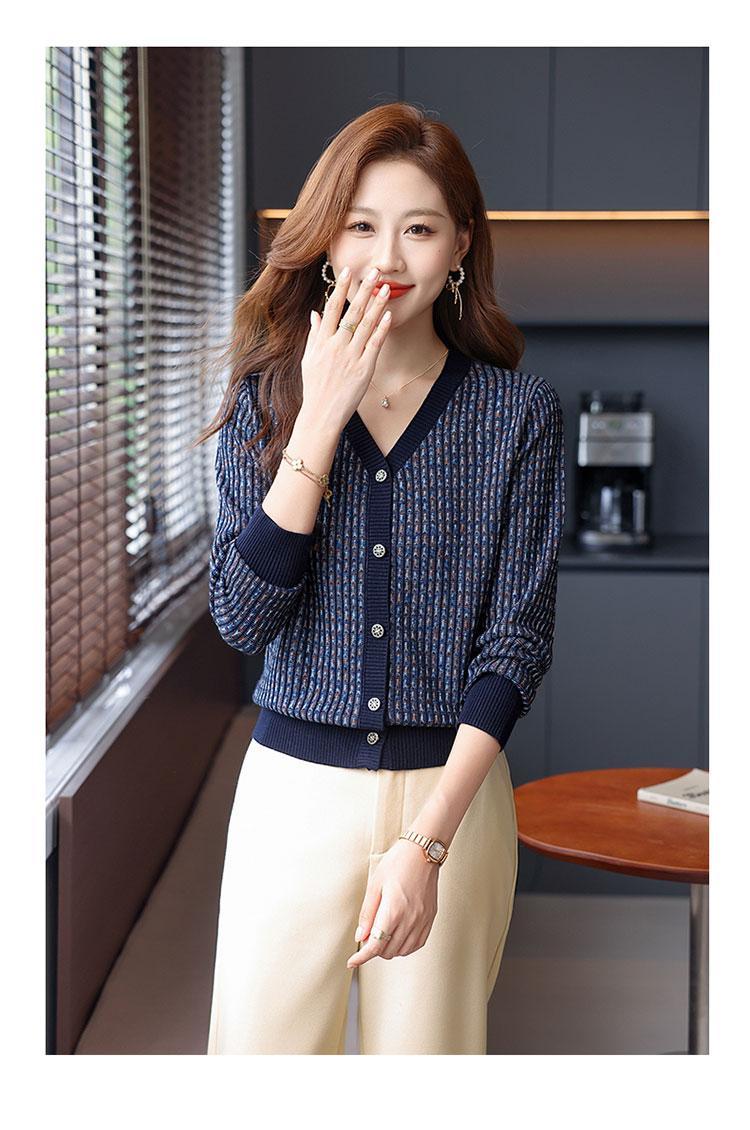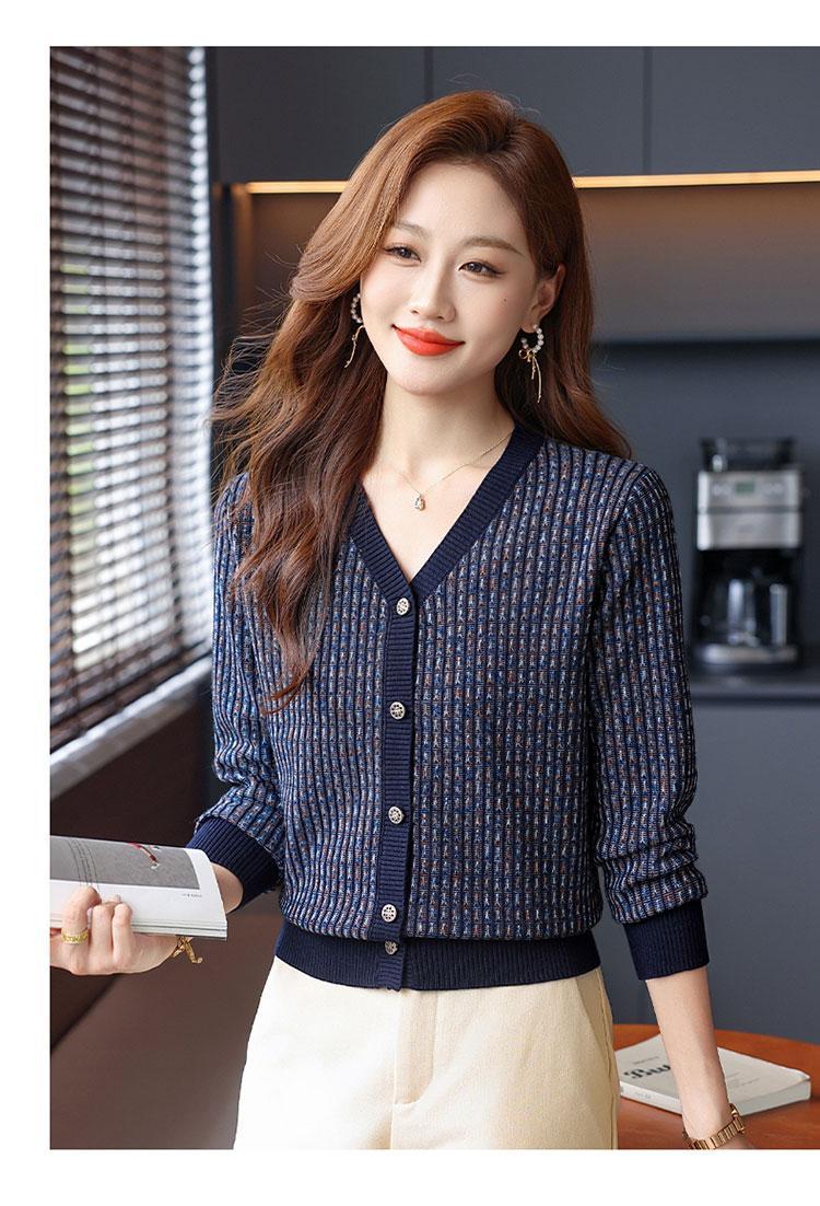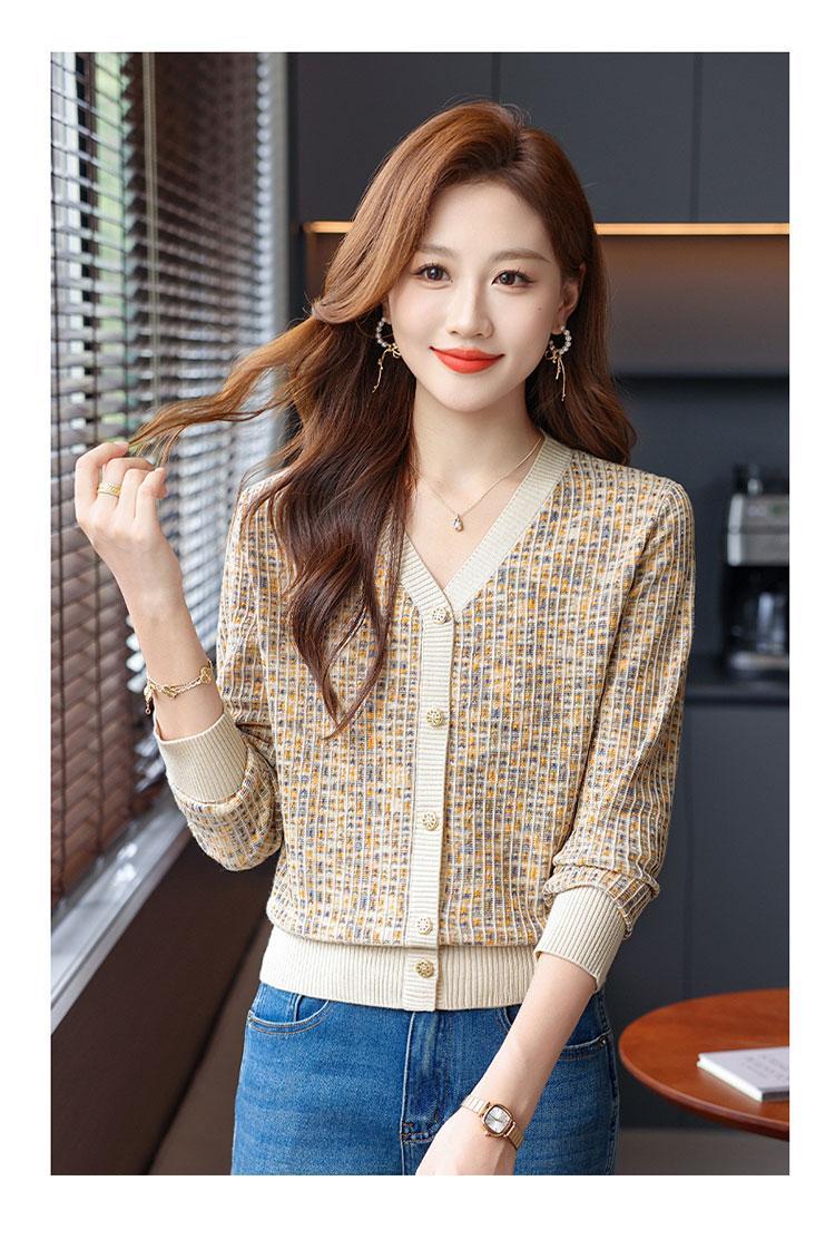 얀푸 100% 울 스웨터 여성 가을 신상품 V넥 니트 카디건 숏 스웨터 재킷 패셔너블 아우터 탑