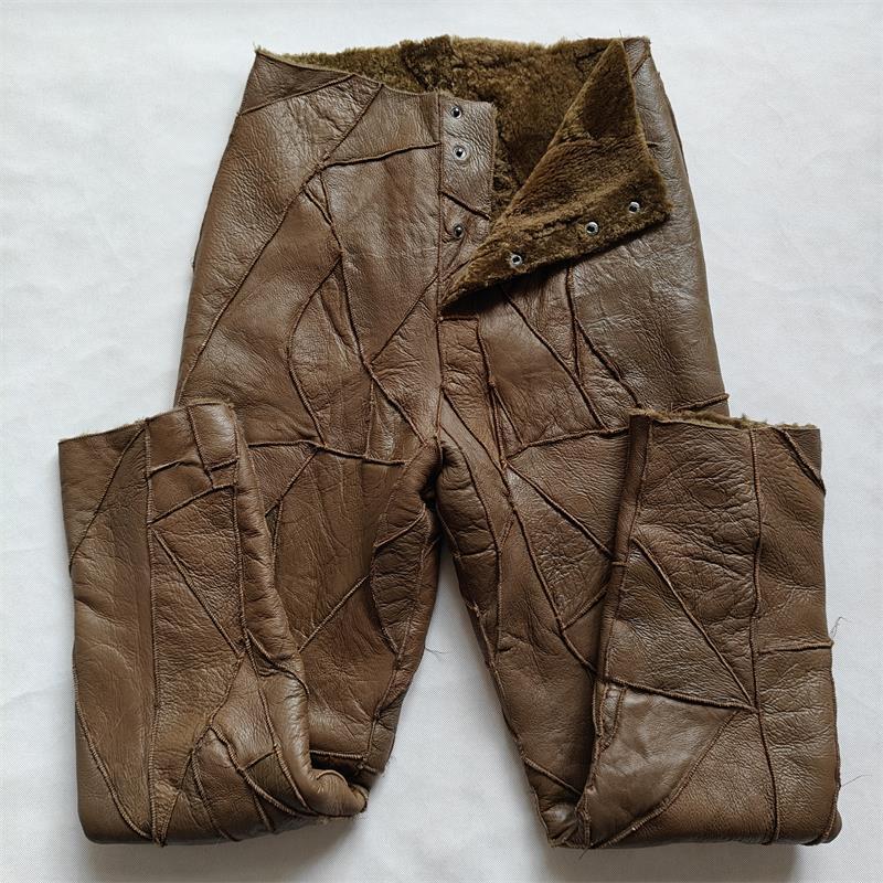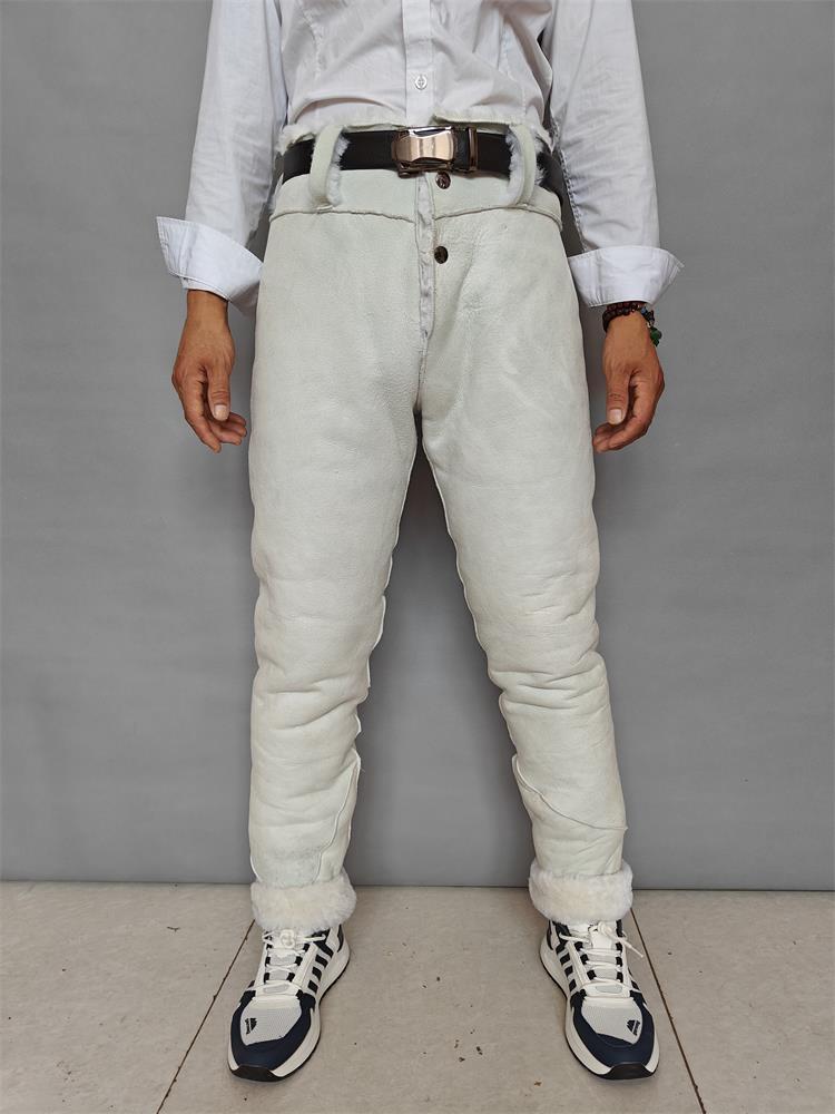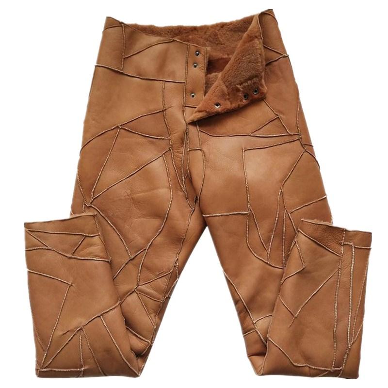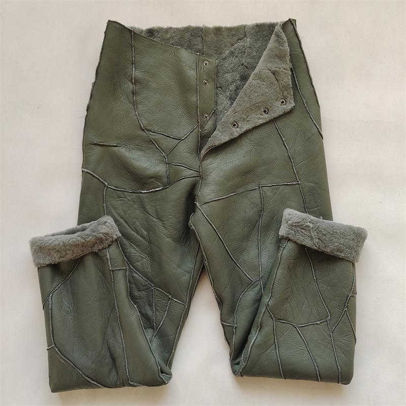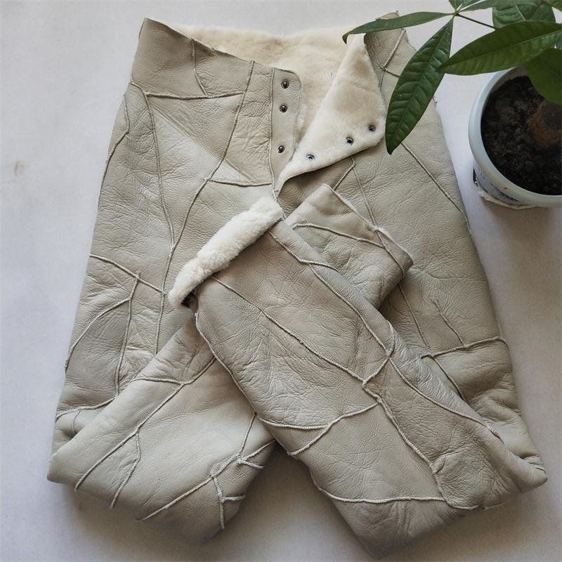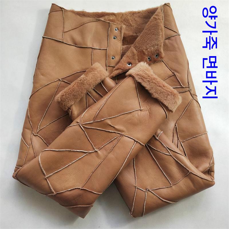 양가죽 바지 남성용 모피 코튼 바지 중년 및 노인 정품 가죽 두꺼운 울 안감 여성용 하이웨이스트 양털 가죽 바지