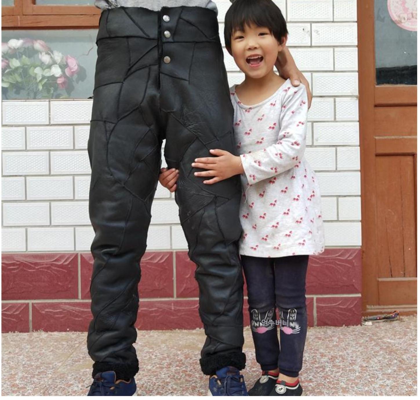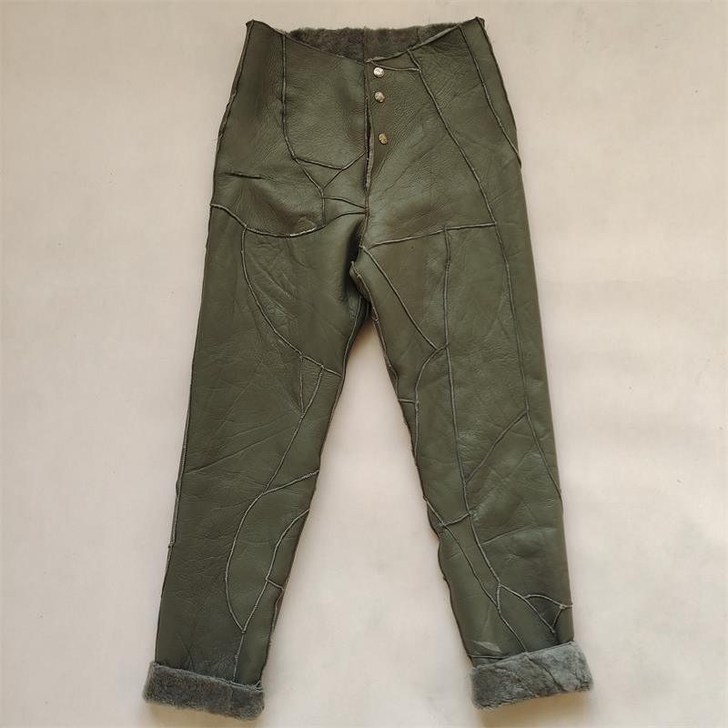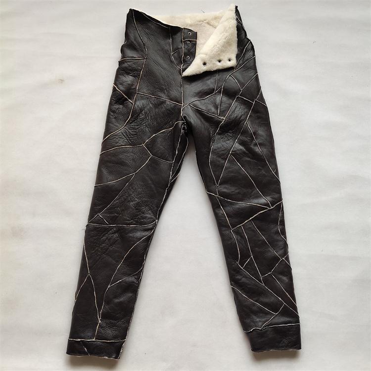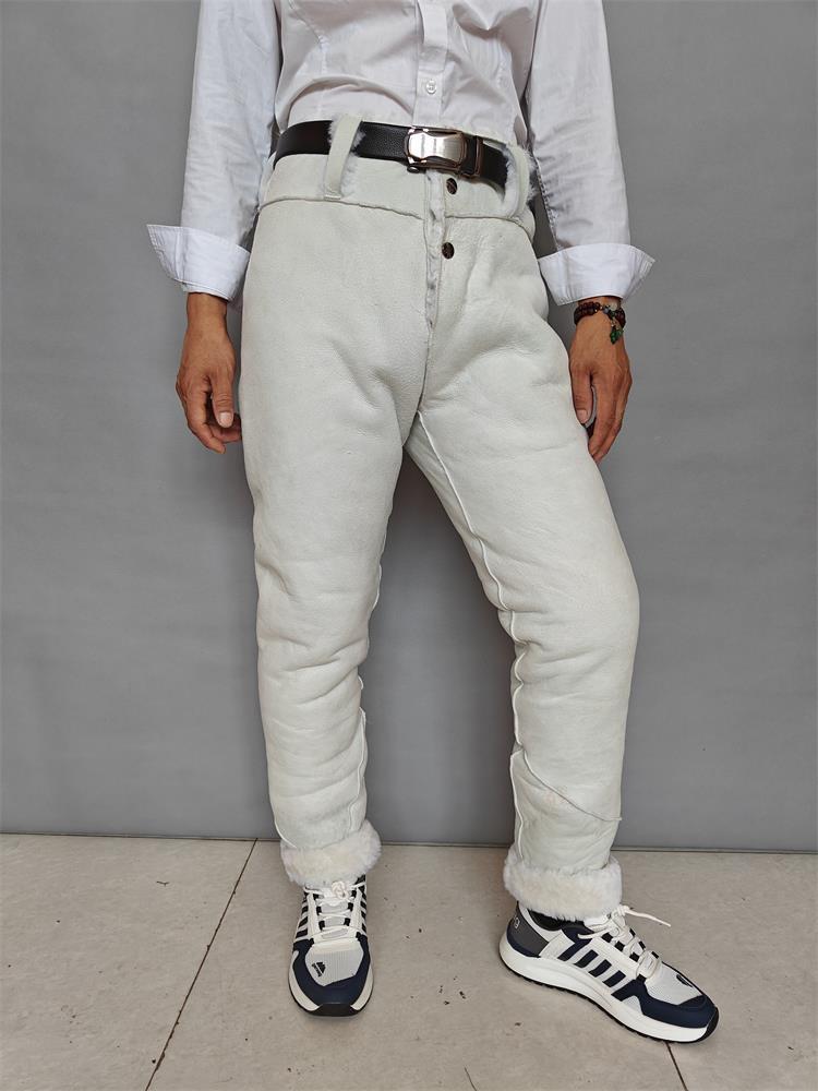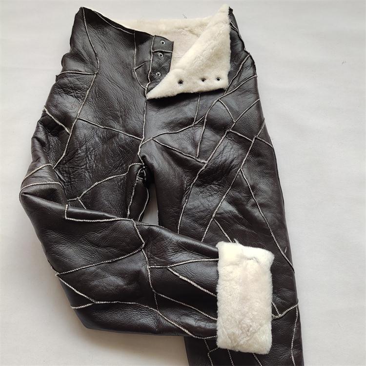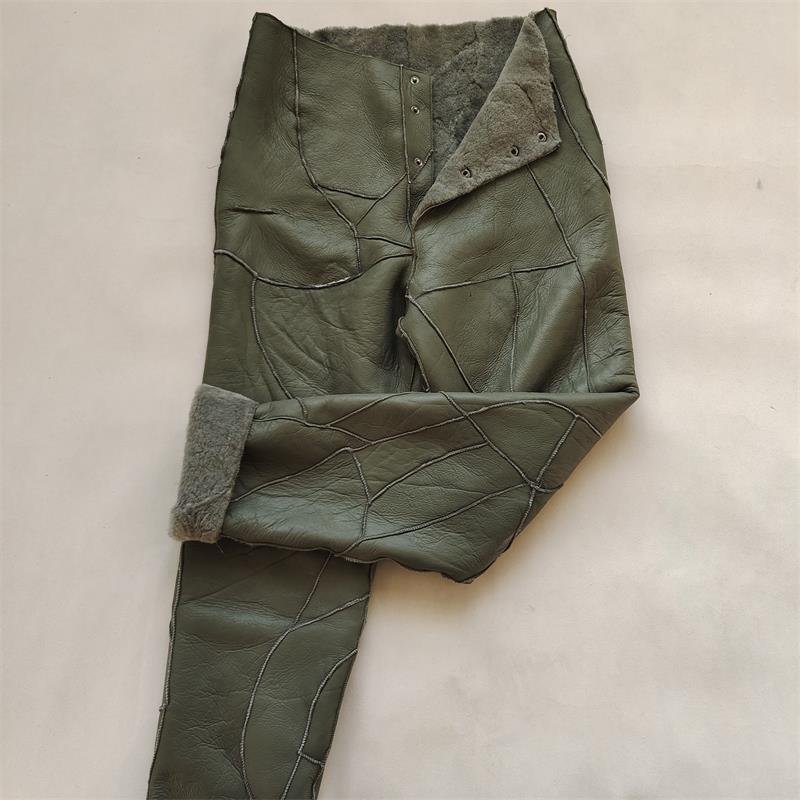 양가죽 바지 남성용 모피 코튼 바지 중년 및 노인 정품 가죽 두꺼운 울 안감 여성용 하이웨이스트 양털 가죽 바지