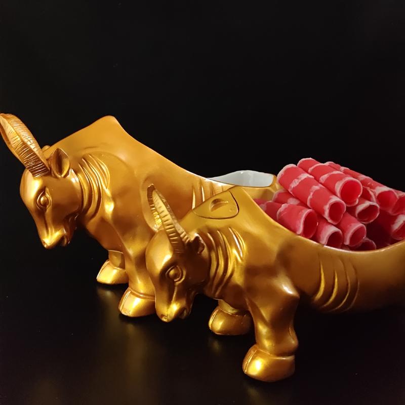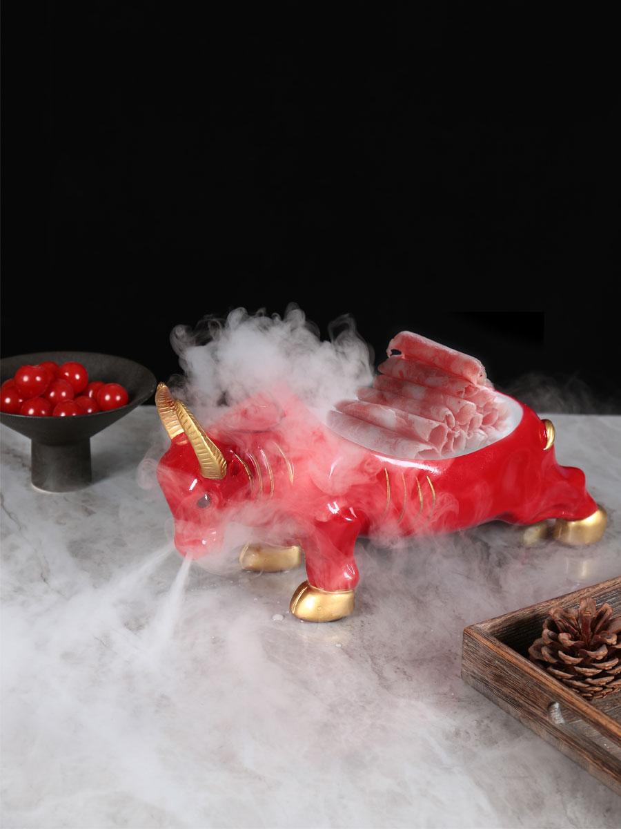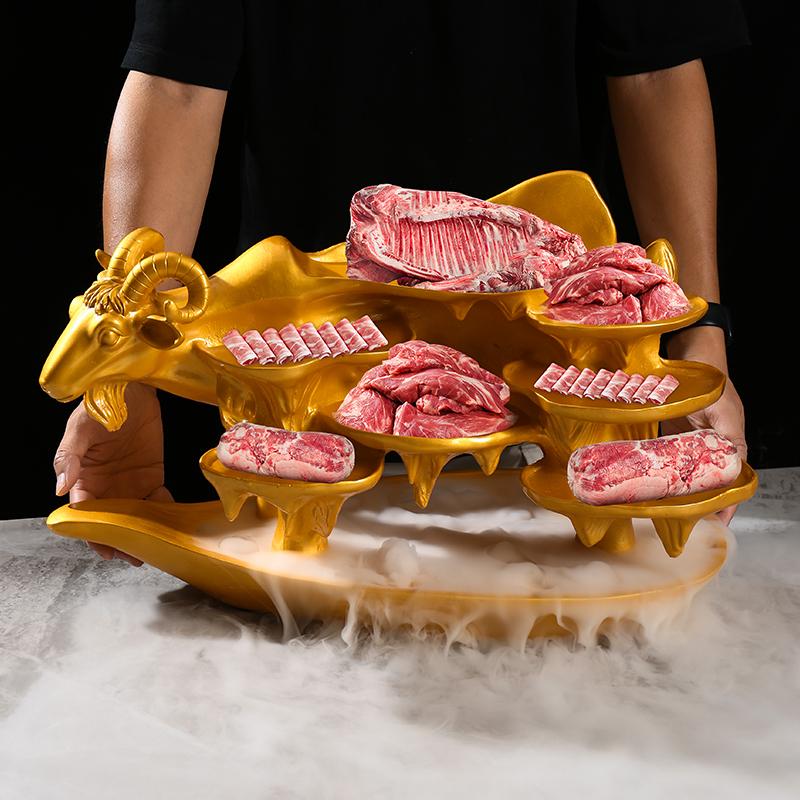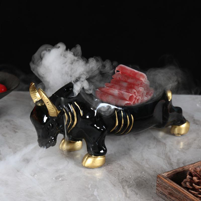 양지방 양고기 황소머리 식기 접시 및 플레이팅 그물 붉은 냄비 레스토랑 상업용 건조 얼음 창의적 신장 특성