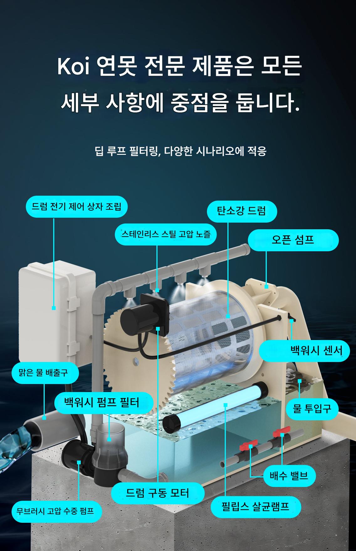 어류 연못 필터 드럼 미세 여과 기계 양식수 순환 정화 시스템 자동 역세척 시스템 장비