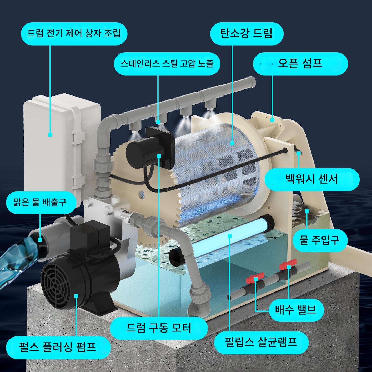 어류 연못 필터 드럼 미세 여과 기계 양식수 순환 정화 시스템 자동 역세척 시스템 장비