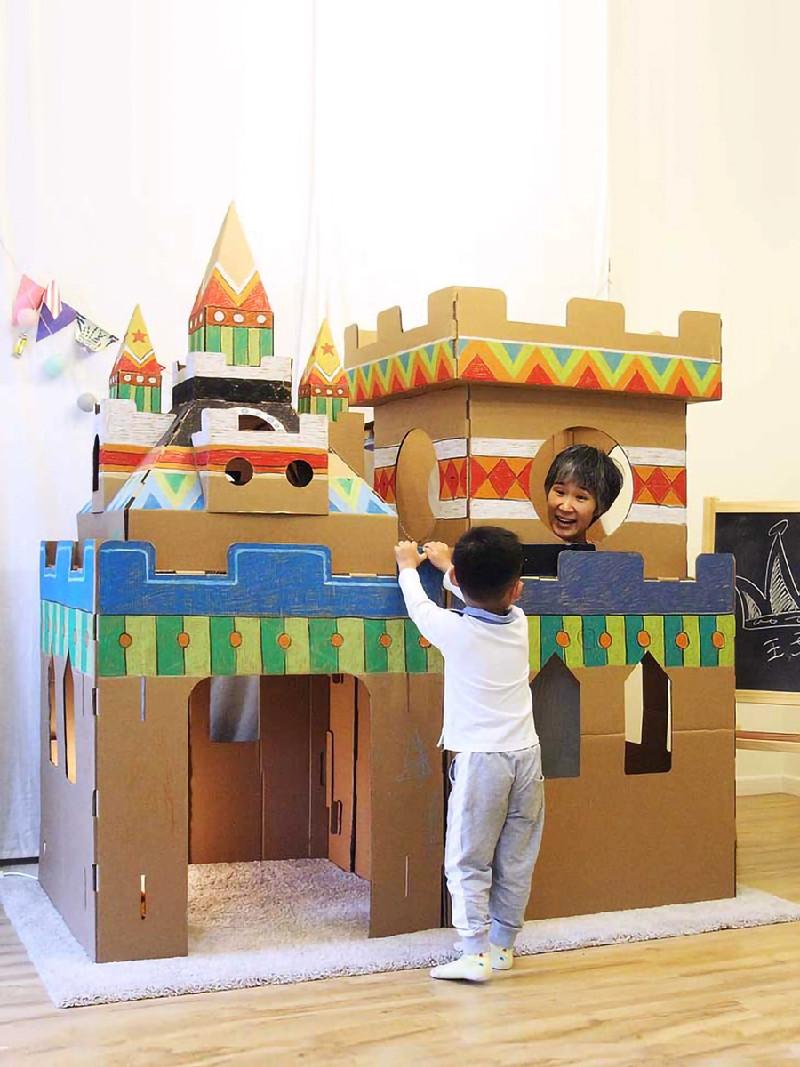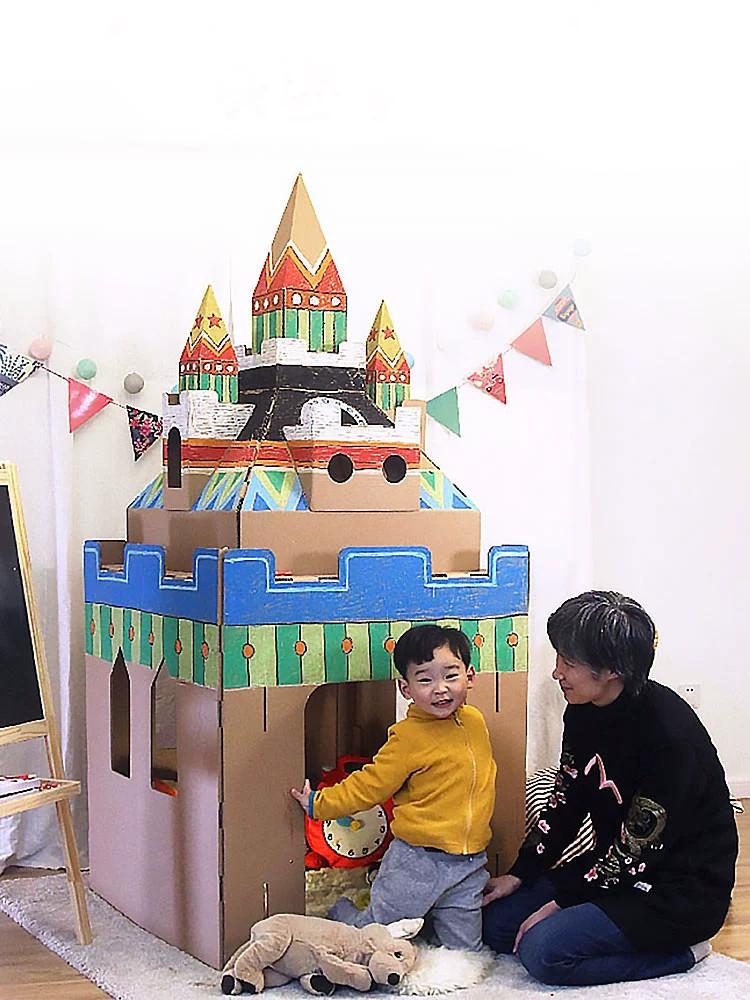 어린이 공예 그린 캐슬 유치원 장난감 놀이집 골판지 상자 실내 집 골판지 텐트 건물