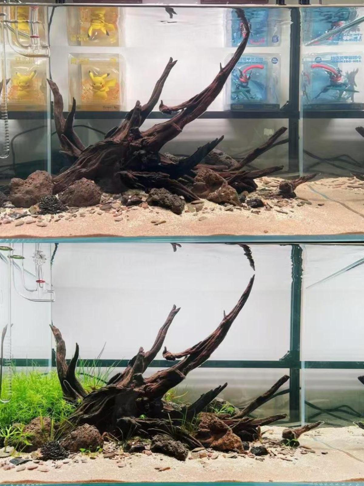 어항 조경 침몰한 나무 구멍 그루터기 해골 가지 거북이 어항 물 잔디 장식 조경 장식품 특별 아치 다리 물 반얀