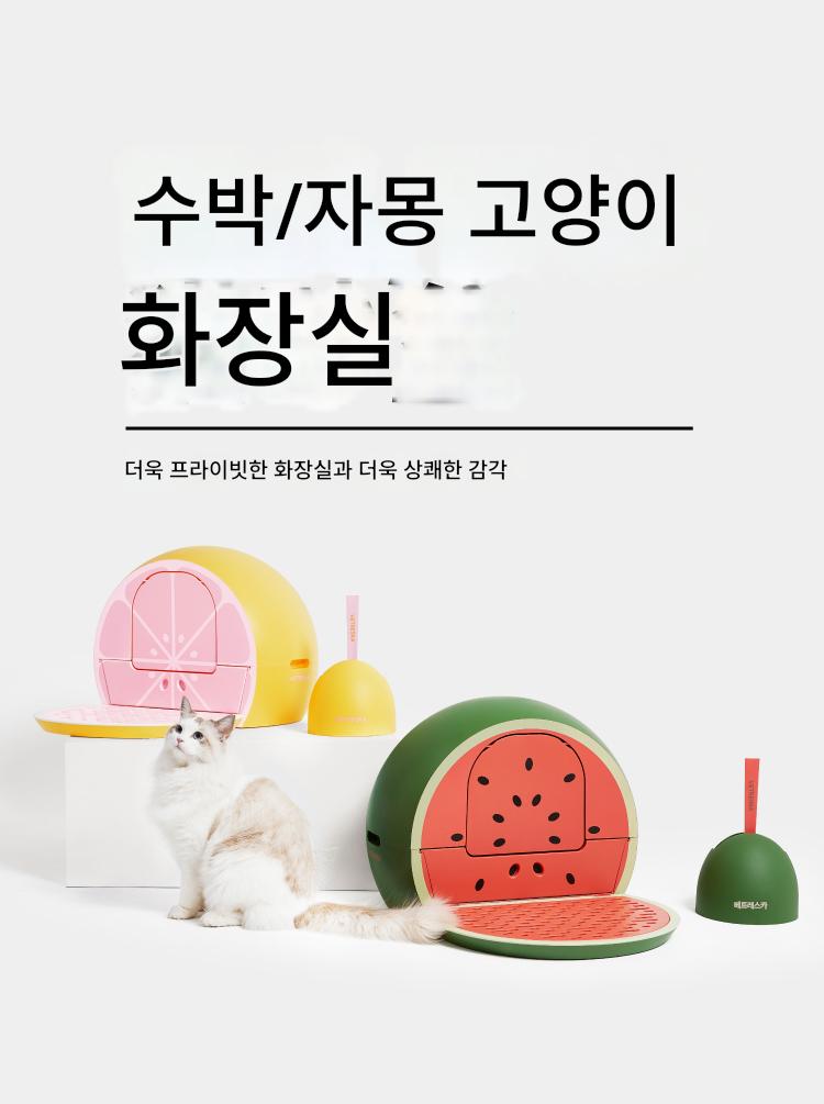 언카드 수박 자몽 고양이용 변기 완전 밀폐형 초대형 변기 튀김 방지 탈취제 서랍 고양이 용품