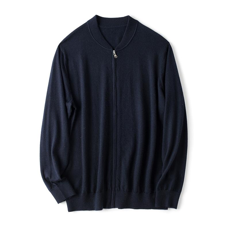 에르되시 시티 가을 겨울 야구 칼라 네이비 블루 워스티드 남성용 캐시미어 스웨터 지퍼 카디건 스웨터 니트 재킷