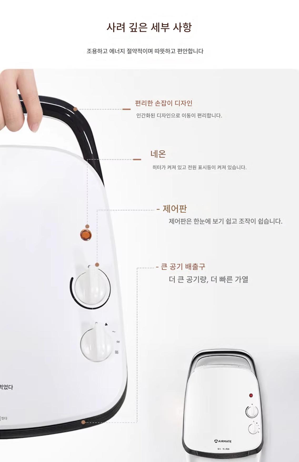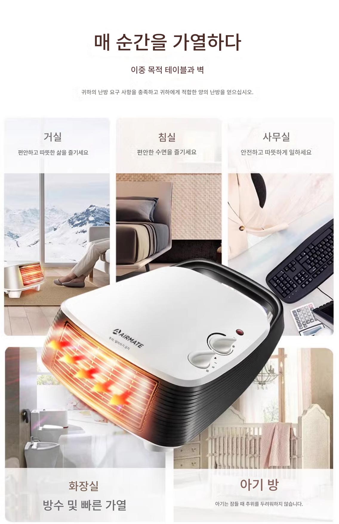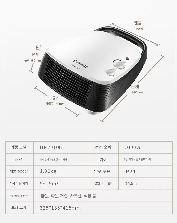 “에어메이트 히터팬 홈 스몰 오피스 욕실 벽면형 스토브 전기 히터 HP20106”의 첫 상품평을 남겨 주세요