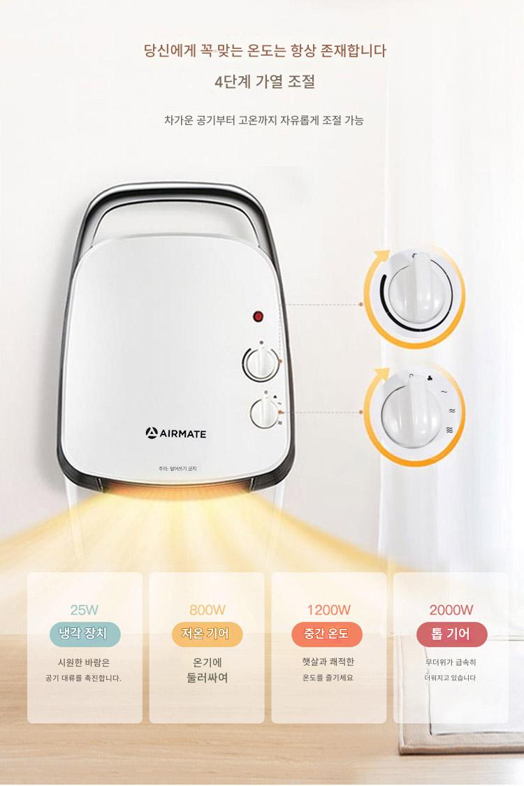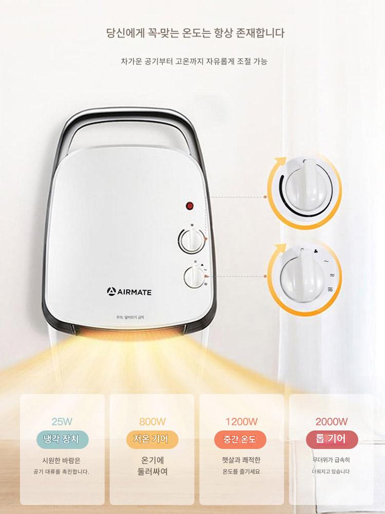 에어메이트 히터팬 홈 스몰 오피스 욕실 벽면형 스토브 전기 히터 HP20106
