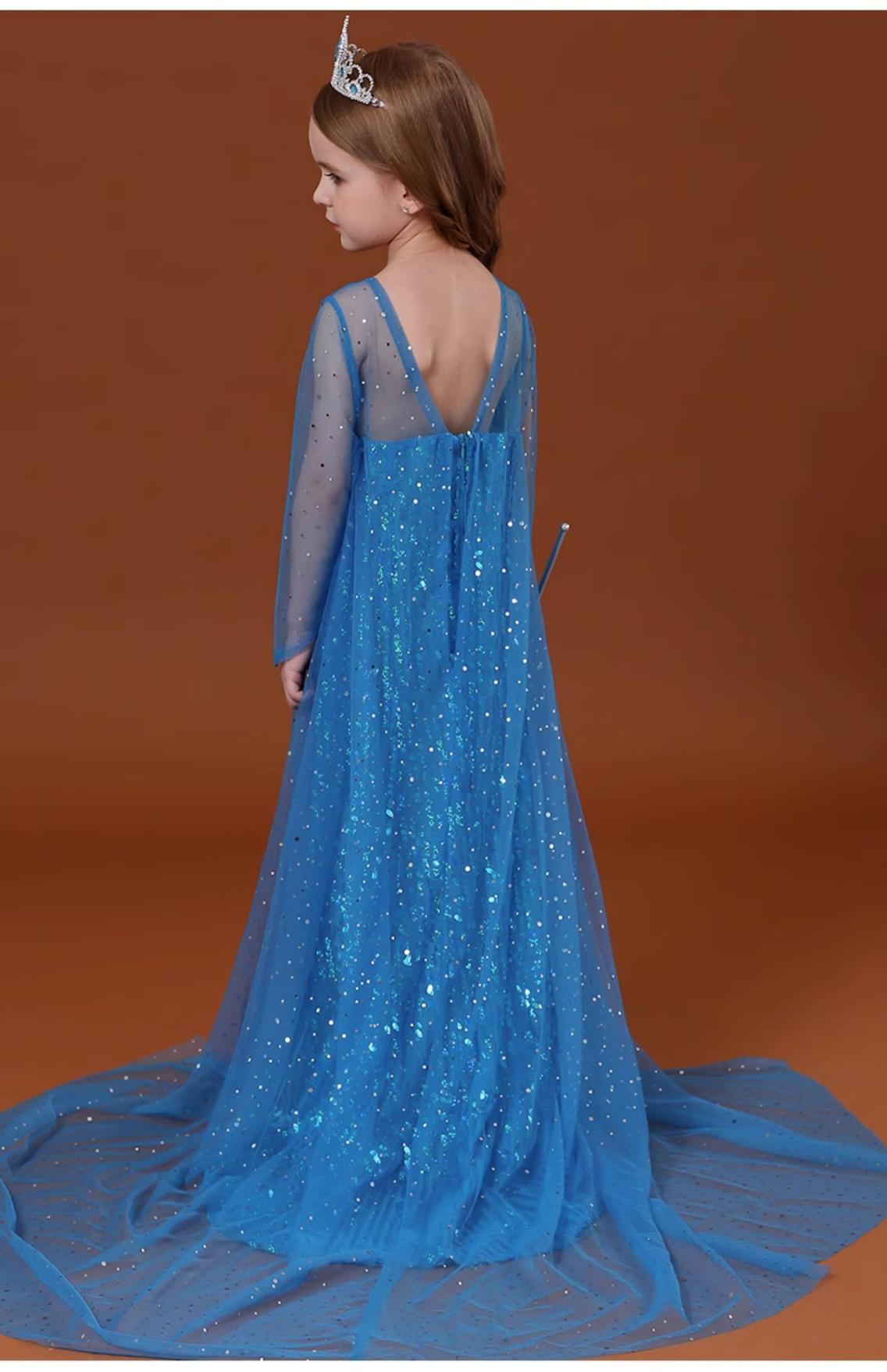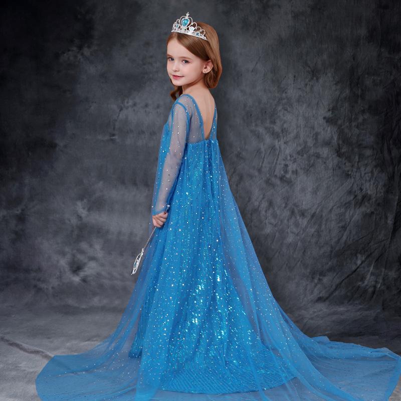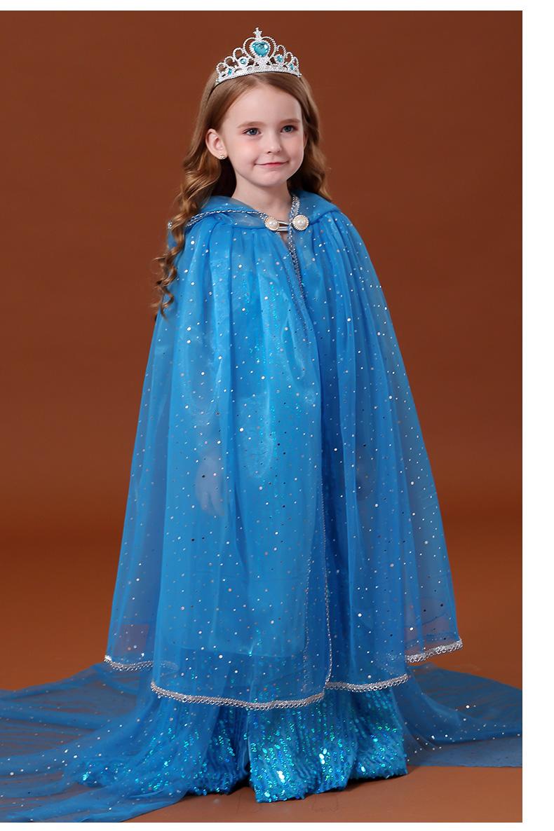 拖尾蓝裙+连帽披风2件套 > 130cm