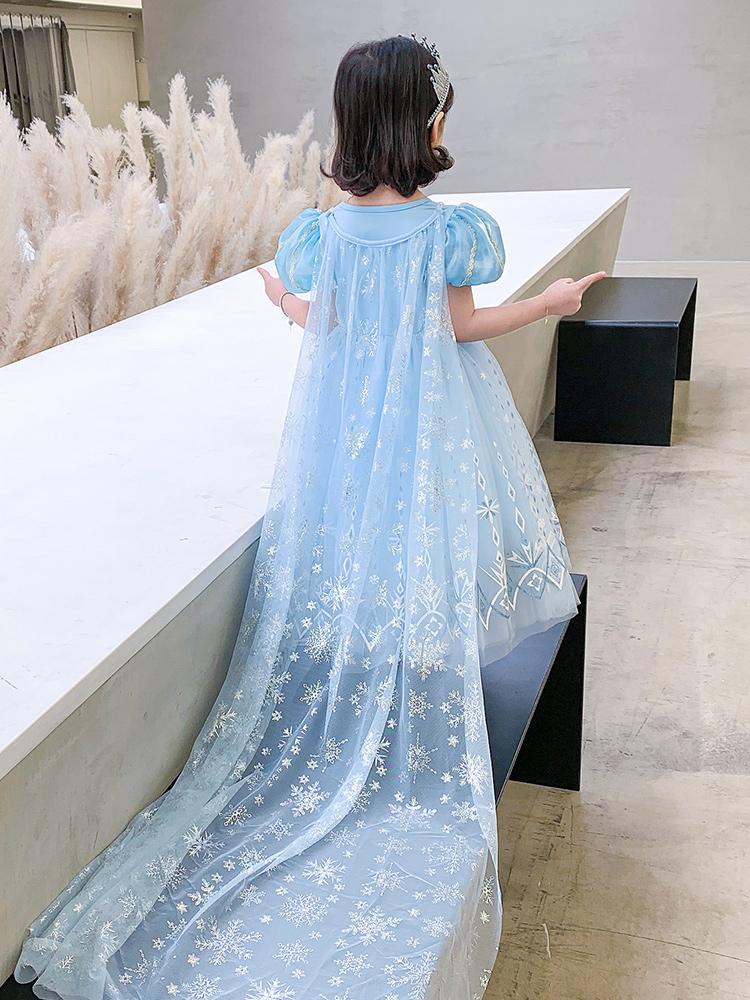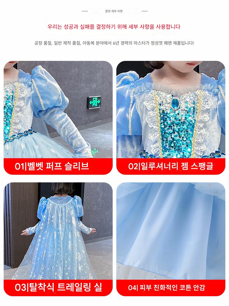 엘사 공주 드레스 봄과 가을 여아용 새로운 아이샤 디즈니 오리지널 트레일링 어린이 생일 아이샤 여아용 드레스