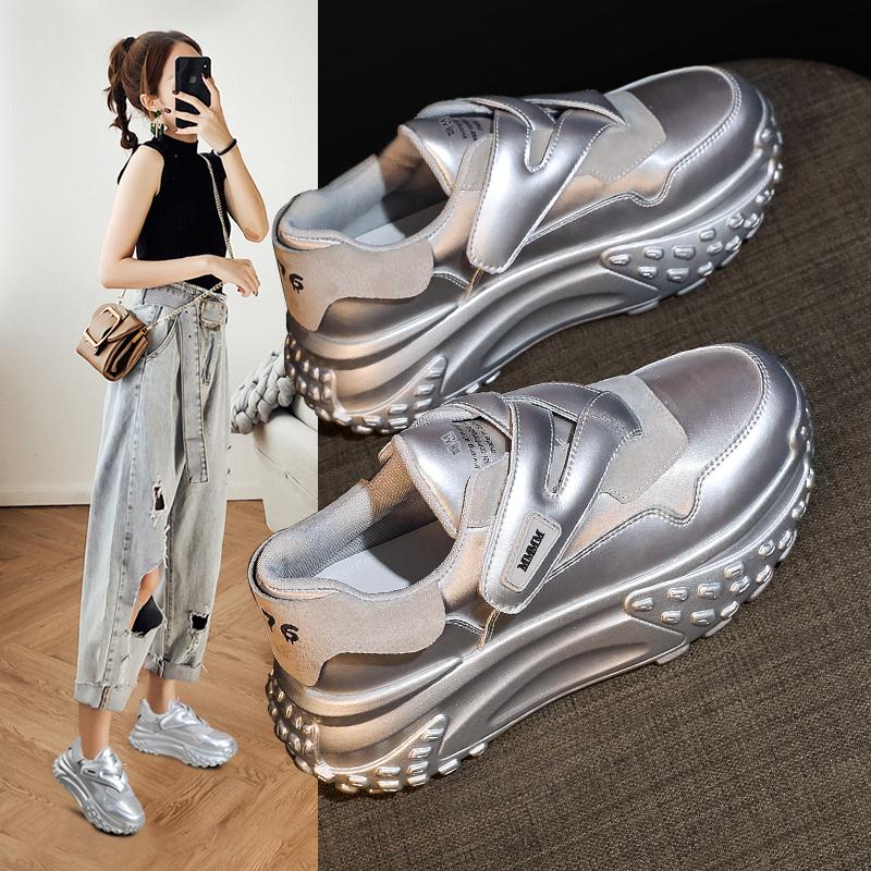 여성용 내부 높이 향상 신발 2024 봄과 가을 새로운 올매치 핑크 스포츠 캐주얼 신발 두꺼운 밑창 포레스트 검프 신발 작은 신발