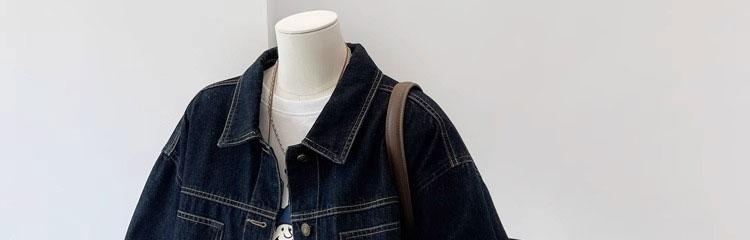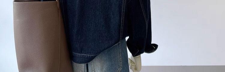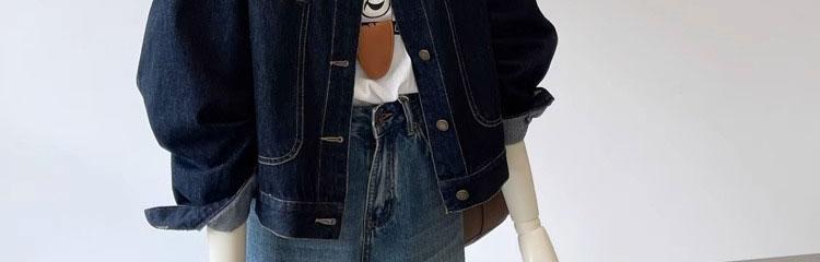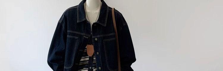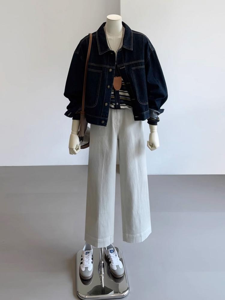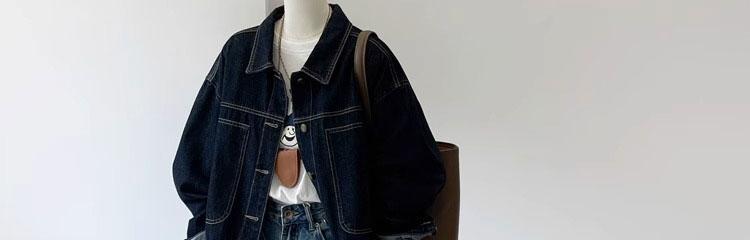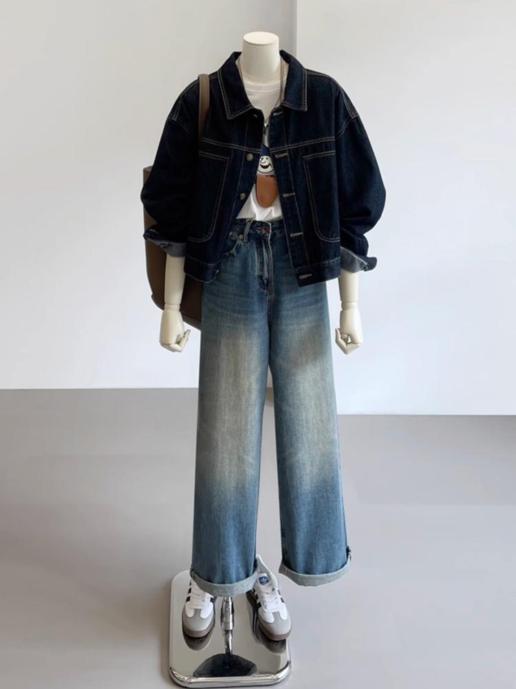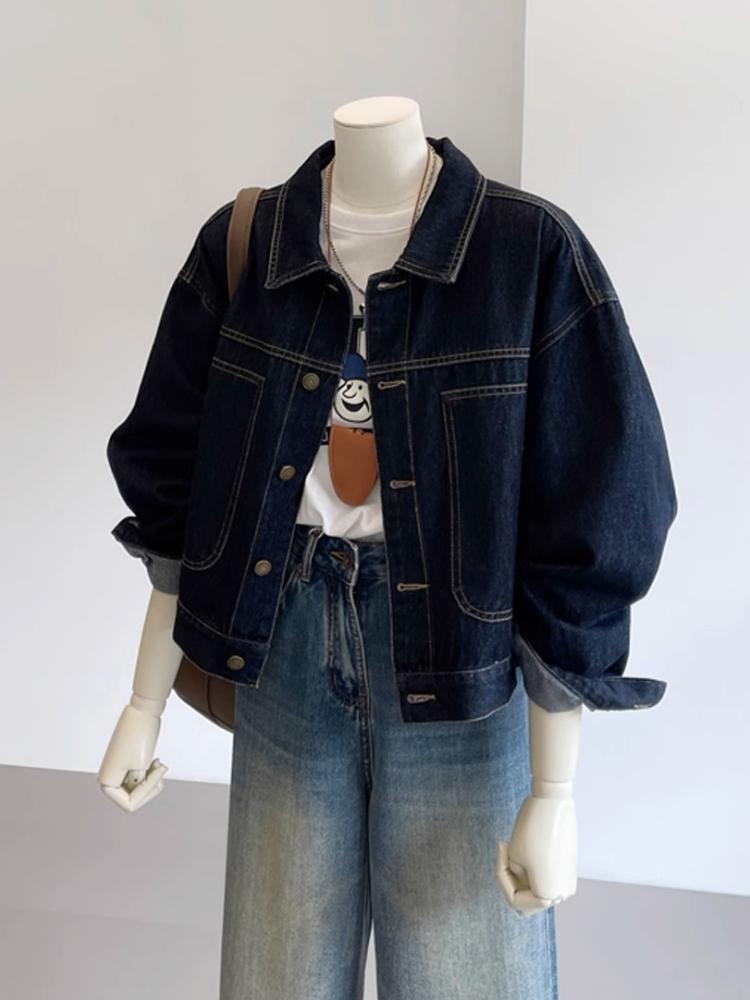 여성용 다크 블루 레트로 작업복 데님 재킷 봄 가을 캐주얼 포켓 디자인 소형 숏 재킷 탑