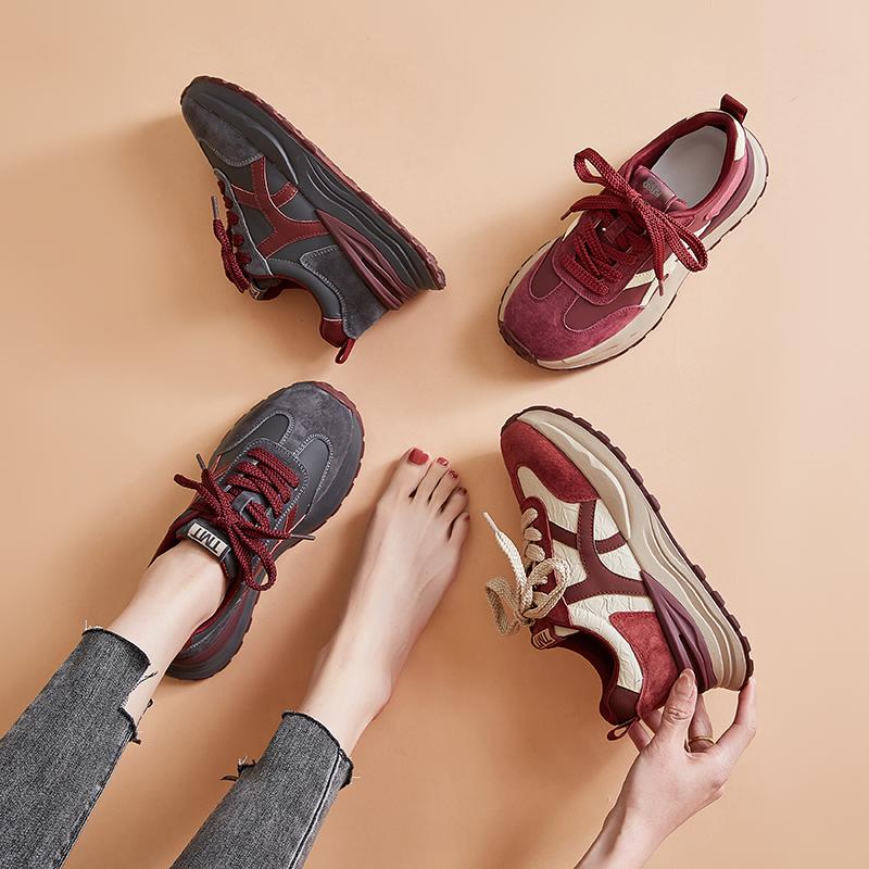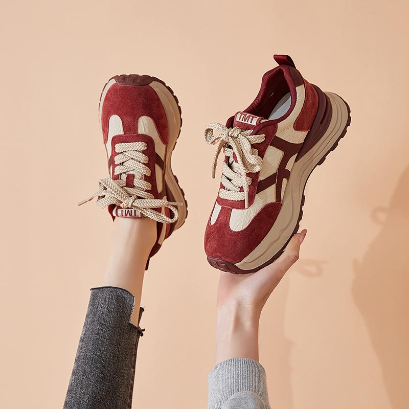 여성용 두꺼운 밑창 아빠 신발 2025년 봄 신스타일 소형 Ankola 레드 다재다능한 캐주얼 스포츠 Forrest Gump 신발