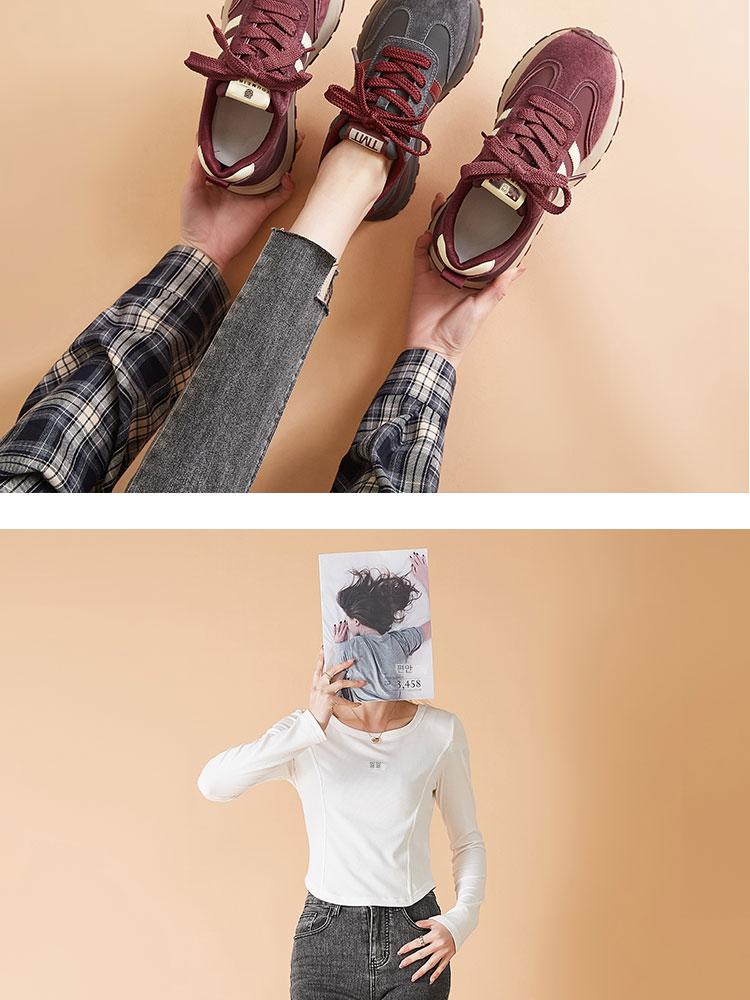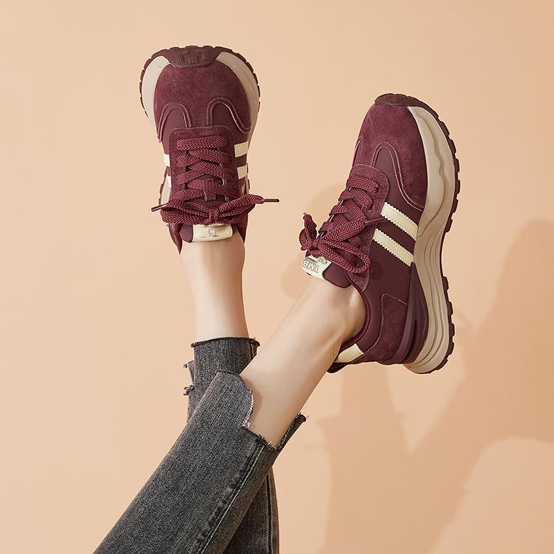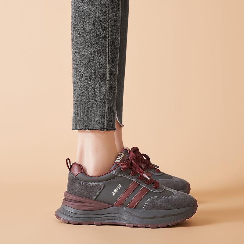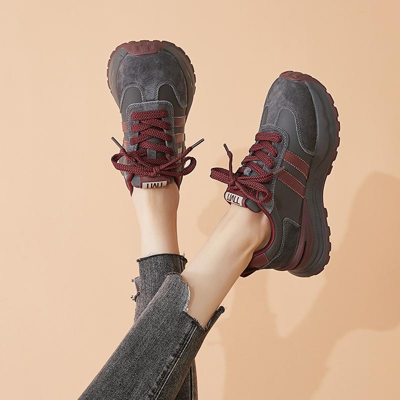 여성용 두꺼운 밑창 포레스트 검프 슈즈 2025년 봄과 가을 신상품 레트로 안콜라 레드와 그레이 캐주얼 패션 스포츠 아빠 슈즈