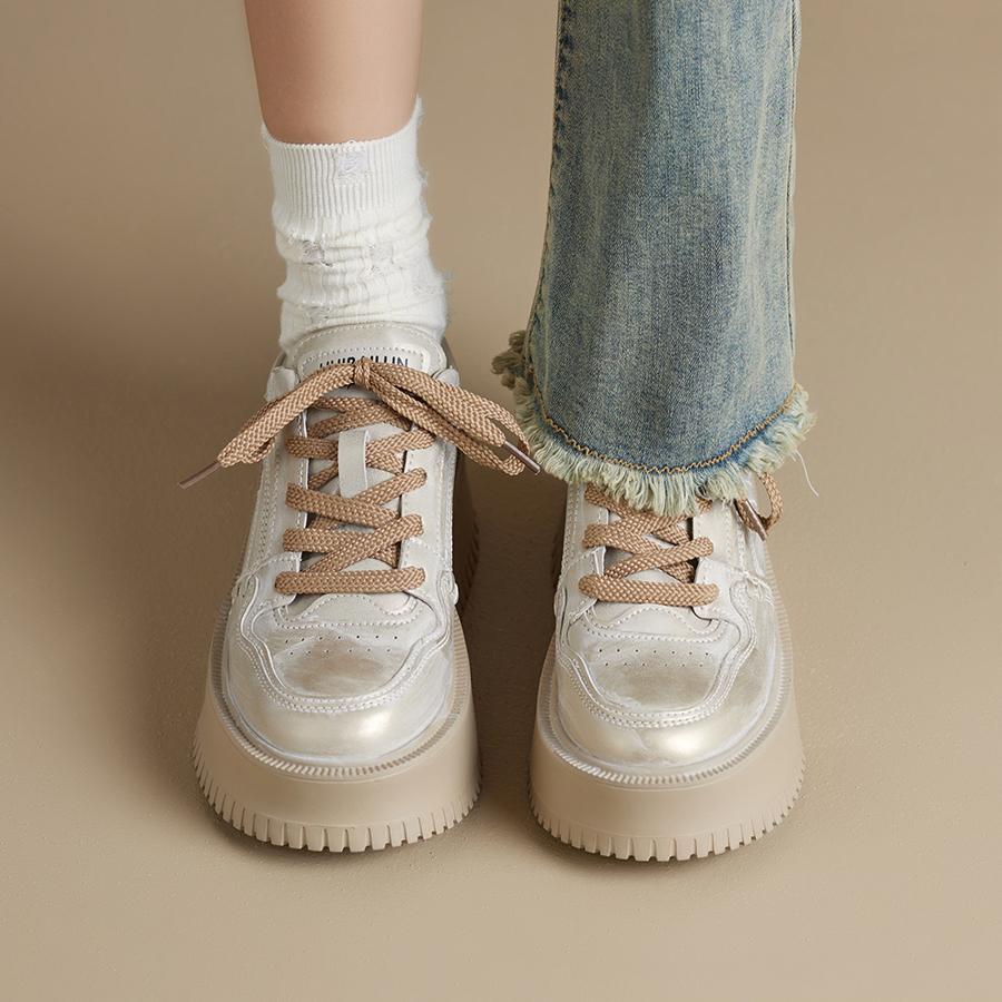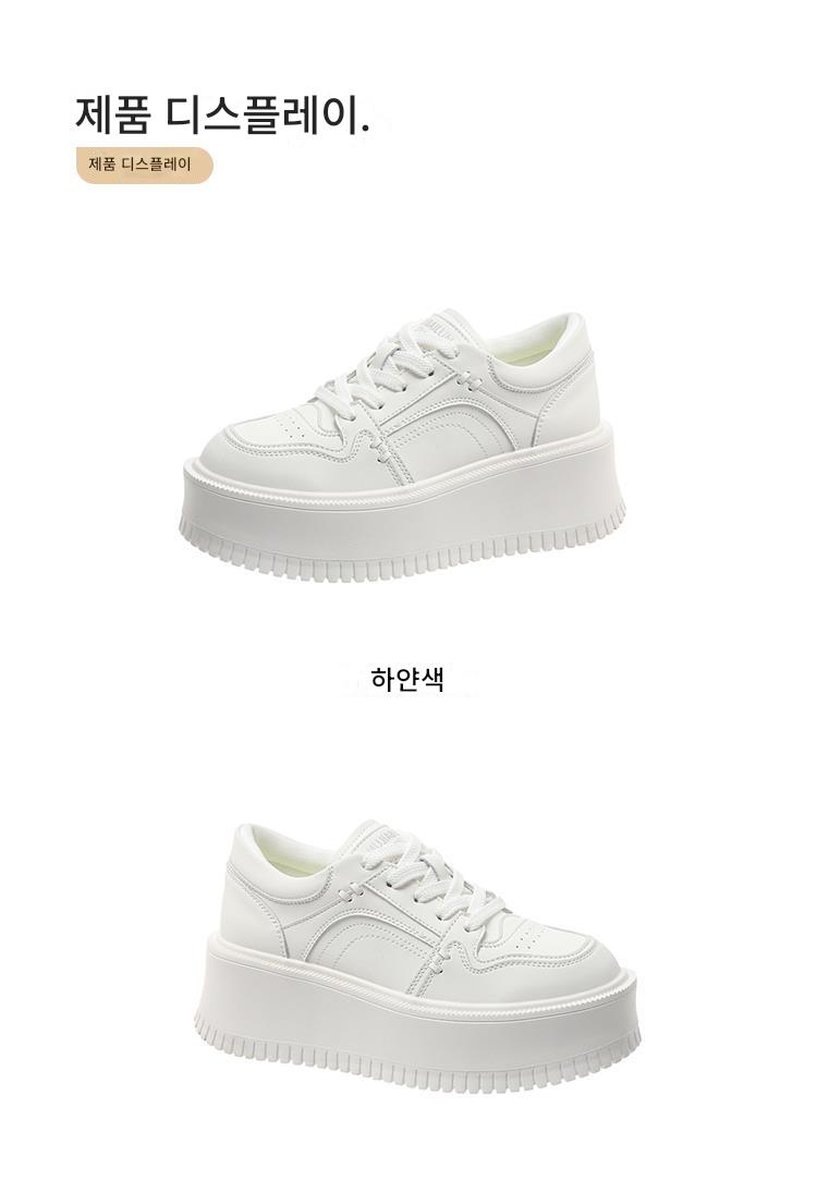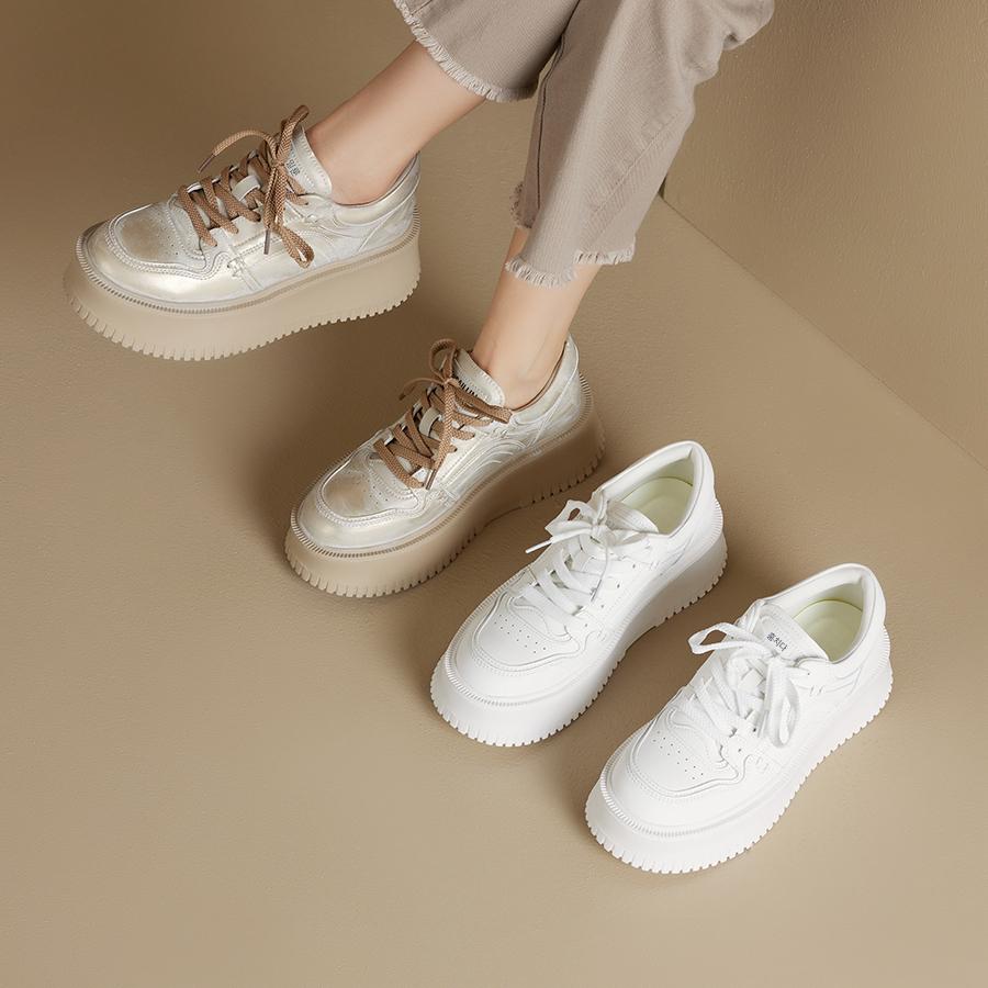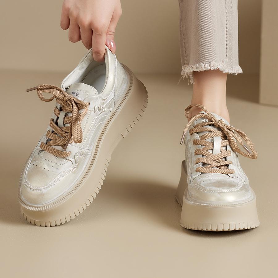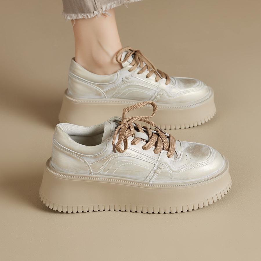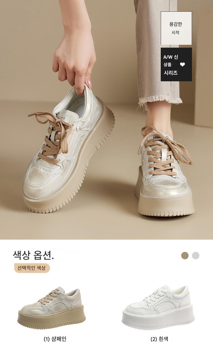 여성용 리틀 화이트 슈즈 2024년 신상 가을 플랫폼 정품 가죽 내부 높이감 두꺼운 바닥 캐주얼 스니커즈