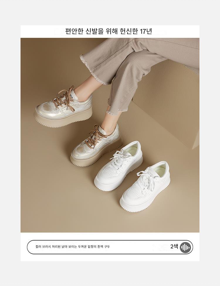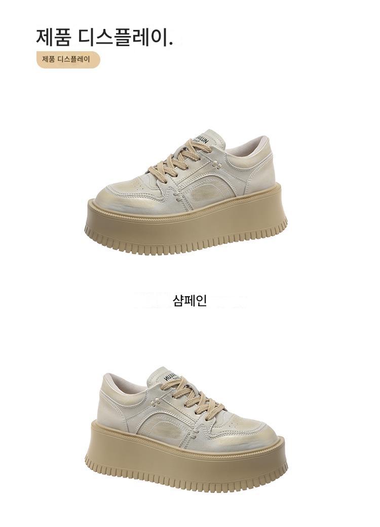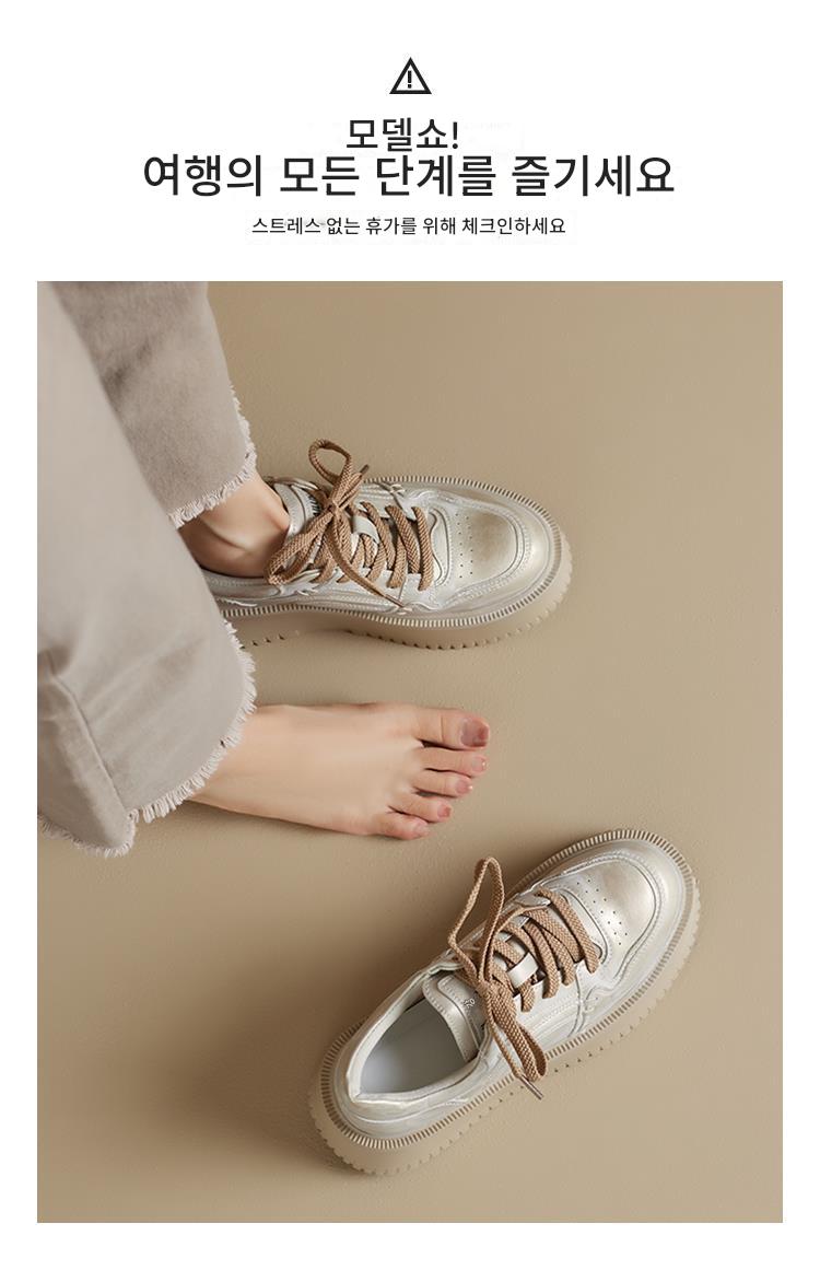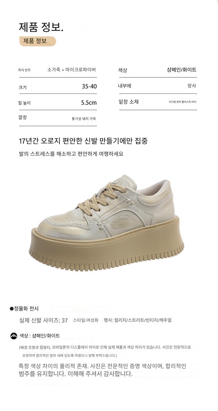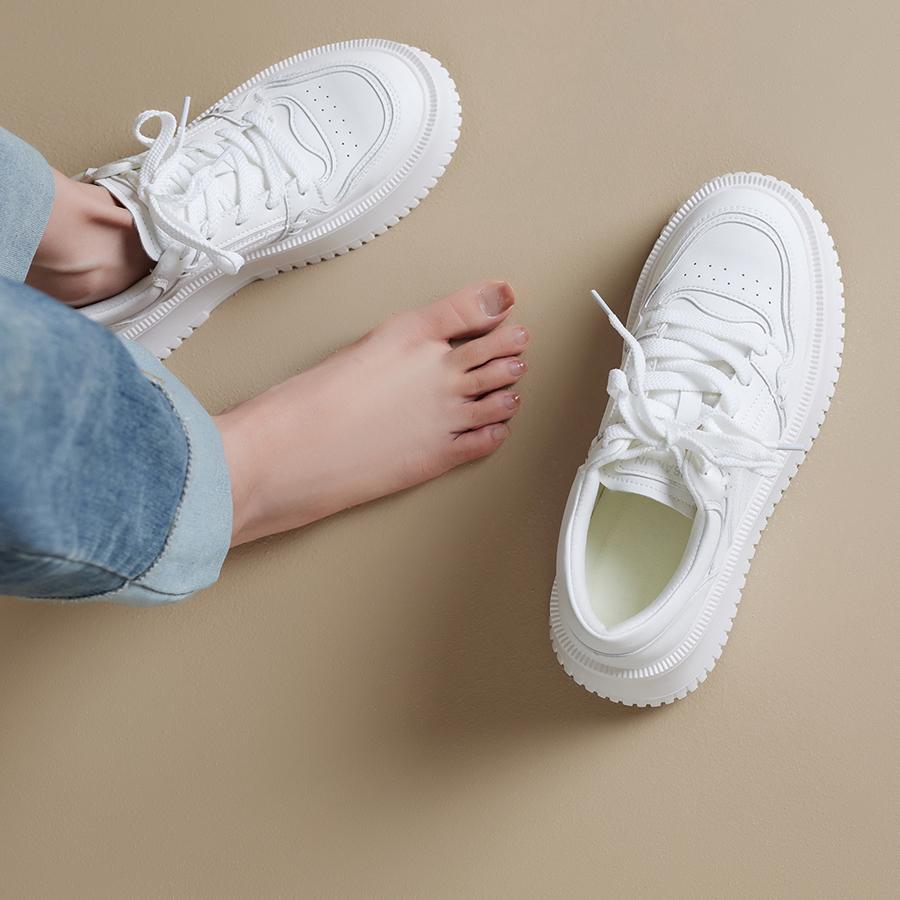 여성용 리틀 화이트 슈즈 2024년 신상 가을 플랫폼 정품 가죽 내부 높이감 두꺼운 바닥 캐주얼 스니커즈