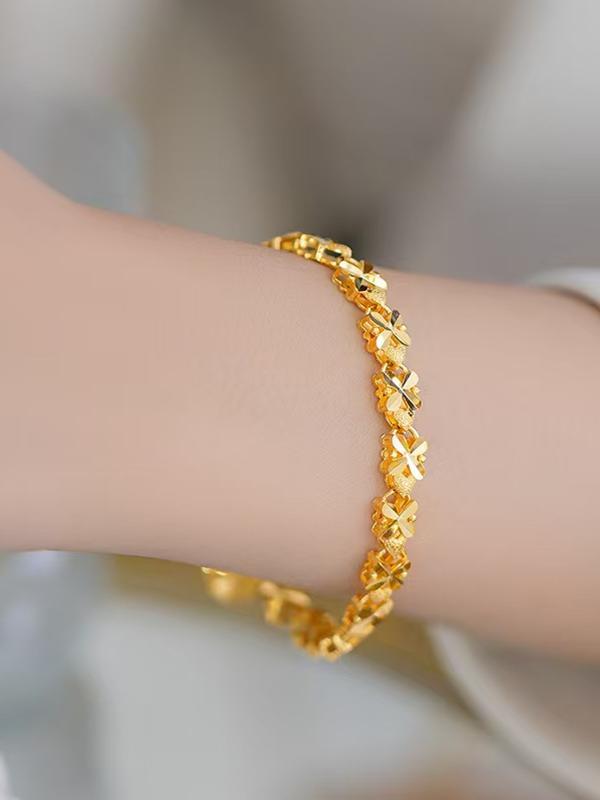 여성용 반짝이는 금색 네잎 클로버 팔찌, 행운의 구슬, 여자친구를 위한 세련되고 인기 있는 선물, 3D 하드 골드, 조절 가능