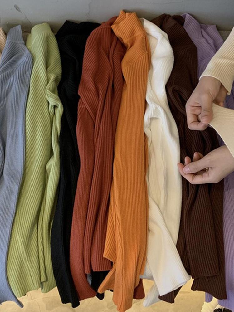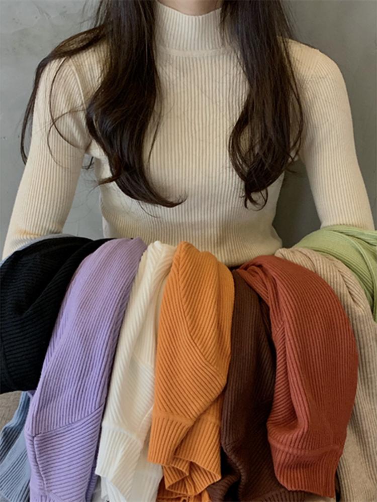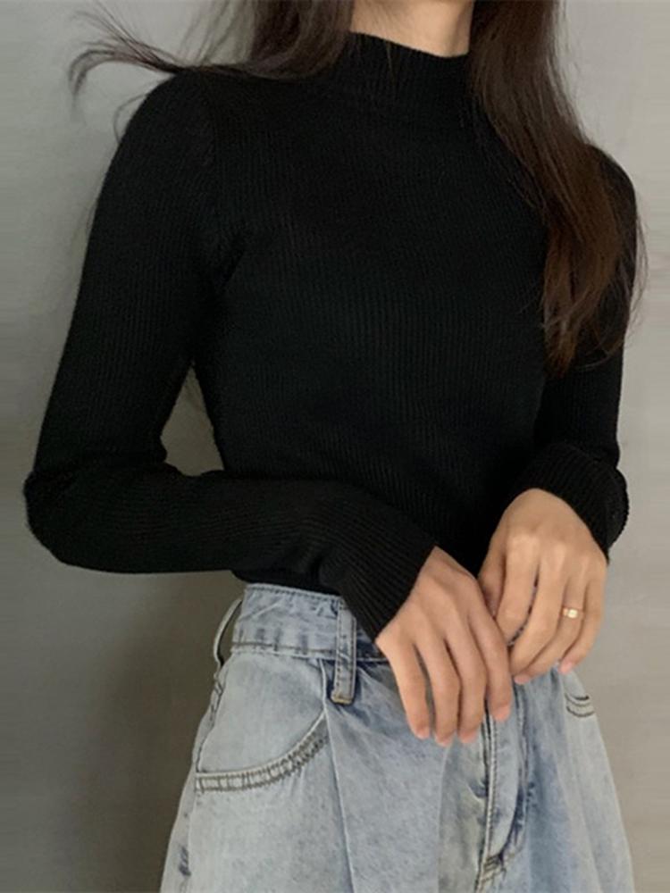 여성용 블랙 니트 바텀 셔츠 2025 가을 신상 슬림핏 하프 터틀넥 가을 스웨터 이너웨어