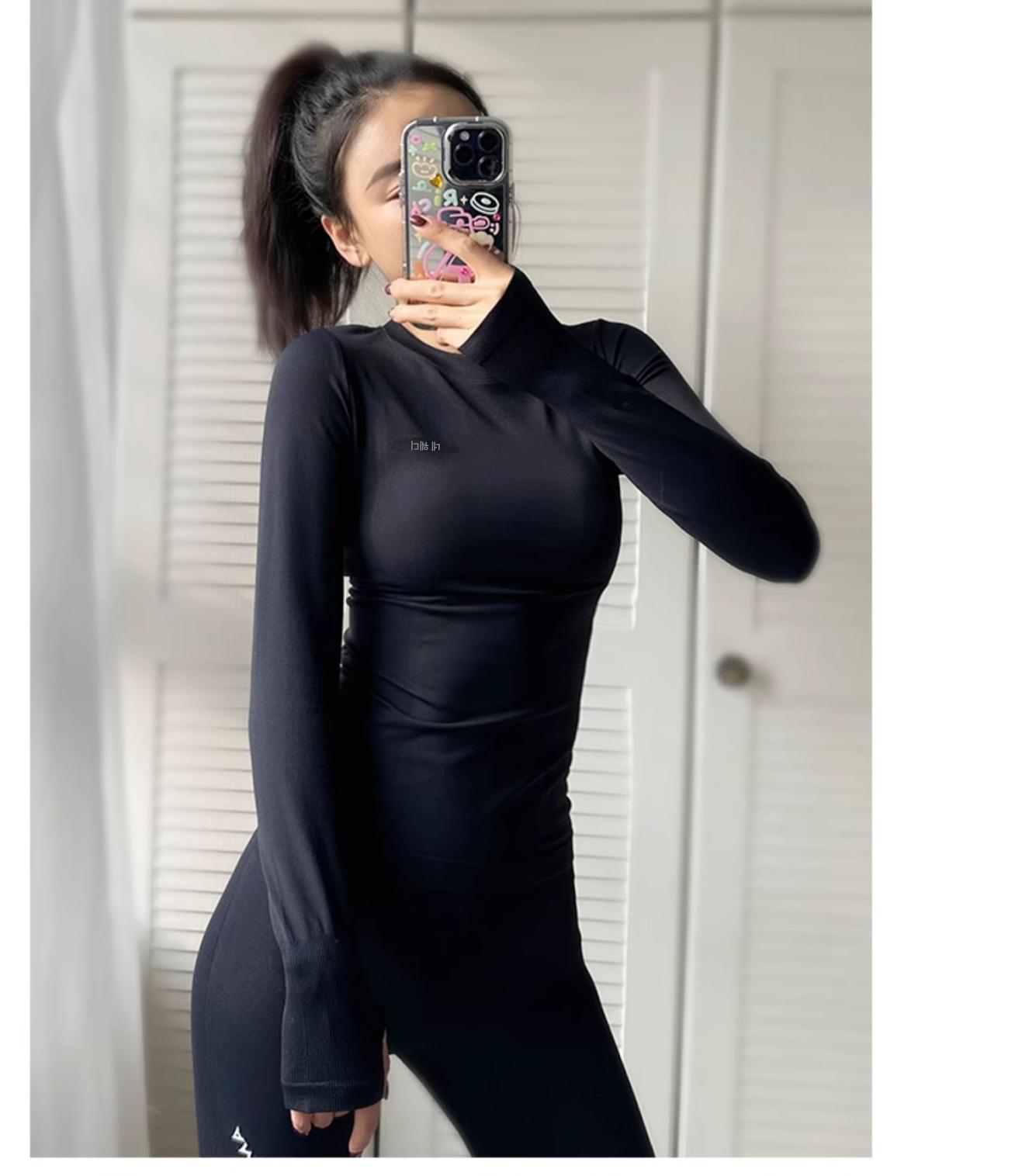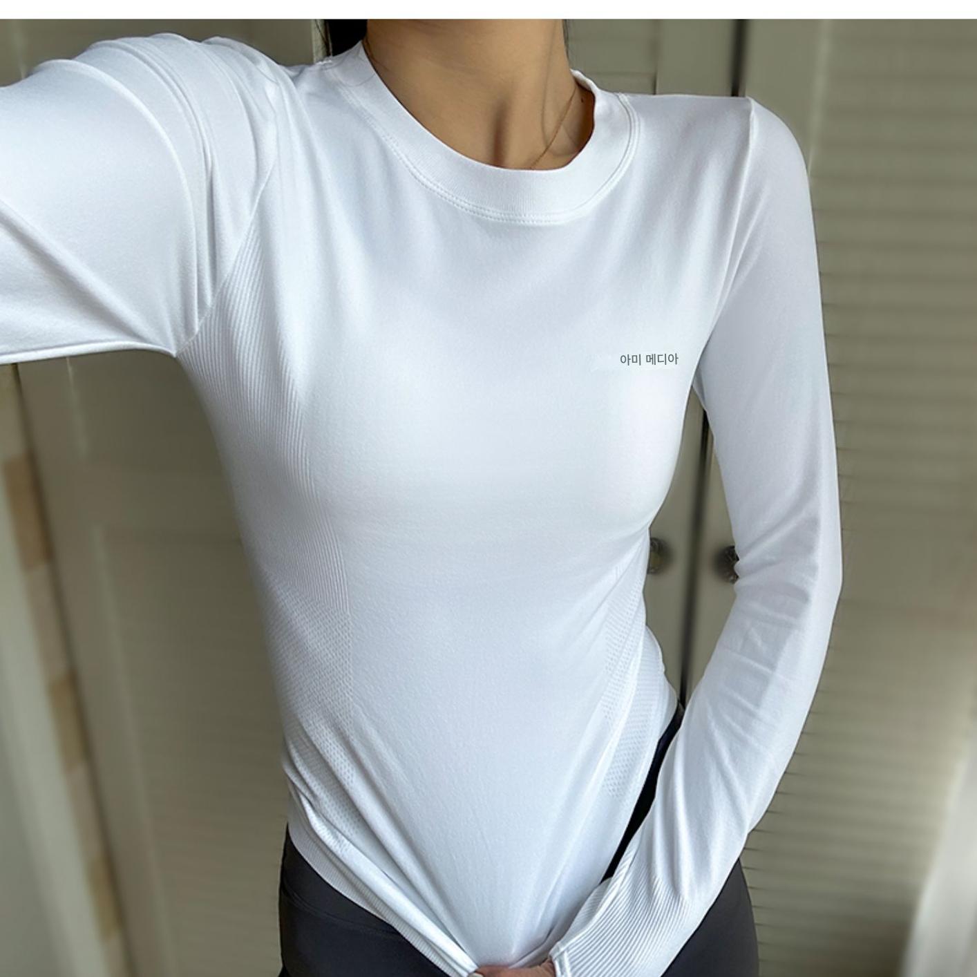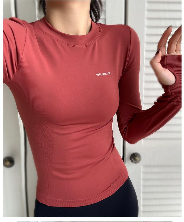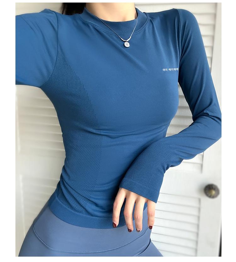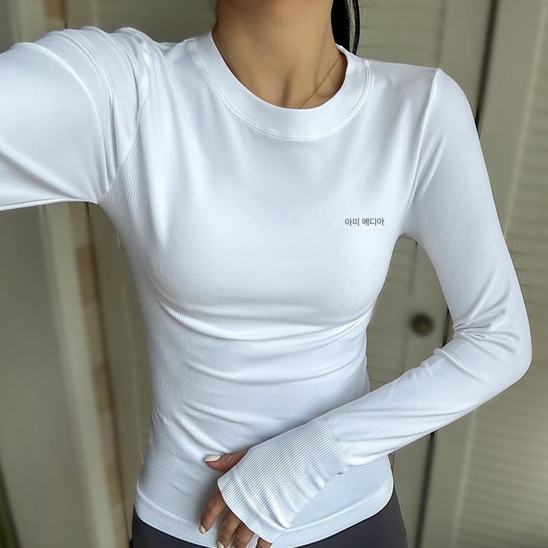 여성용 섹시 스포츠 상의, 러닝용 긴팔 속건성 옷, 체육관 티셔츠, 타이트 슬리브, 고탄력 요가 옷