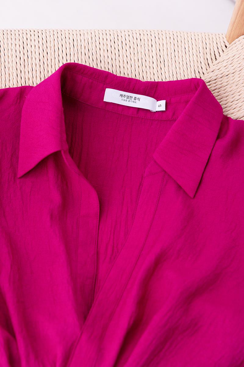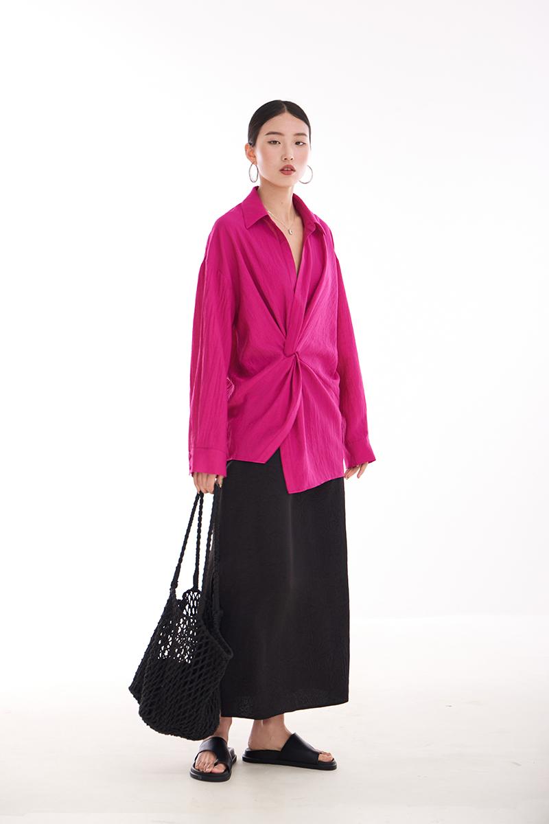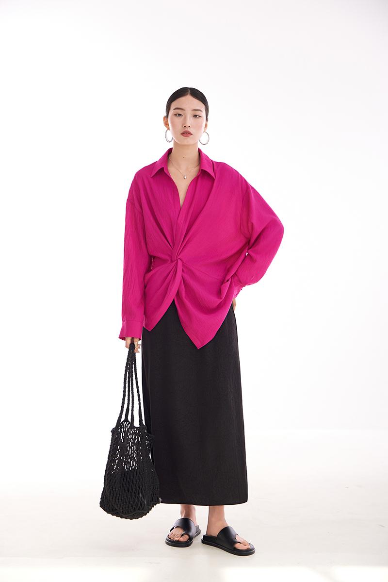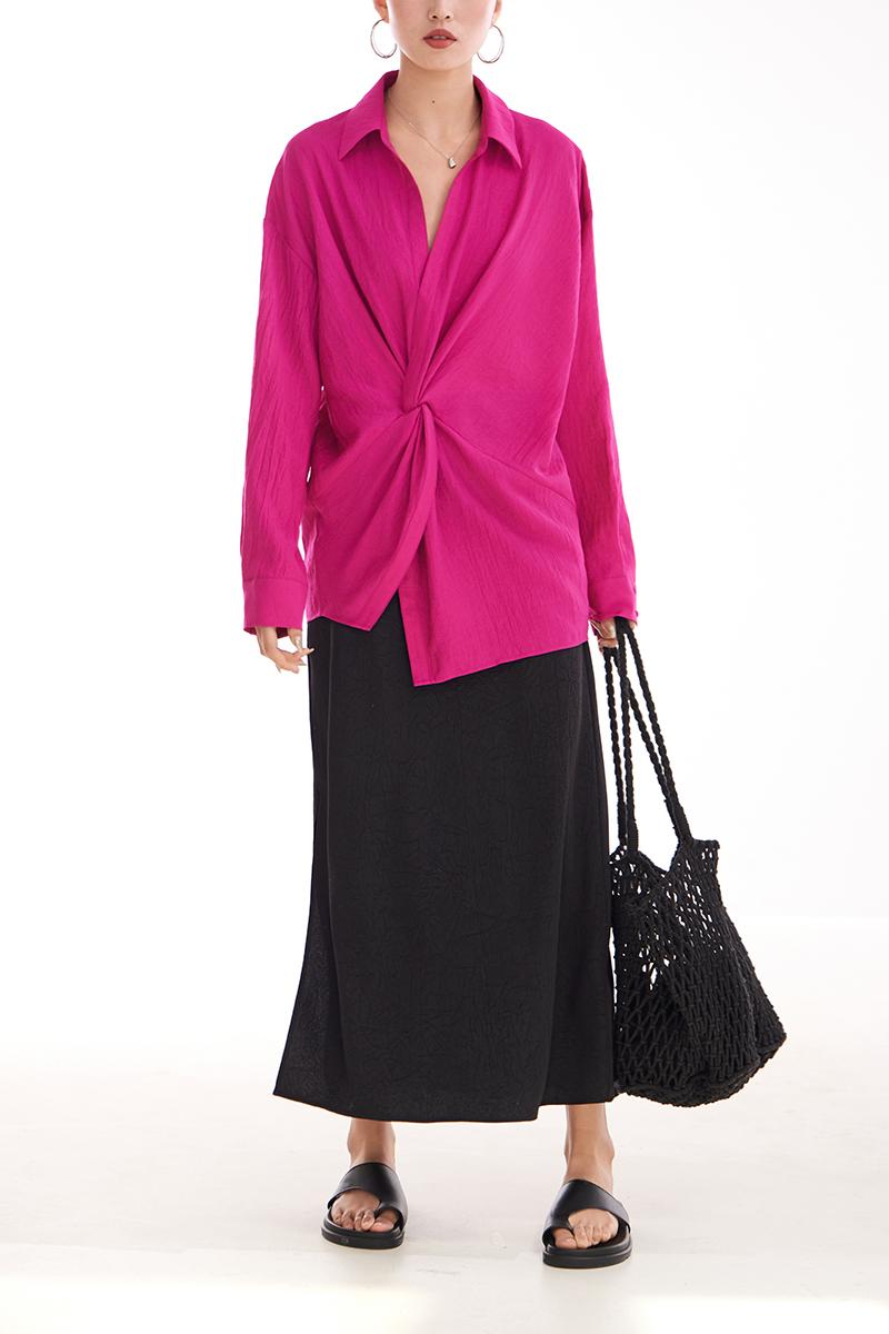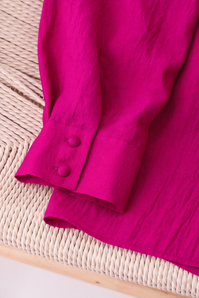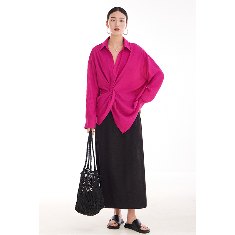 여성용 셔츠, 블라우스, 프렌치 스타일, 니치 디자인, 불규칙한 새로운 스타일, 고급 기질, 긴팔, 드래곤프루트 색상