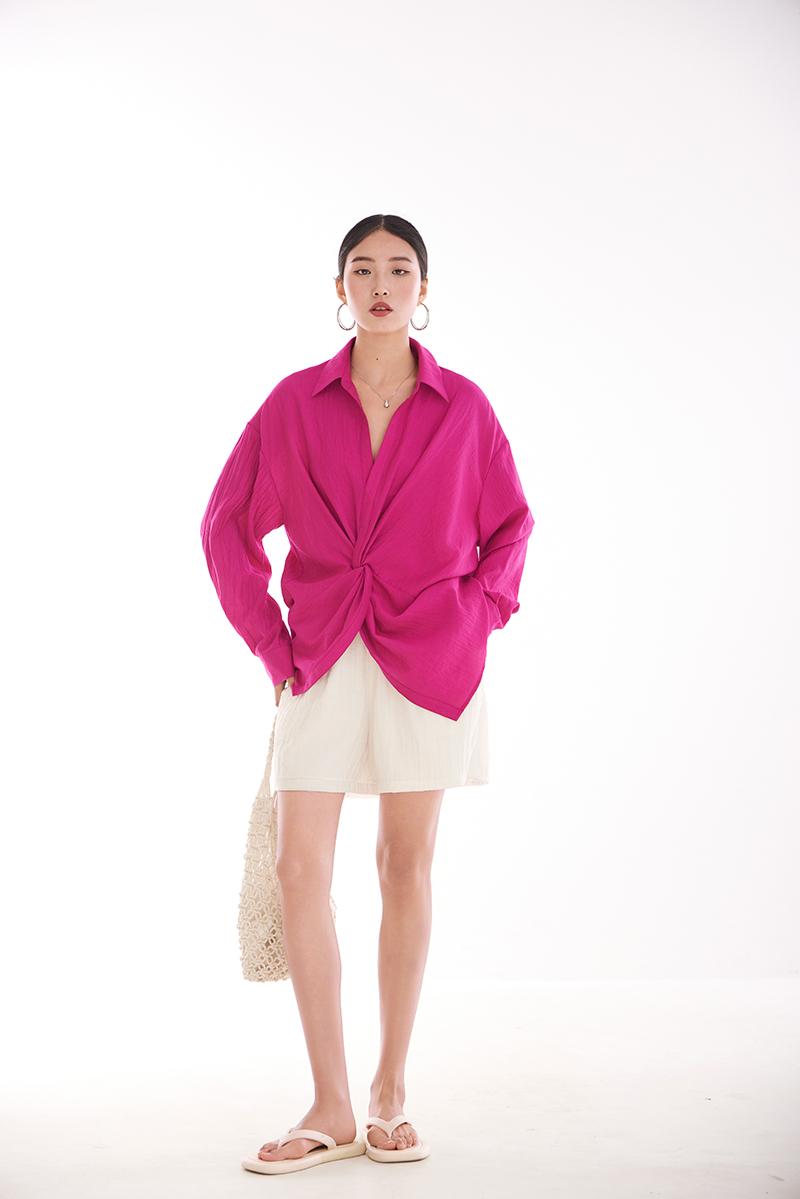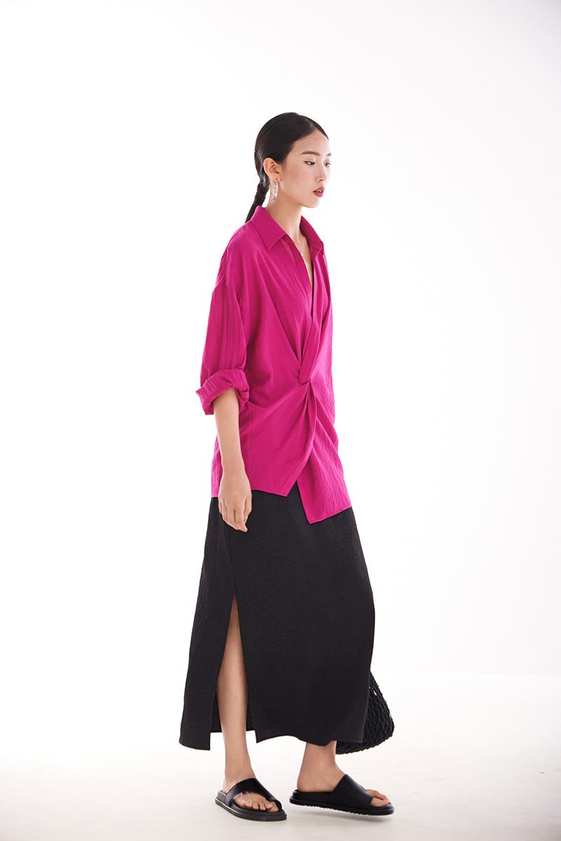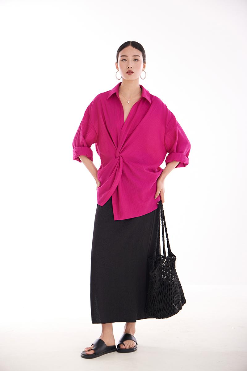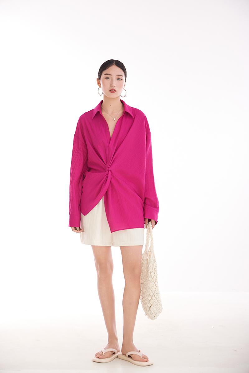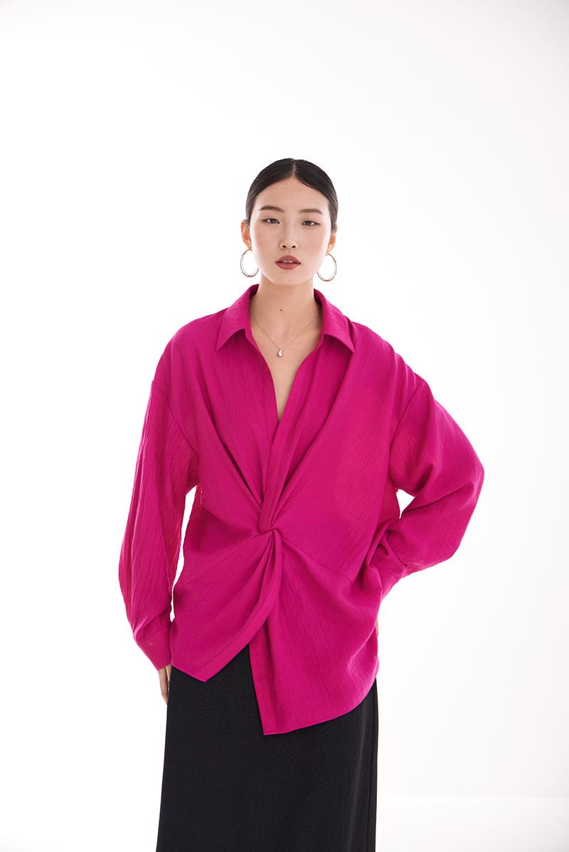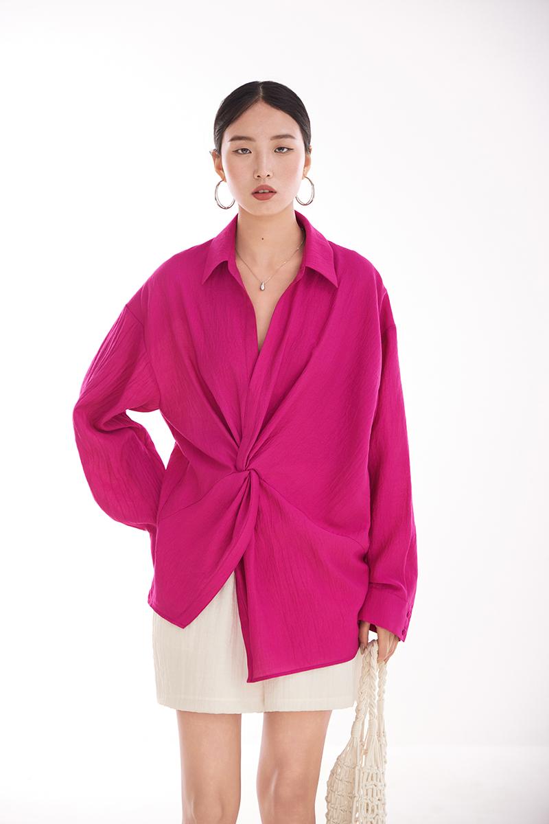 여성용 셔츠, 블라우스, 프렌치 스타일, 니치 디자인, 불규칙한 새로운 스타일, 고급 기질, 긴팔, 드래곤프루트 색상