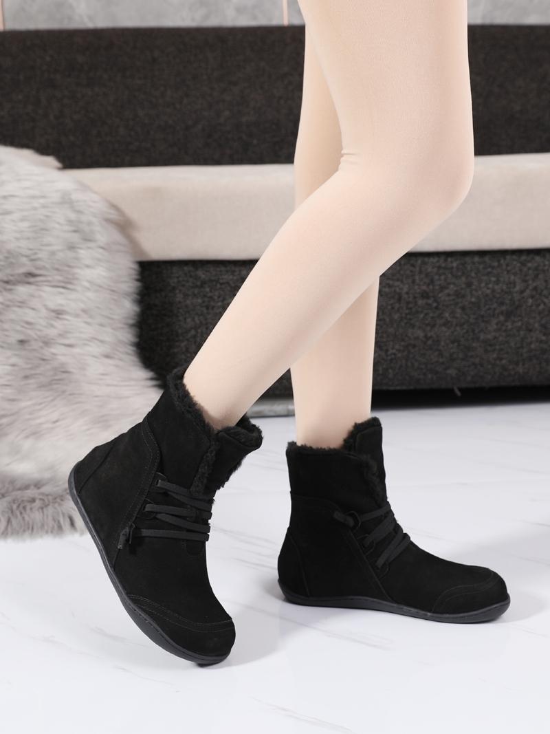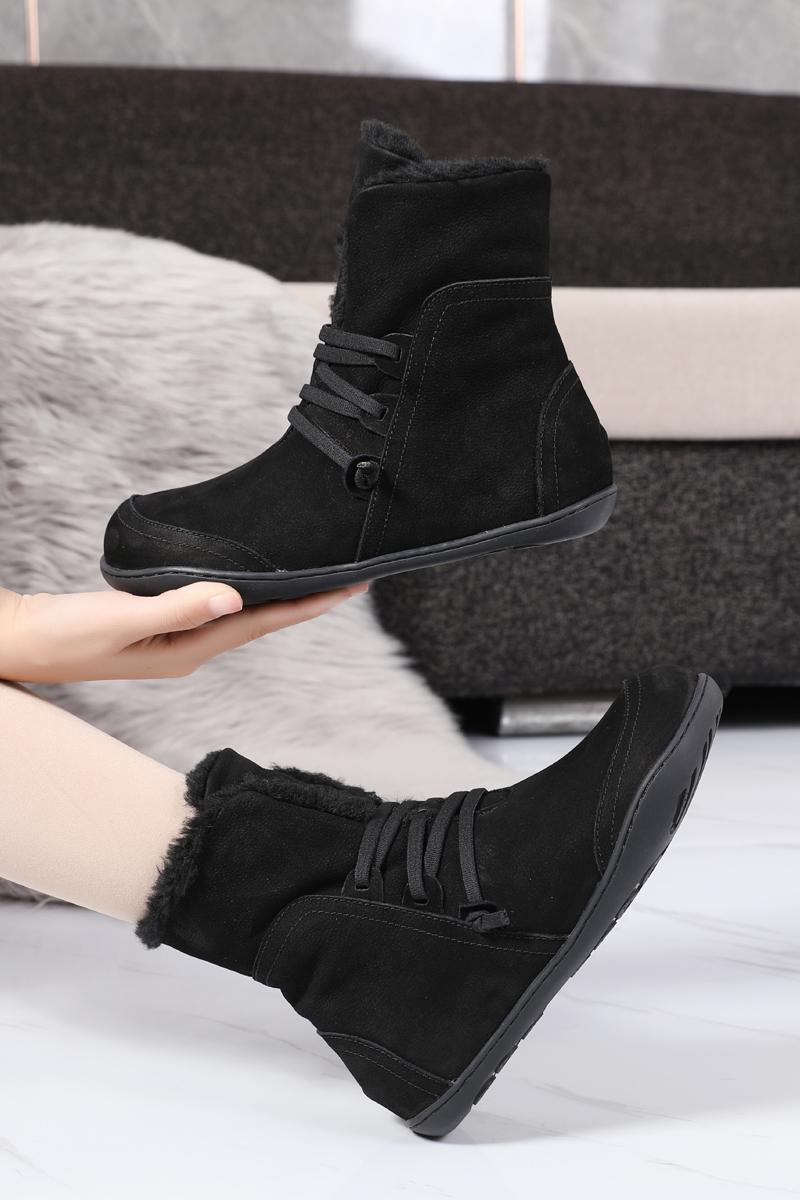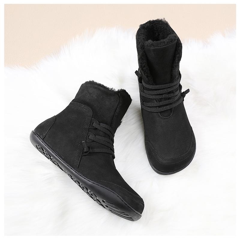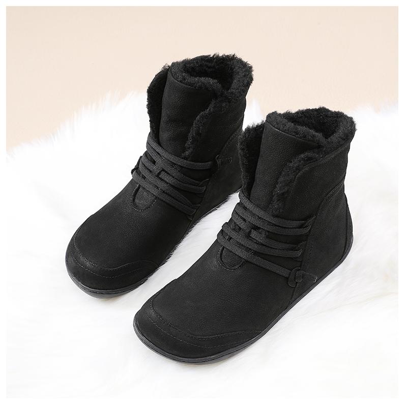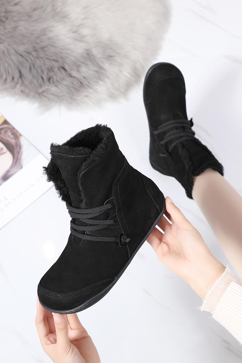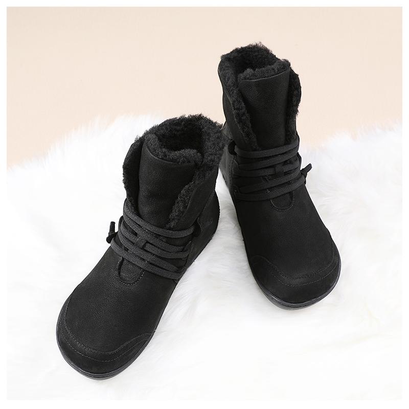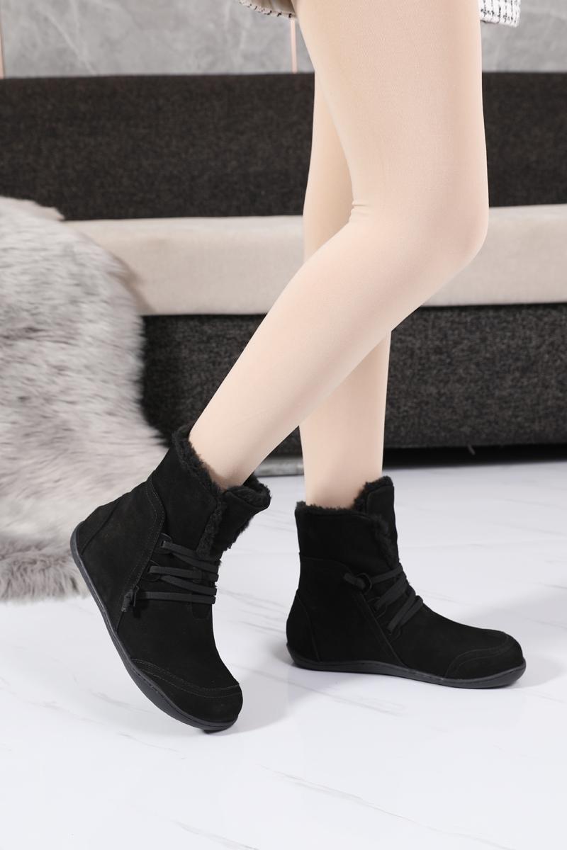 여성용 스노우 부츠 플러스 벨벳 두꺼워짐 2024 겨울 신상품 따뜻한 울 짧은 배럴 정품 가죽 방수 미끄럼 방지 플랫 바닥 짧은 부츠