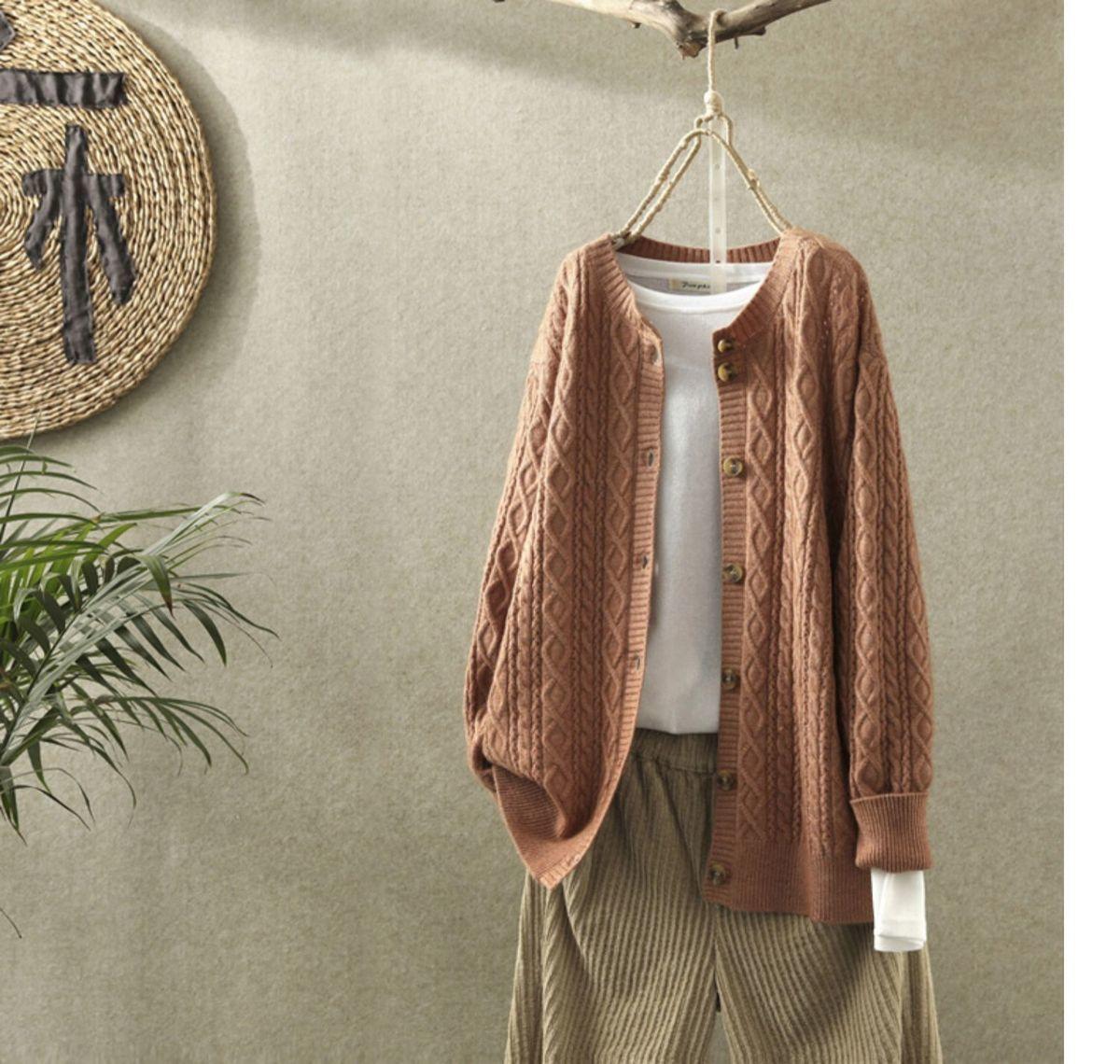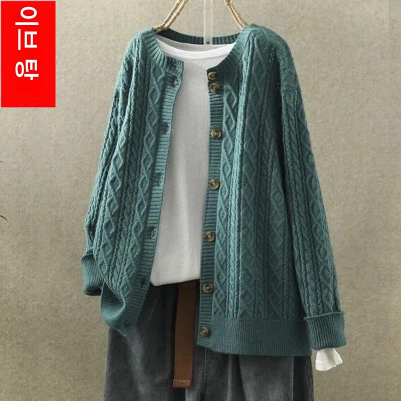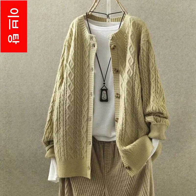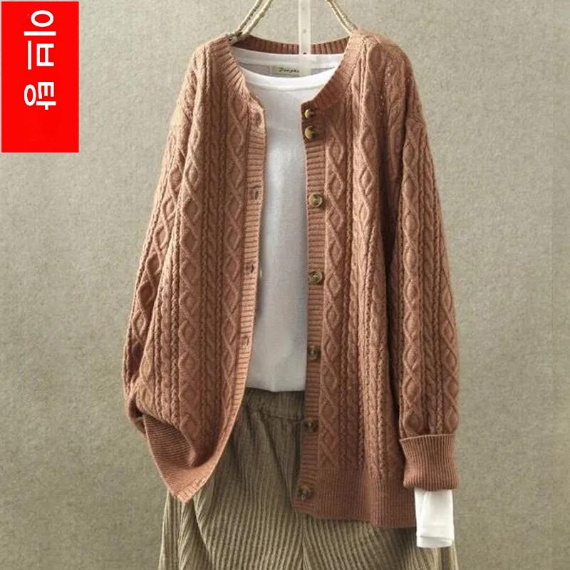여성용 스웨터 재킷 카디건 짧은 복고풍 문학적 라운드 넥 다용도 캐주얼 긴 니트 스웨터 아우터 봄과 가을