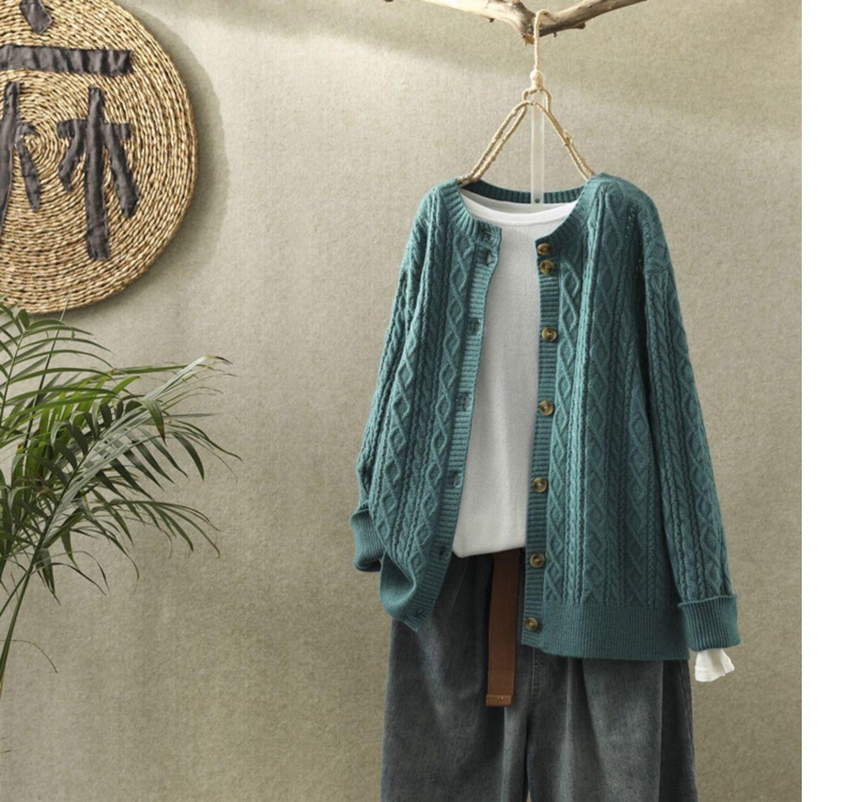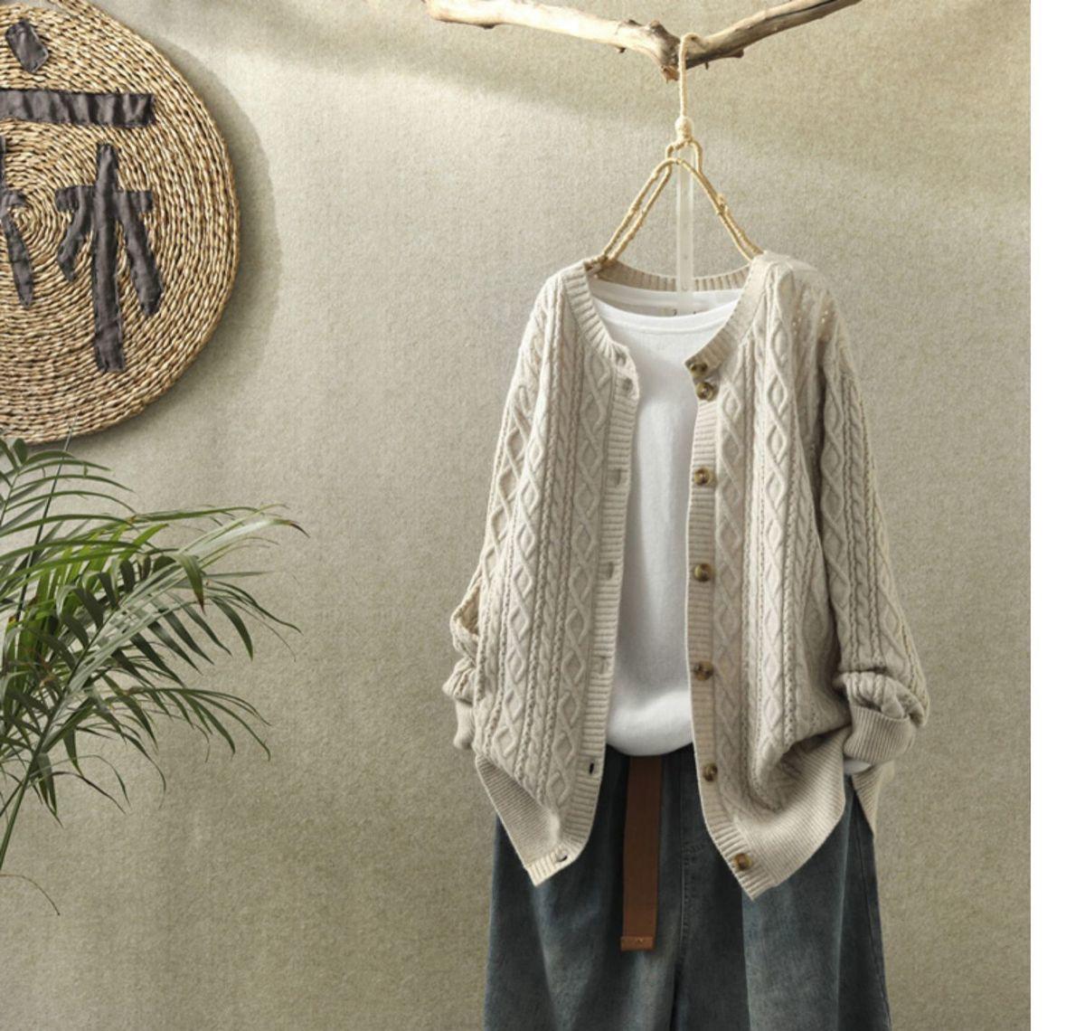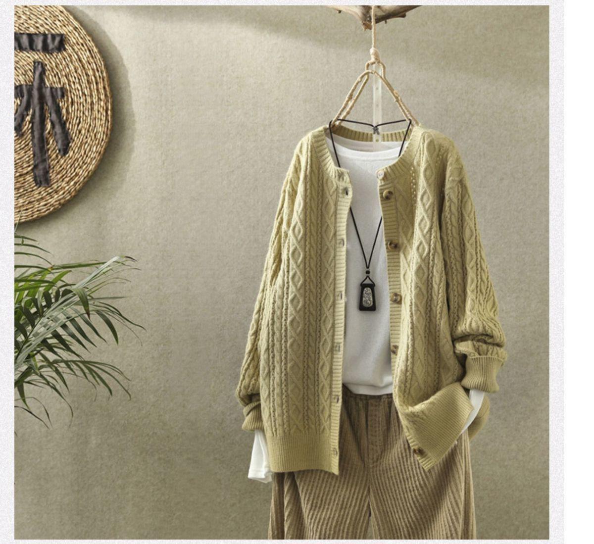 여성용 스웨터 재킷 카디건 짧은 복고풍 문학적 라운드 넥 다용도 캐주얼 긴 니트 스웨터 아우터 봄과 가을