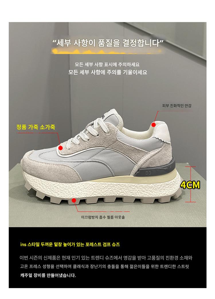 “여성용 아빠화 한국 버전, 정품 가죽 두꺼운 밑창 여행화, 2024년 봄 신상 포레스트 검프화, 다재다능한 스포츠 캐주얼화 트렌드”의 첫 상품평을 남겨 주세요