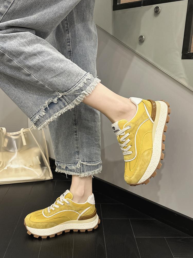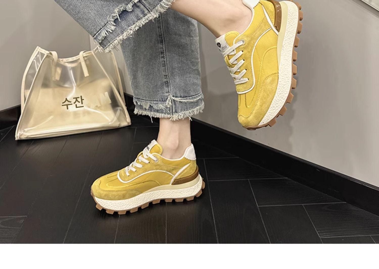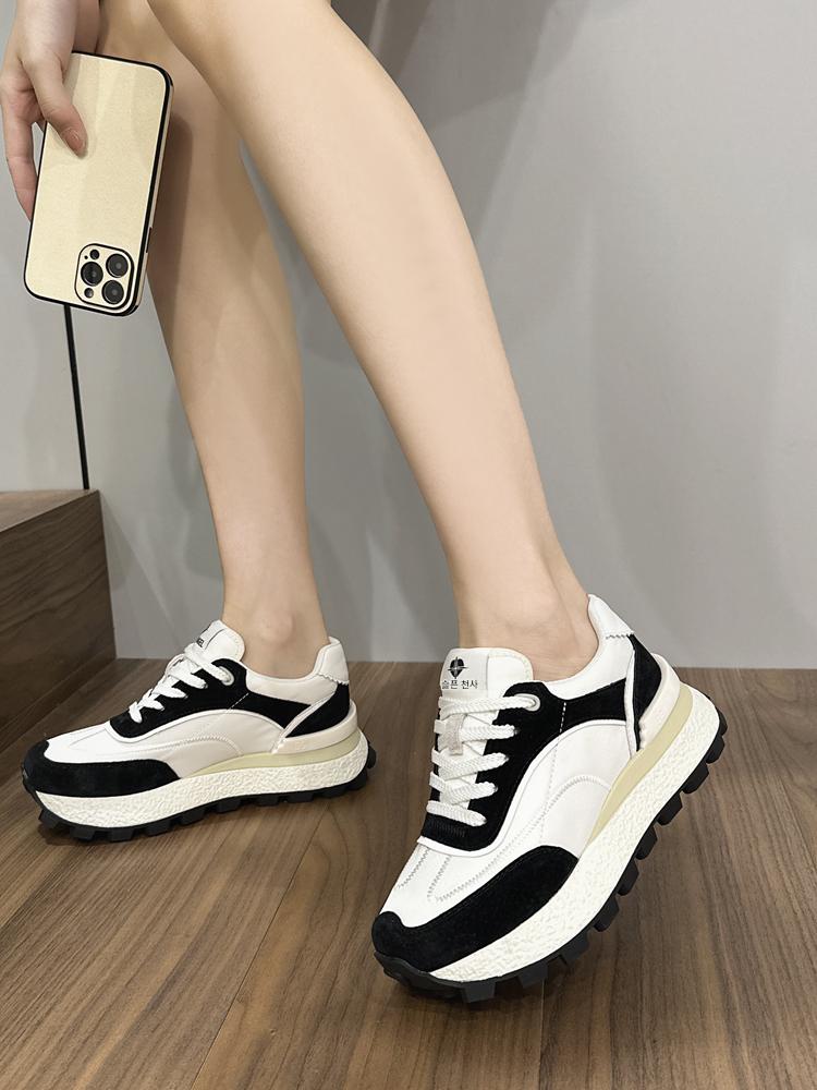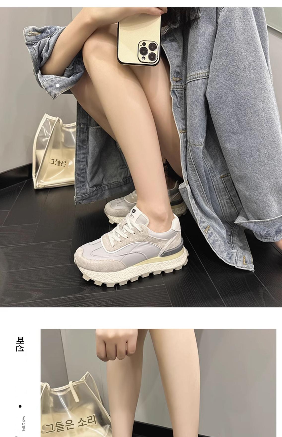 여성용 아빠화 한국 버전, 정품 가죽 두꺼운 밑창 여행화, 2024년 봄 신상 포레스트 검프화, 다재다능한 스포츠 캐주얼화 트렌드