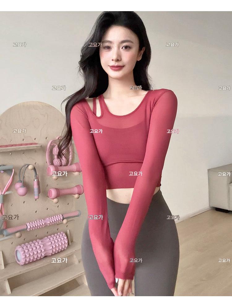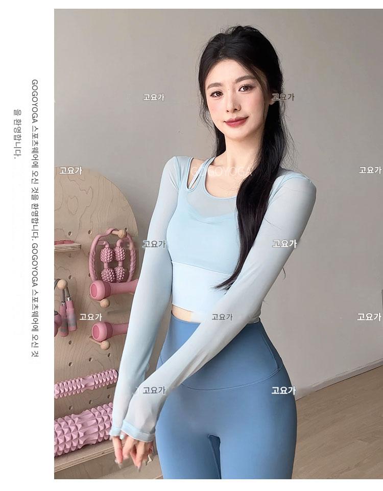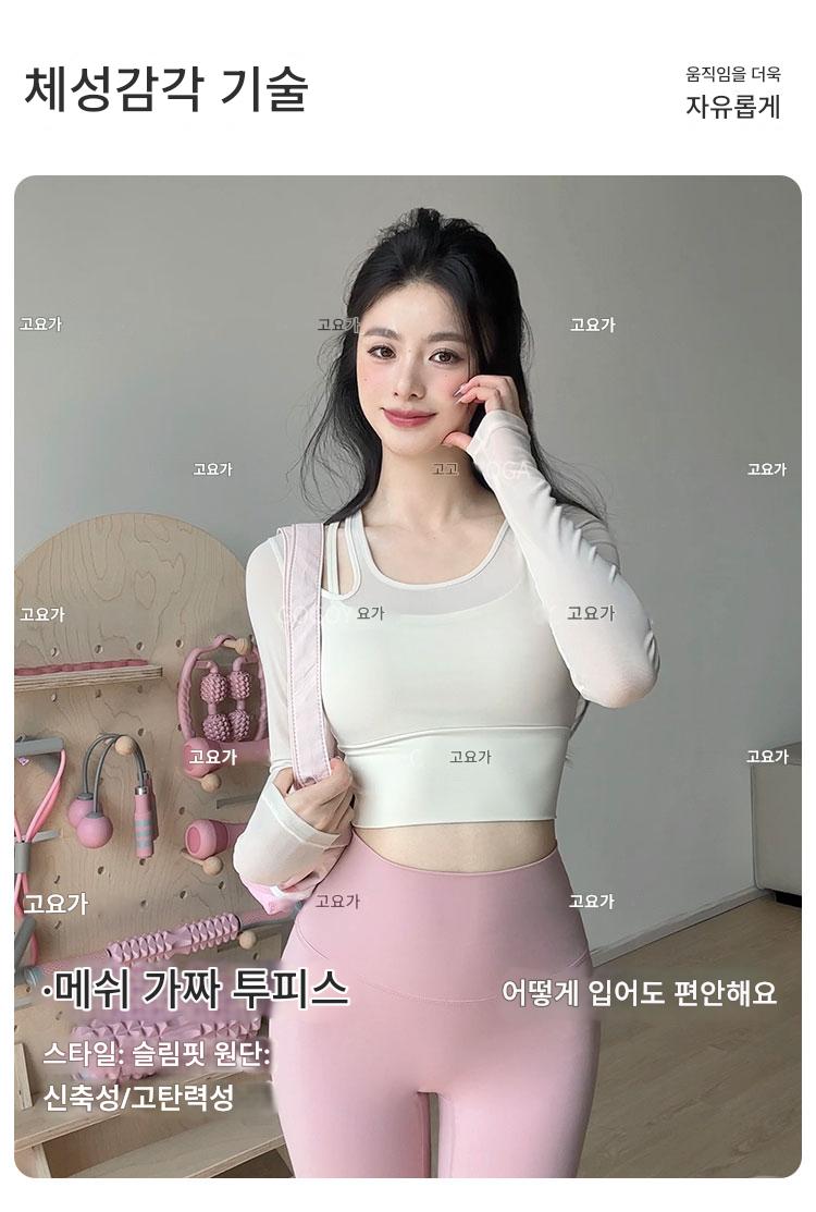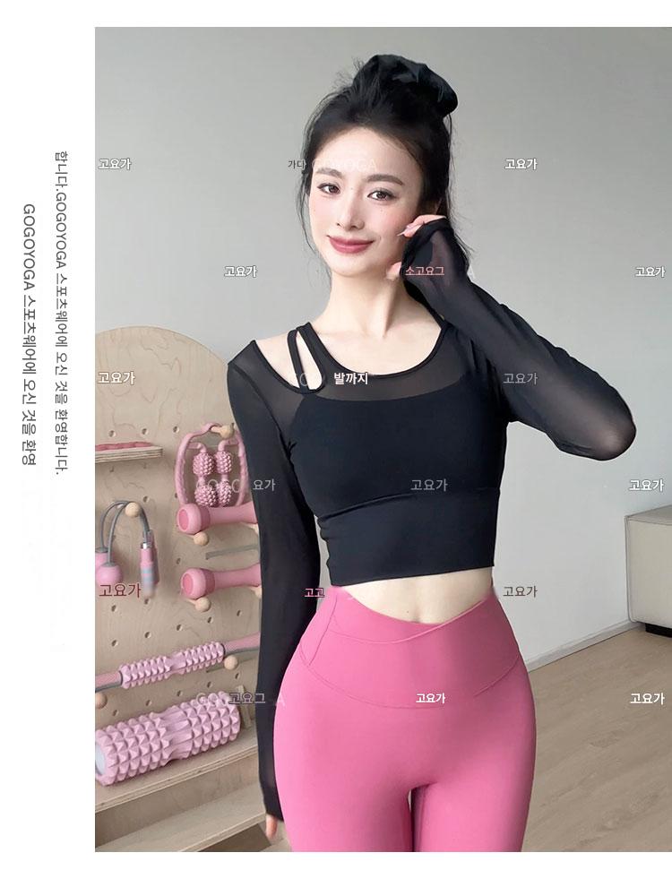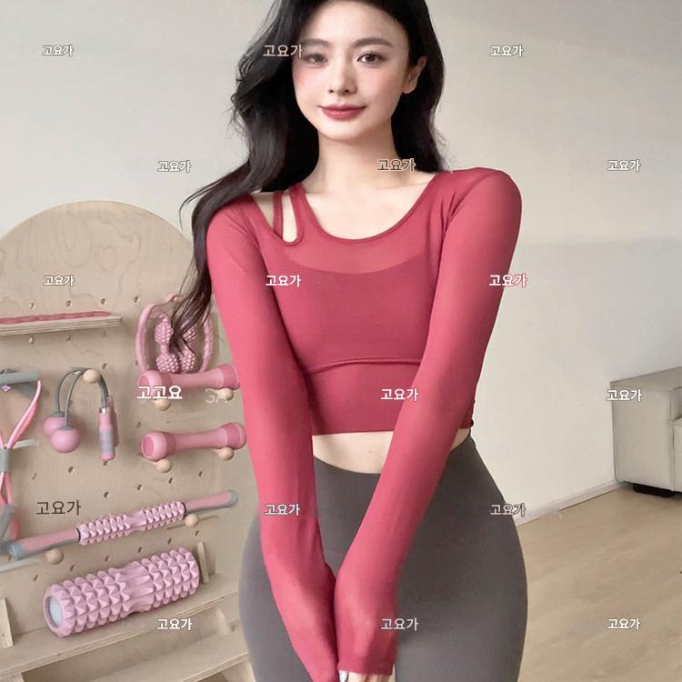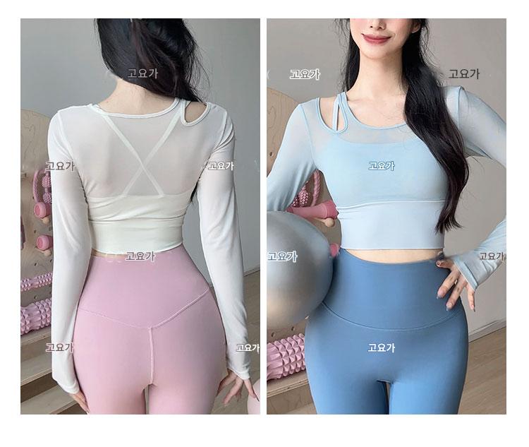여성용 요가복 2024년 신스타일 가슴 패드 긴팔 상의 필라테스 트레이닝복 러닝 피트니스복