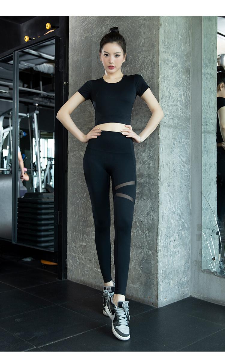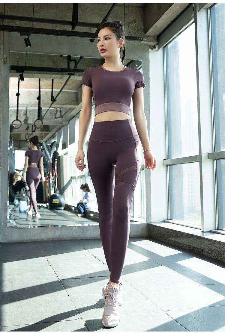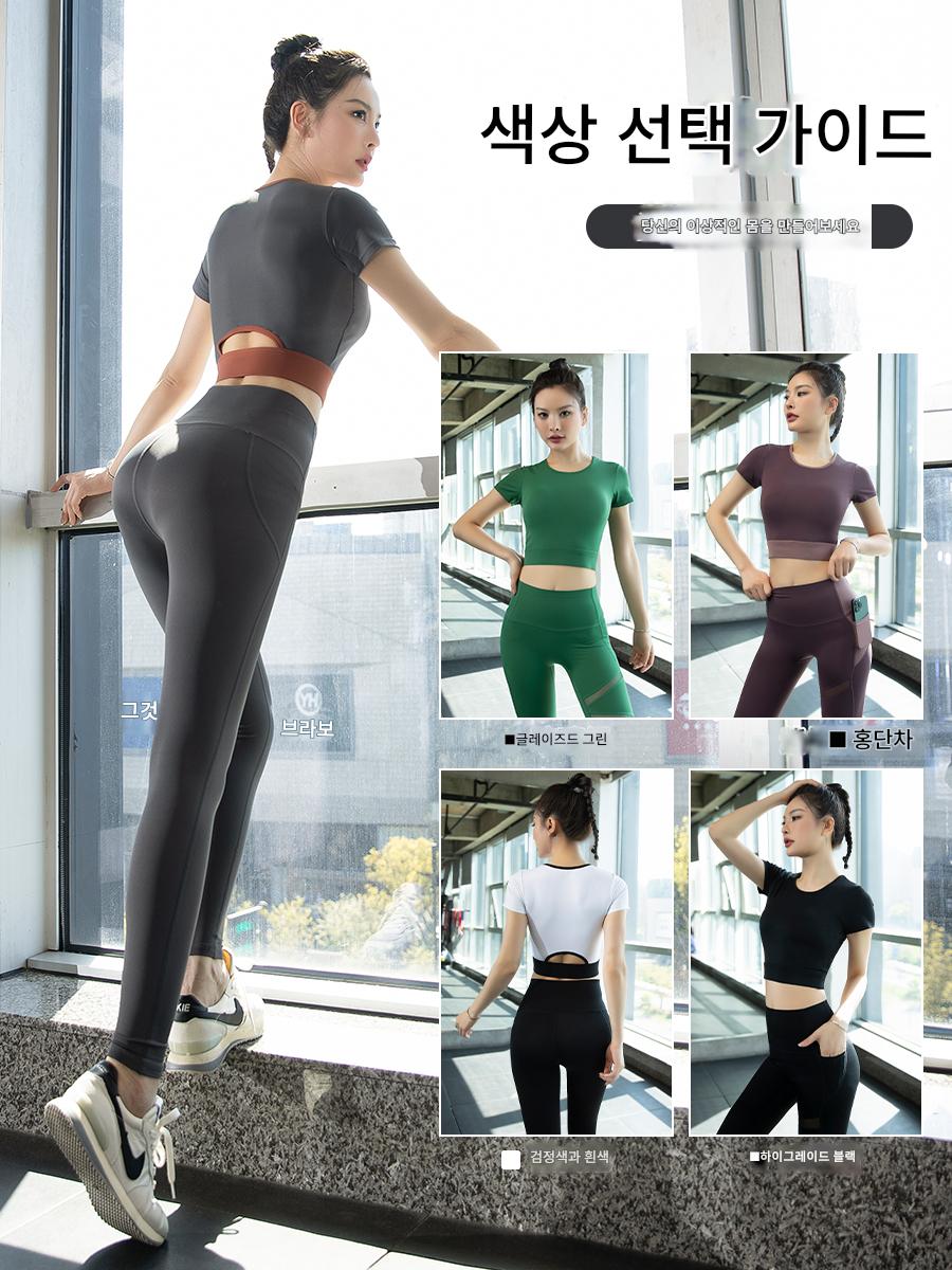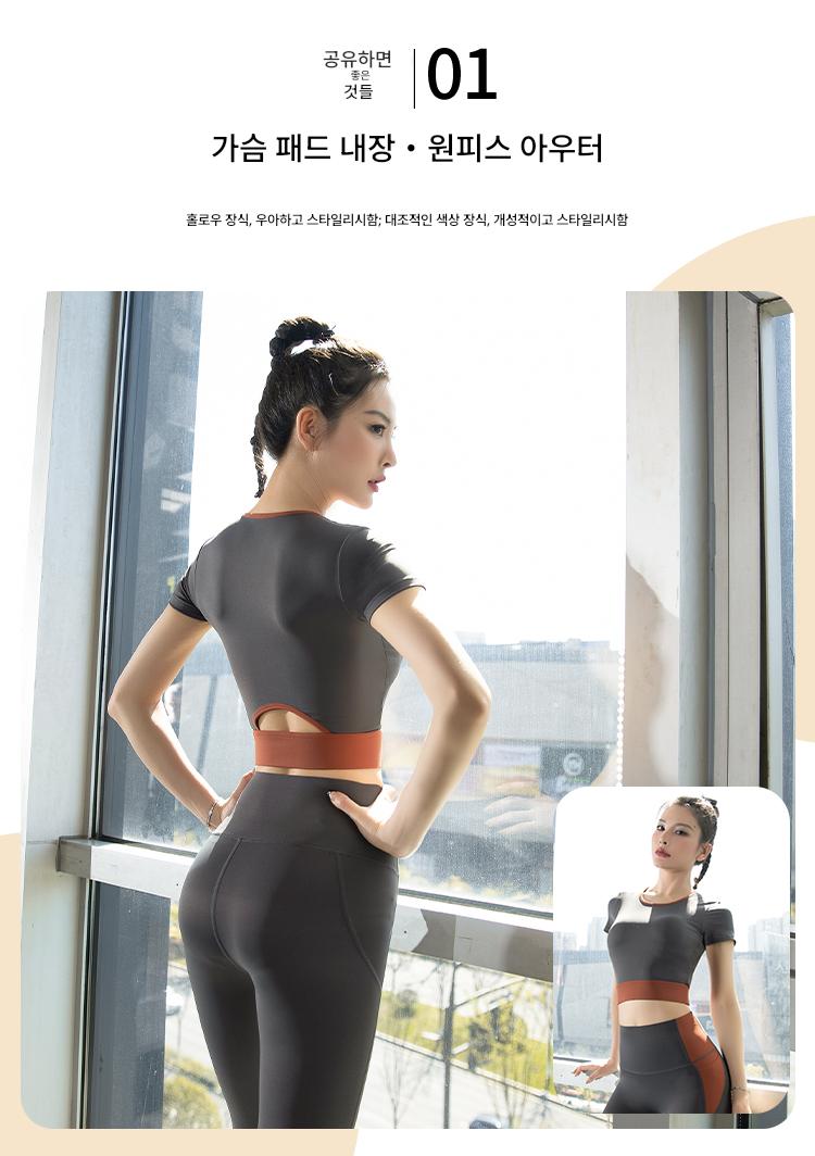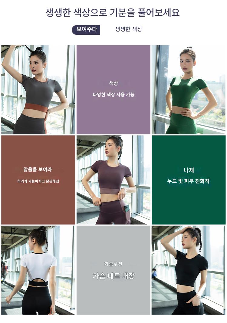 여성용 요가복 2024년 신스타일 가슴 패드 반팔 스포츠 피트니스 필라테스 트레이닝복 상의 고급 슈트