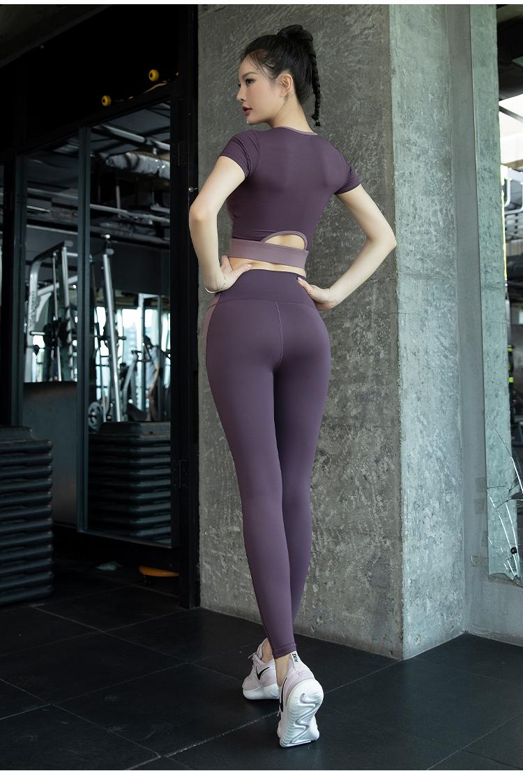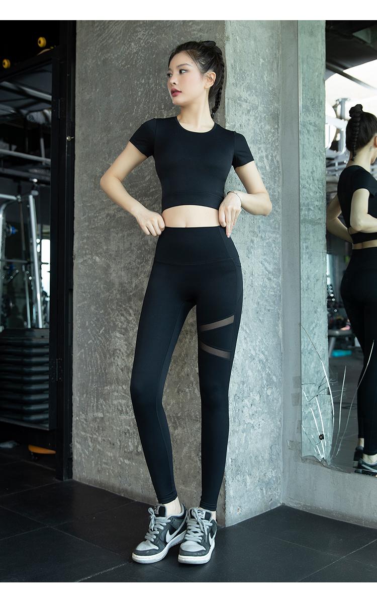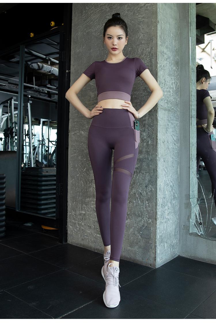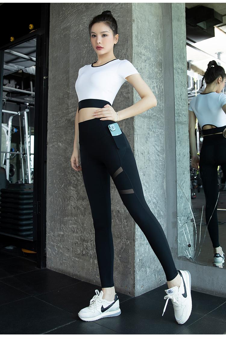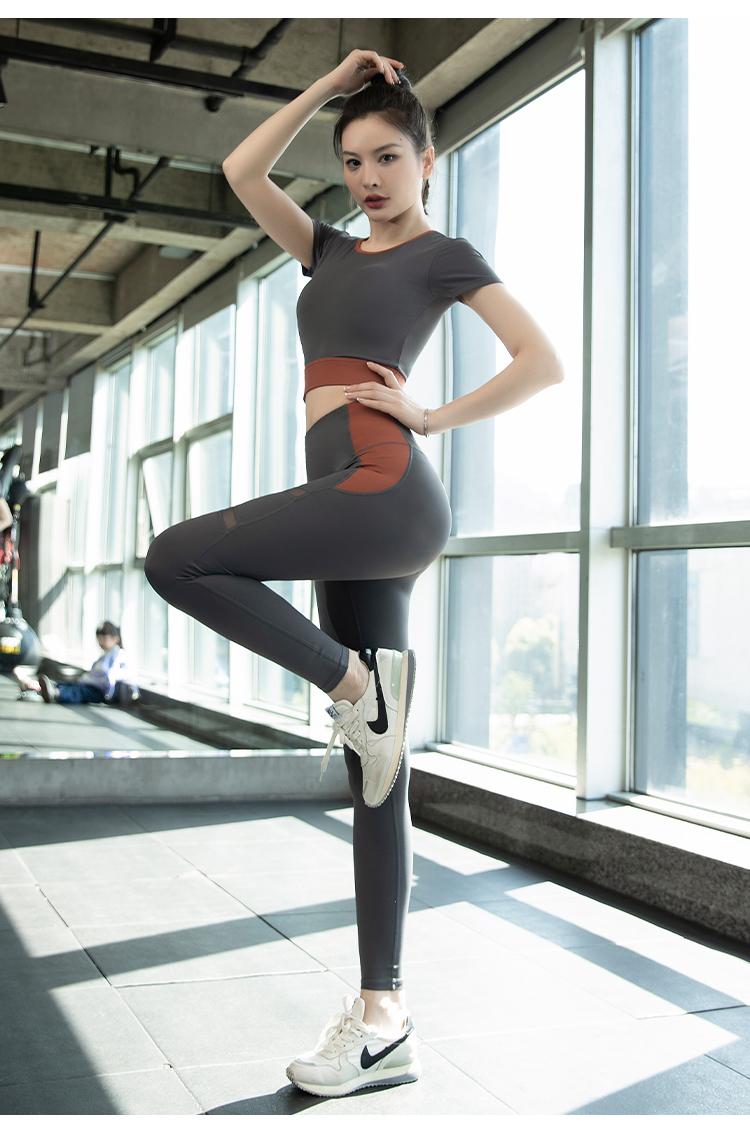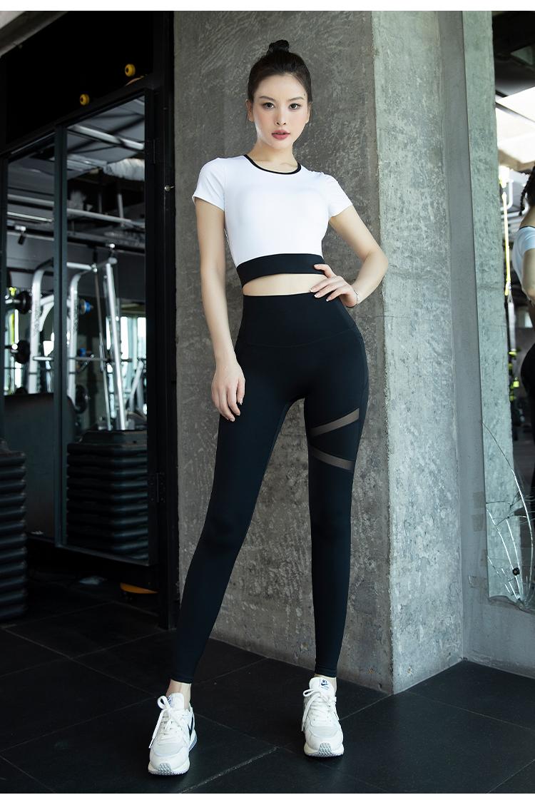여성용 요가복 2024년 신스타일 가슴 패드 반팔 스포츠 피트니스 필라테스 트레이닝복 상의 고급 슈트