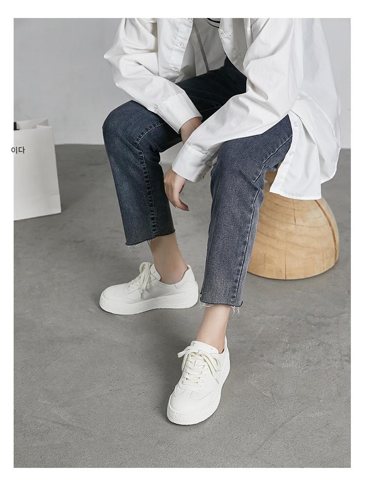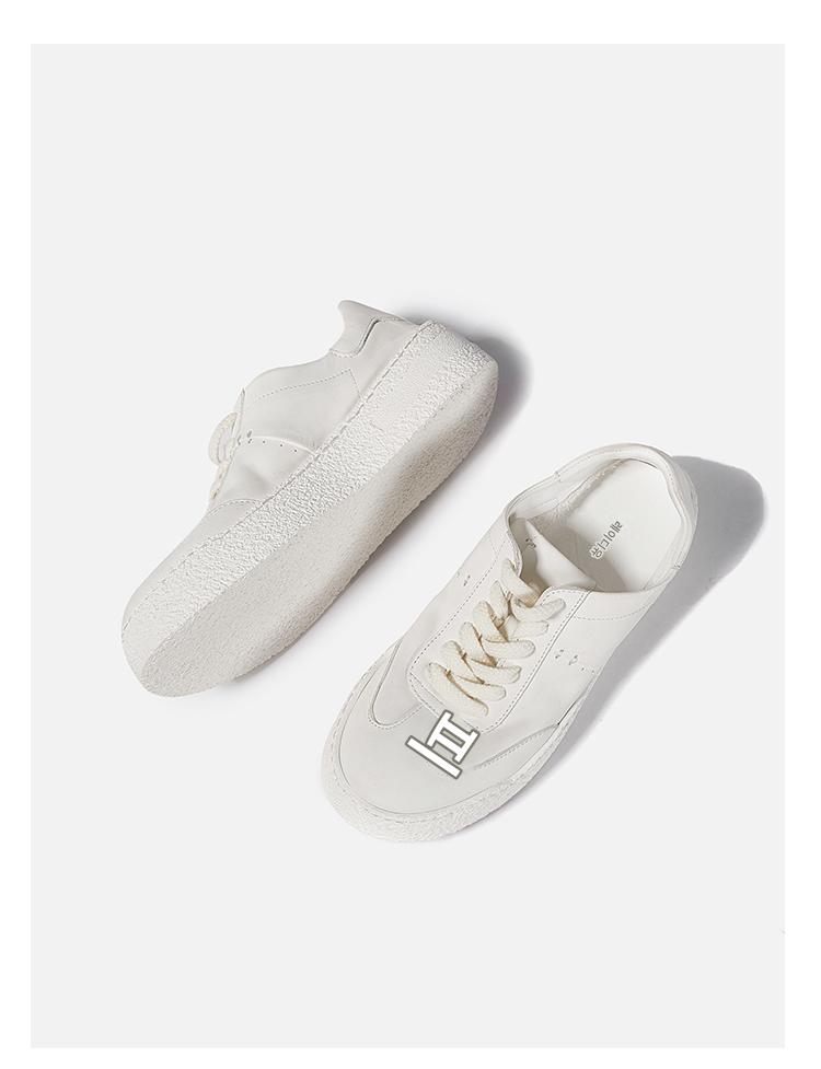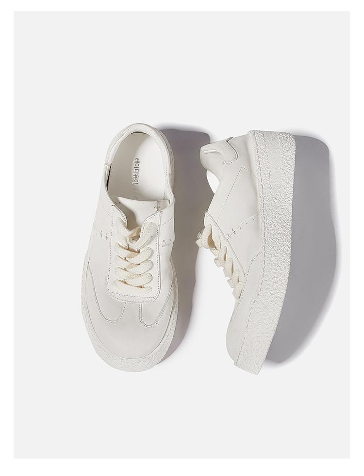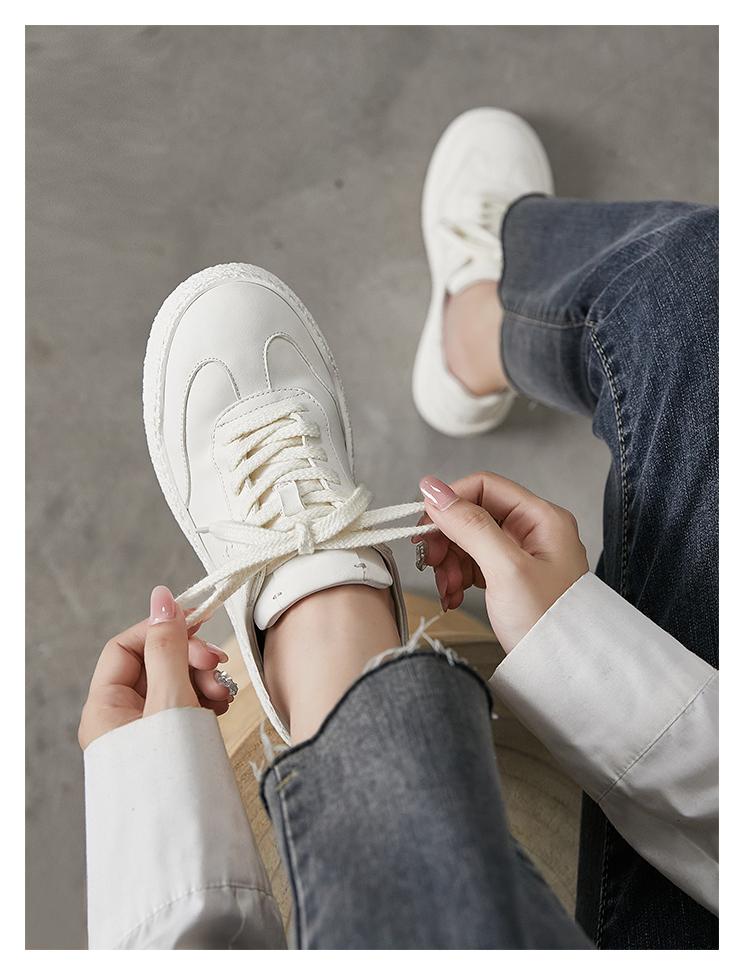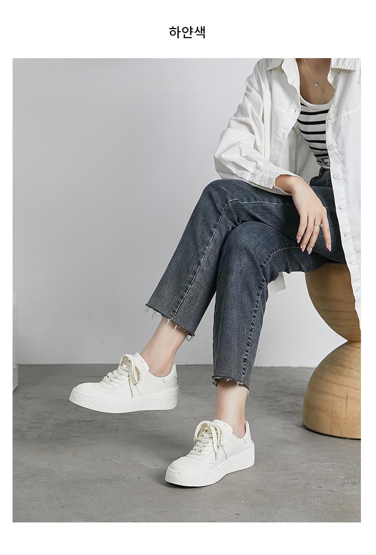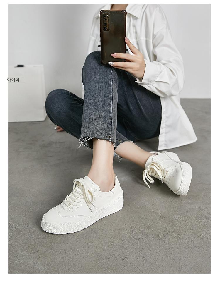 여성용 워시드 말 가죽 두꺼운 밑창 캐주얼 스니커즈 2024년 가을 신스타일 유행 다용도 편안하고 가벼운 흰색 신발 트렌드
