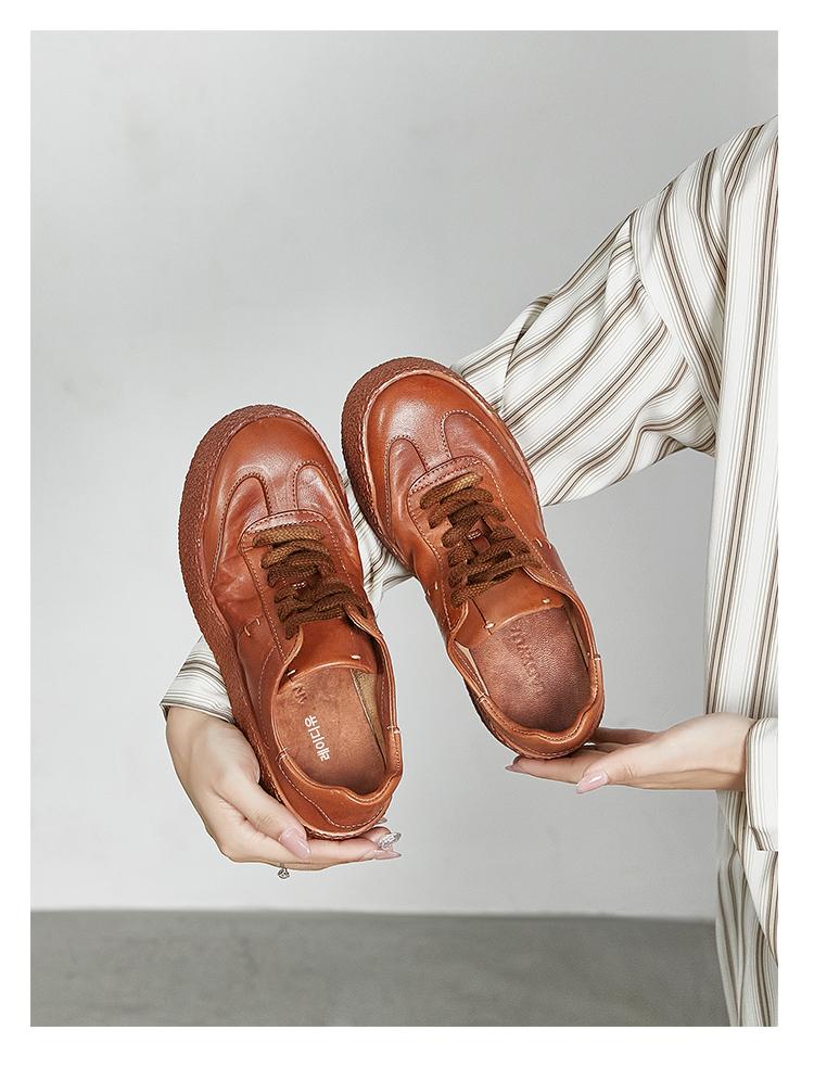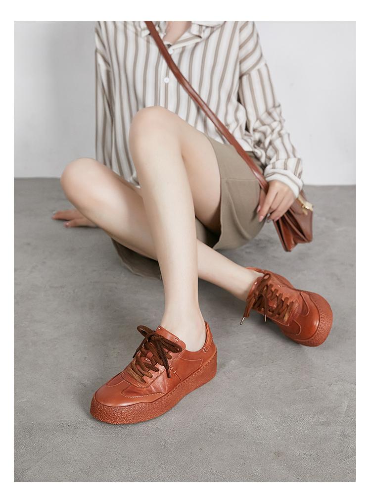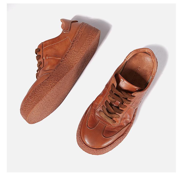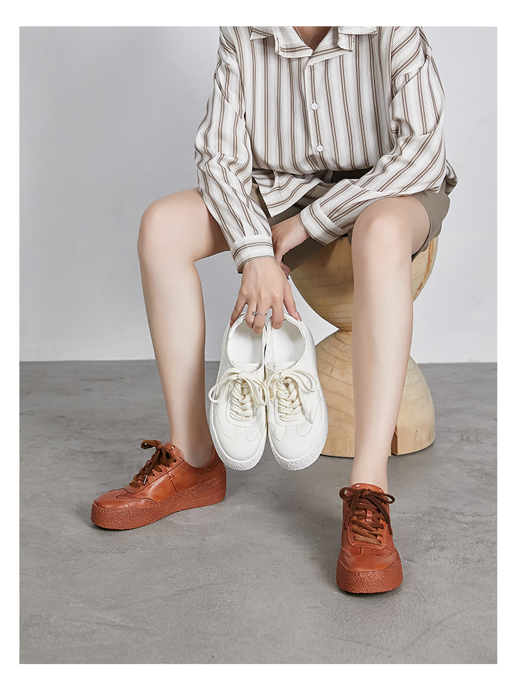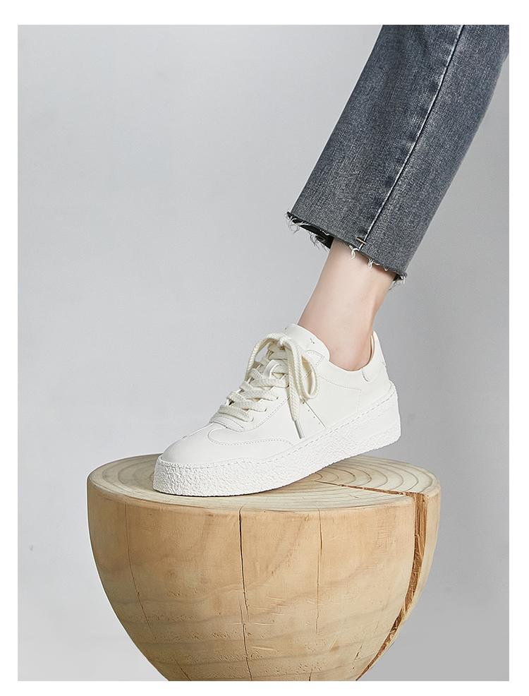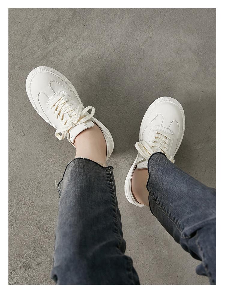 여성용 워시드 말 가죽 두꺼운 밑창 캐주얼 스니커즈 2024년 가을 신스타일 유행 다용도 편안하고 가벼운 흰색 신발 트렌드