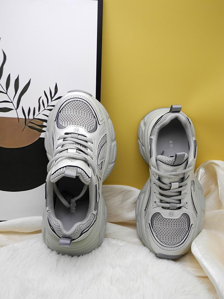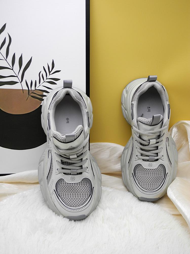 여성용 정품 가죽 두꺼운 밑창 아빠화 2025년 신상 레트로 트렌드 발이 보이는 작은 키 키우기 캐주얼 올매치 인기 스포츠화