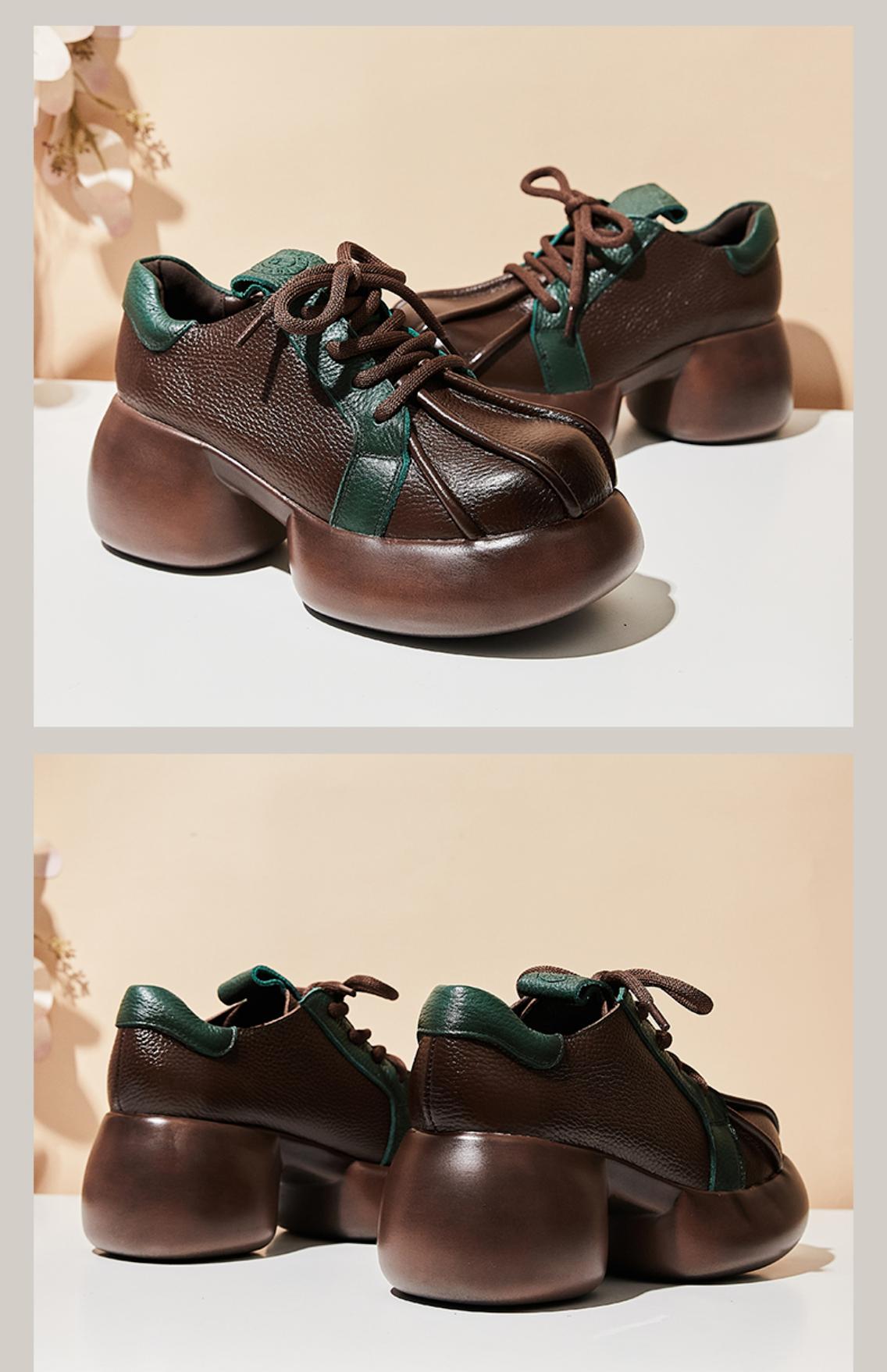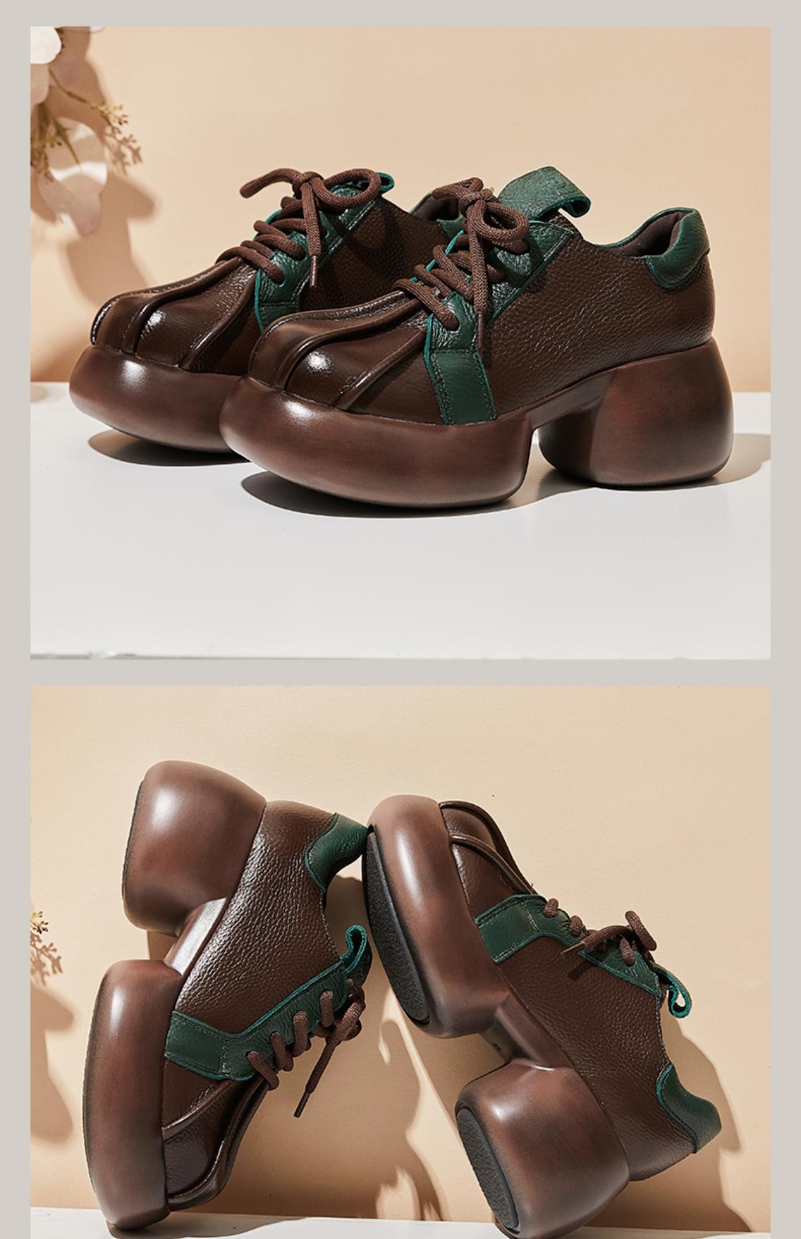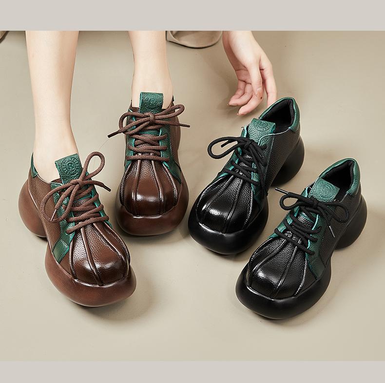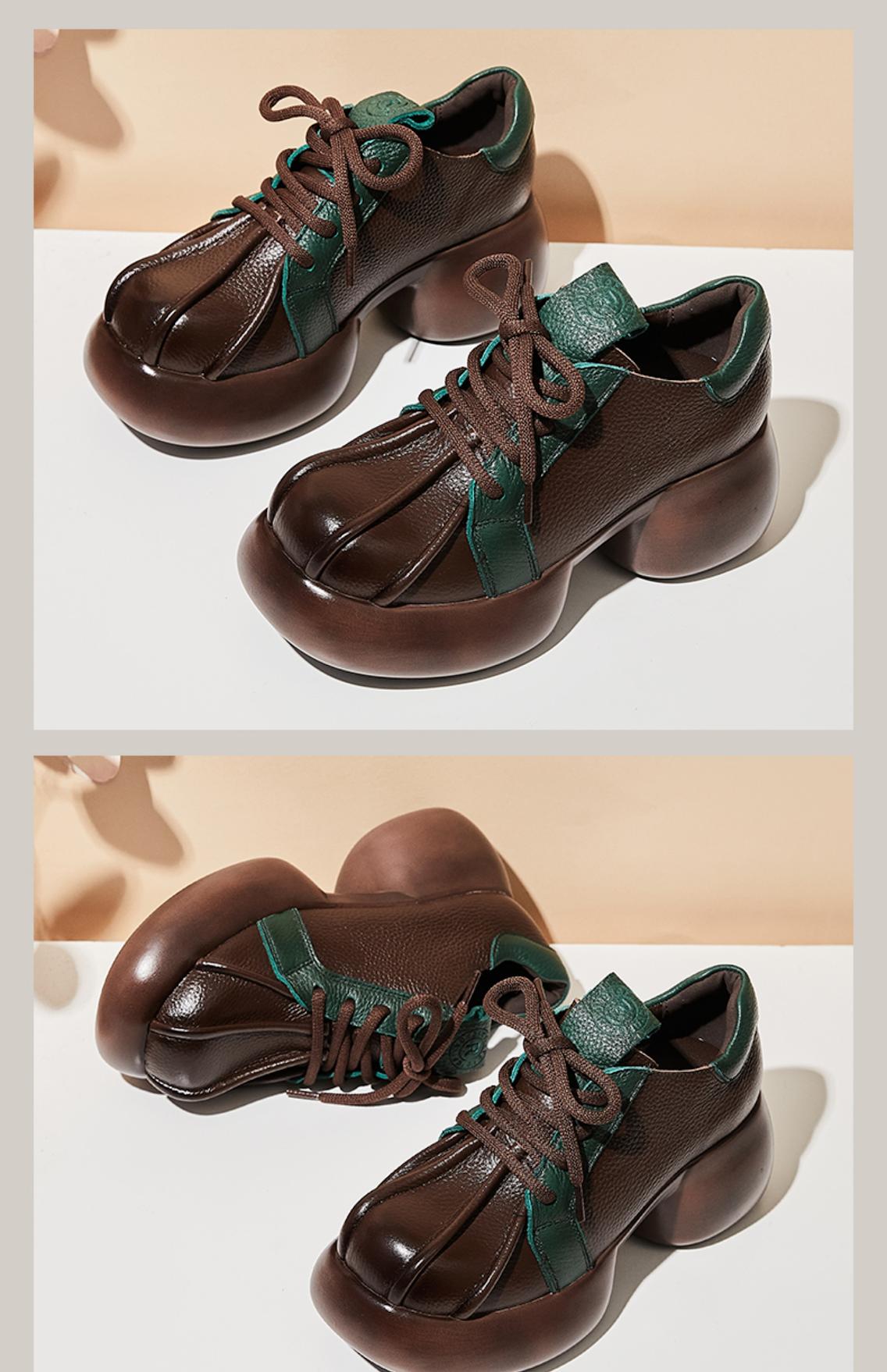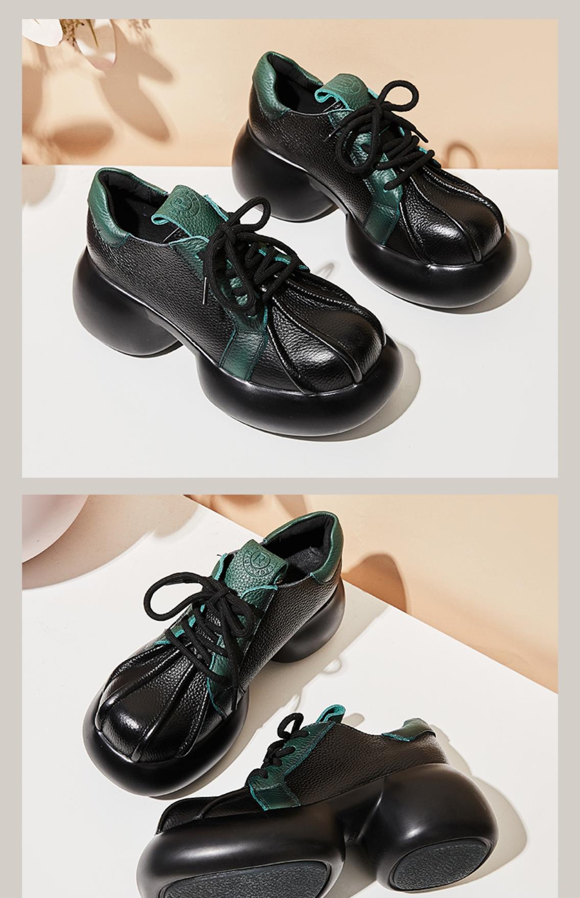 여성용 정품 가죽 두꺼운 밑창 플랫폼 슈즈 봄과 가을 신상품 레트로 하이힐 소가죽 싱글 슈즈 둥근 발가락 캐주얼 다용도 로우탑 가죽 슈즈