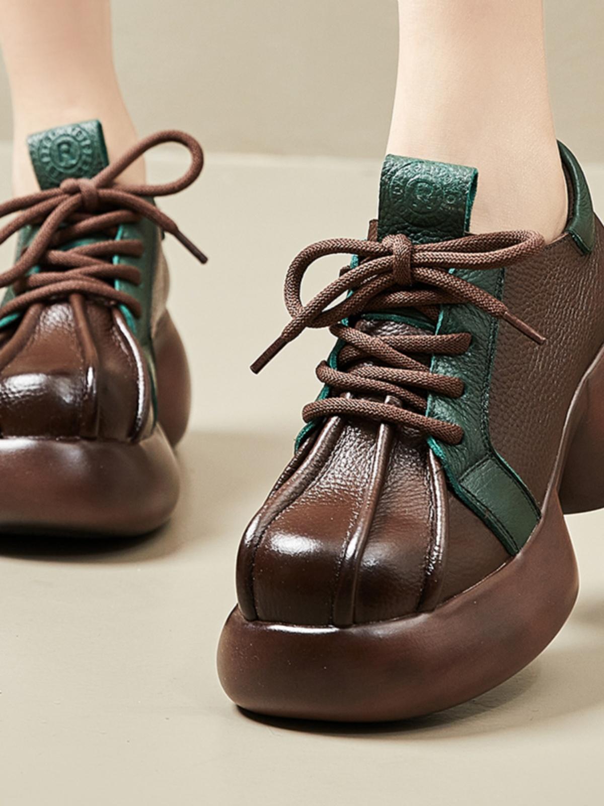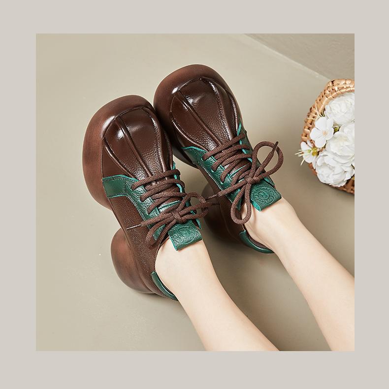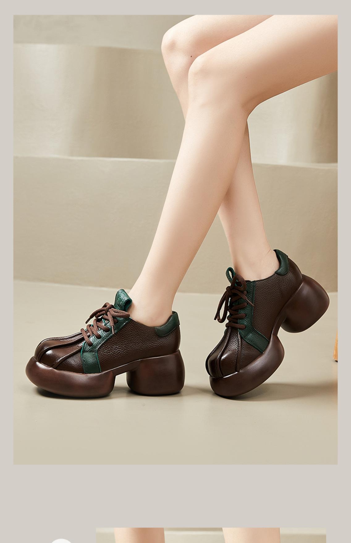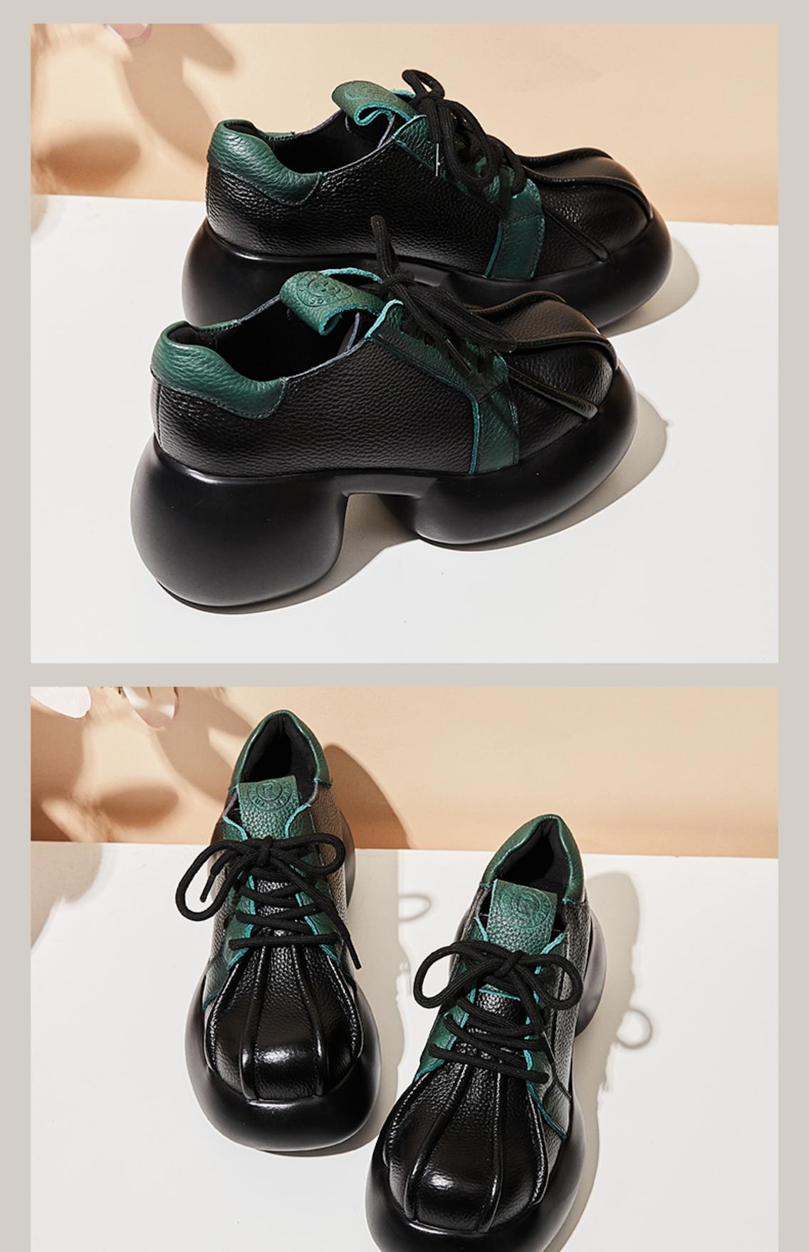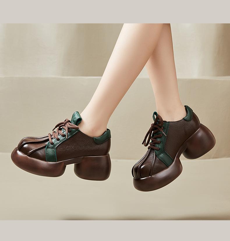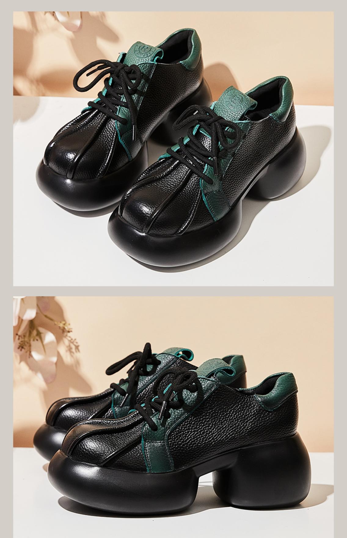 여성용 정품 가죽 두꺼운 밑창 플랫폼 슈즈 봄과 가을 신상품 레트로 하이힐 소가죽 싱글 슈즈 둥근 발가락 캐주얼 다용도 로우탑 가죽 슈즈