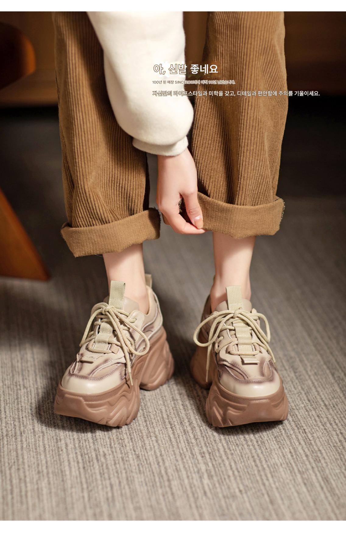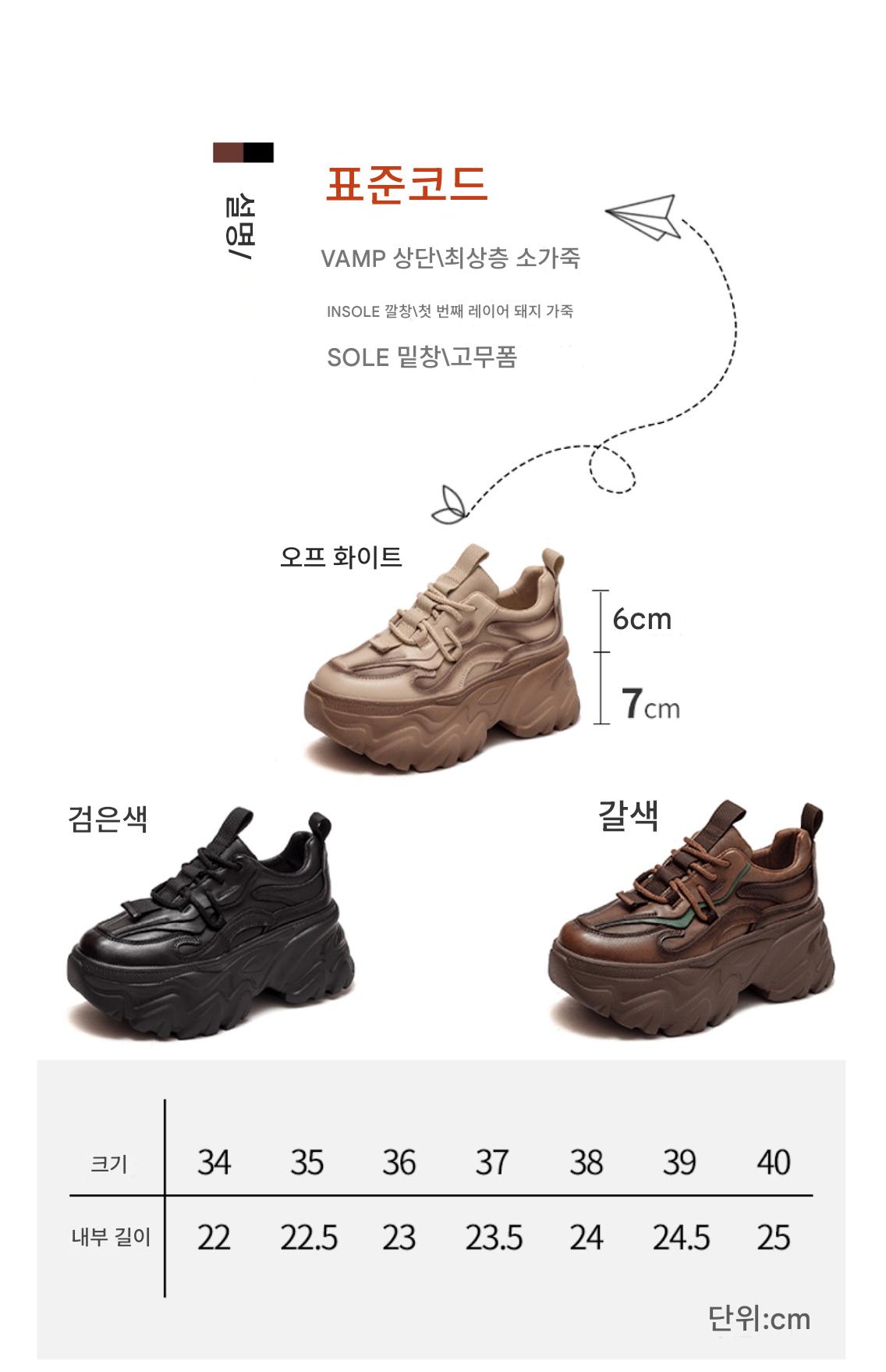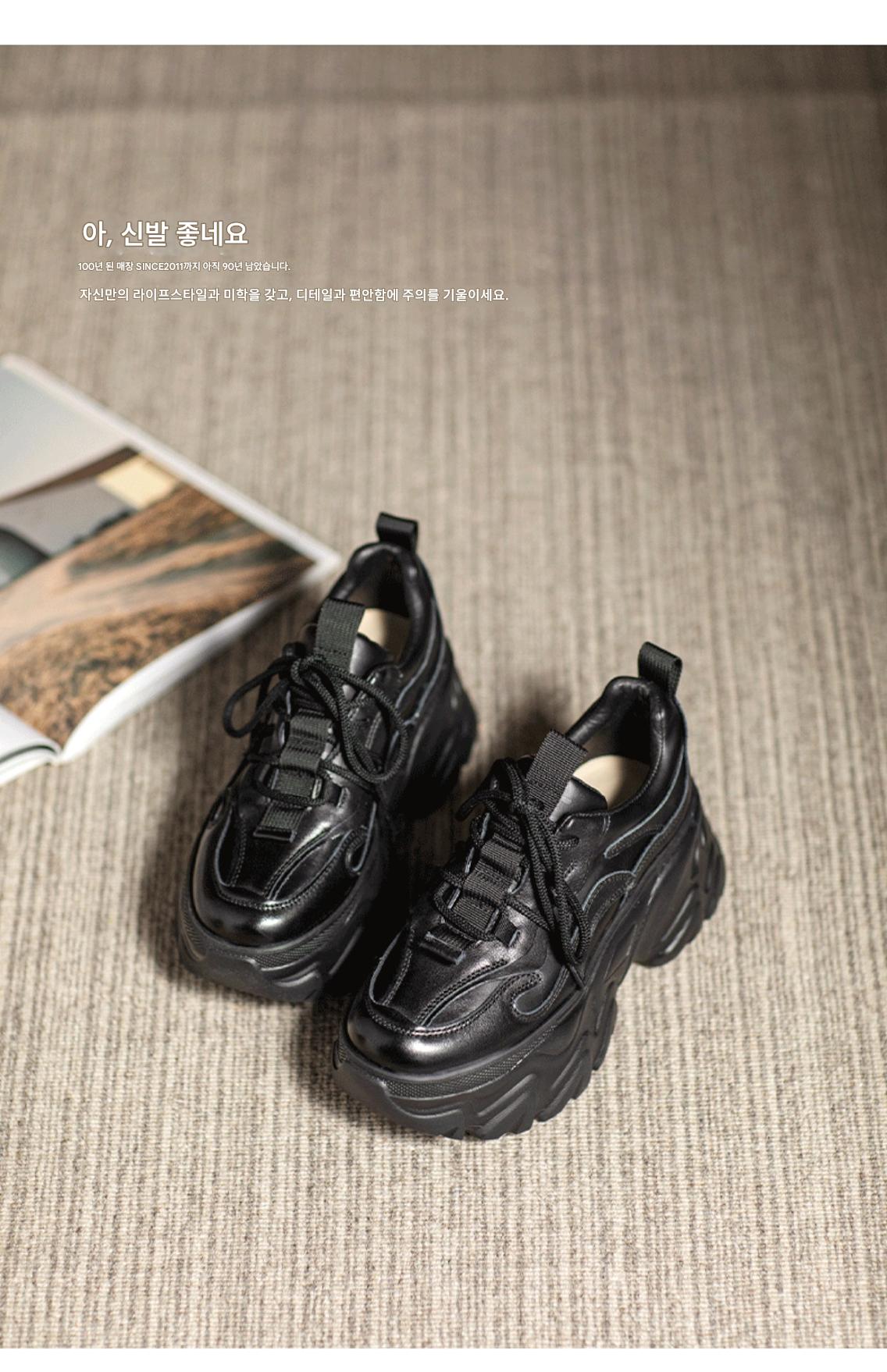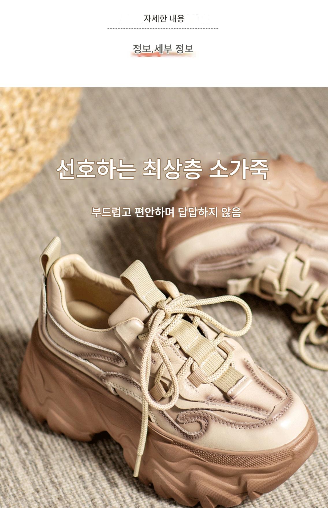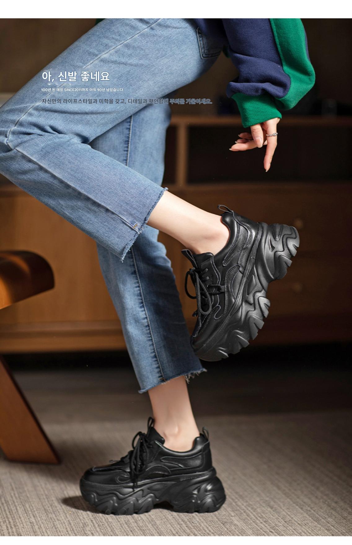 여성용 정품 가죽 레트로 두꺼운 밑창 아빠화, 키 키우기 작은 캐주얼 스포츠화, 여성용 하이힐 레이스업 소가죽 플랫폼화