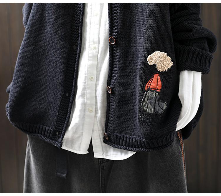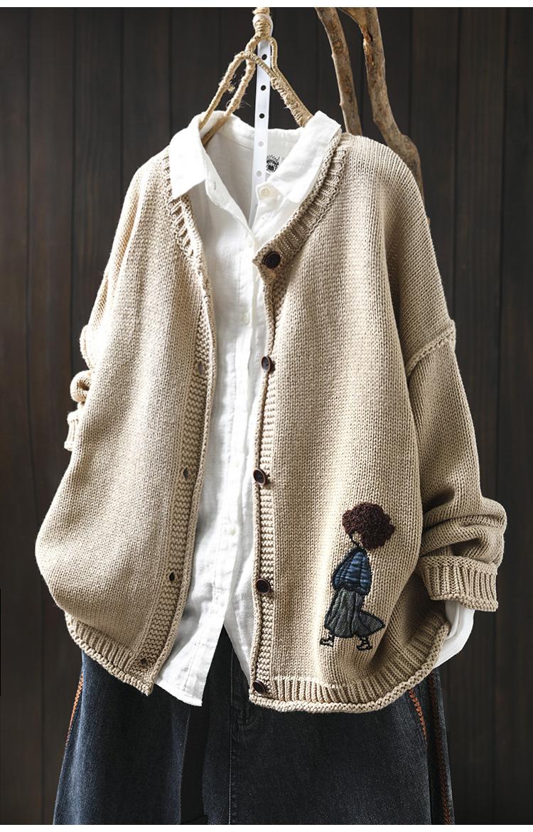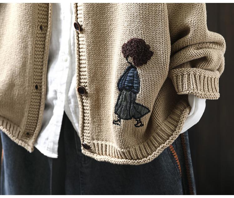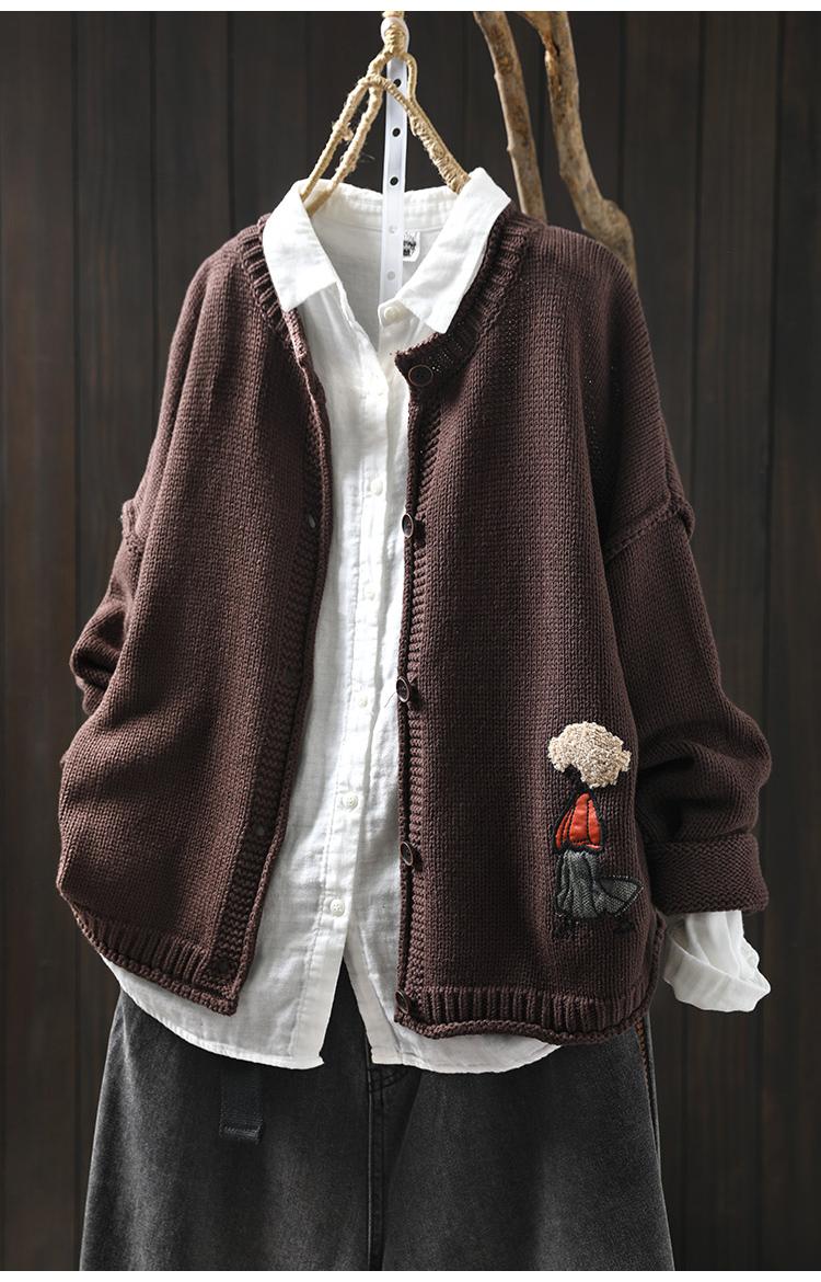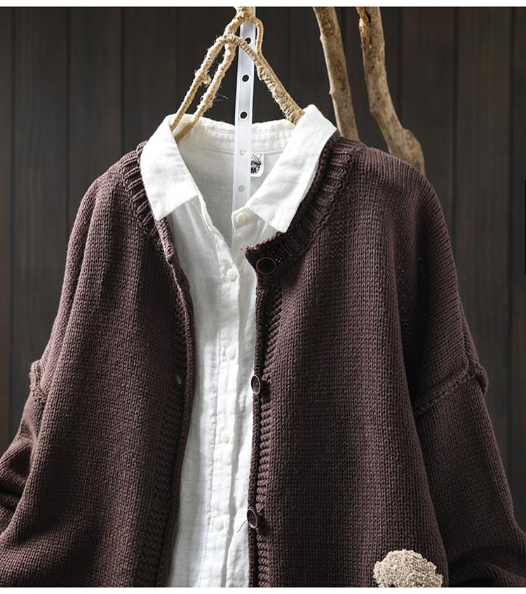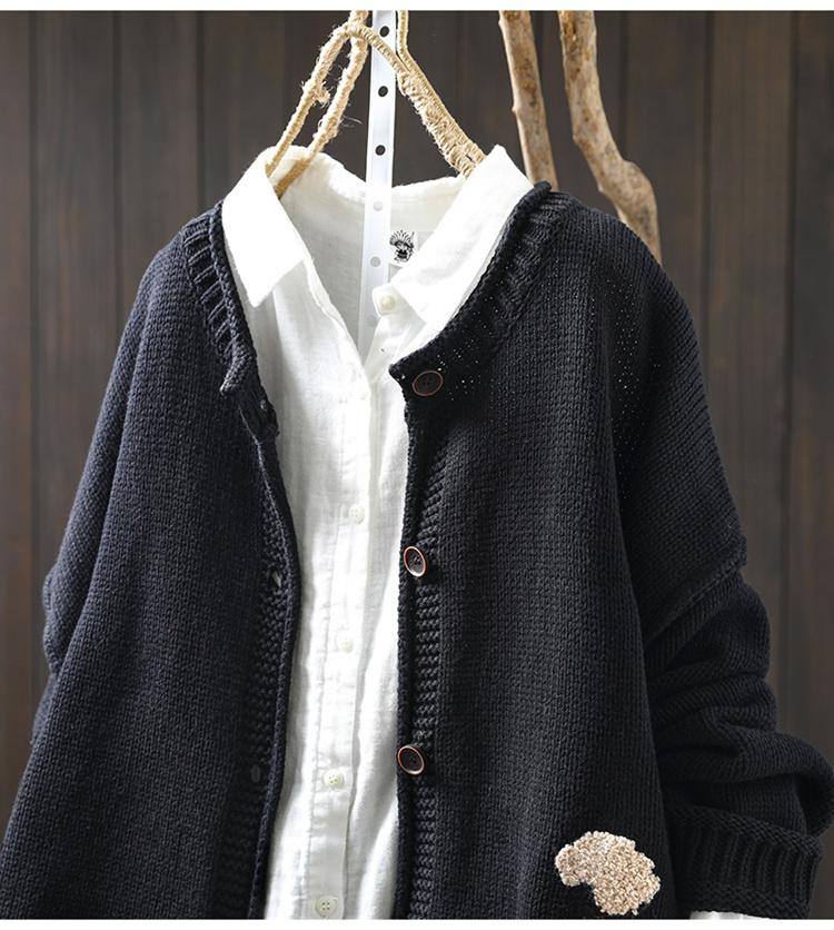 여성용 패치워크 피규어 코튼 원사 니트 카디건 재킷, 루즈하고 슬림, 2025년 가을 신상품 레트로 캐주얼 아우터웨어 탑