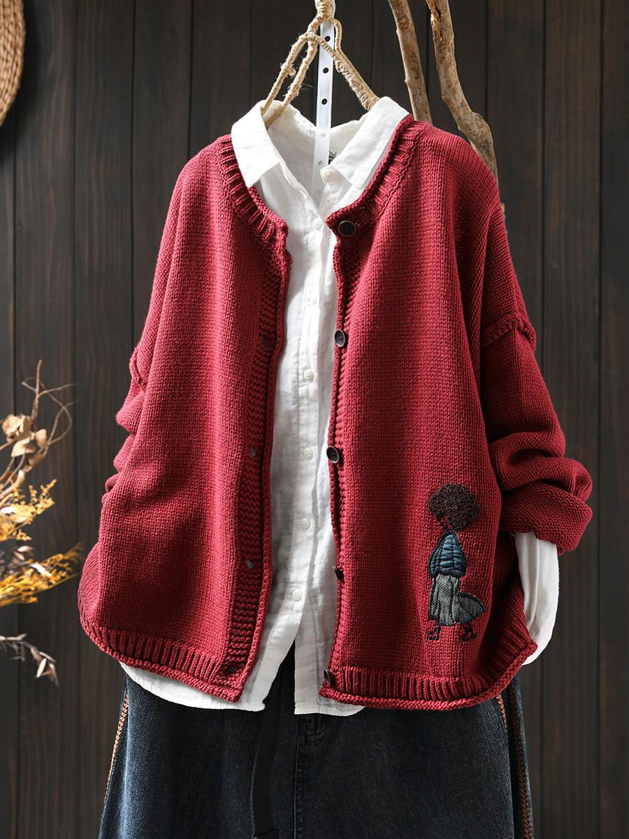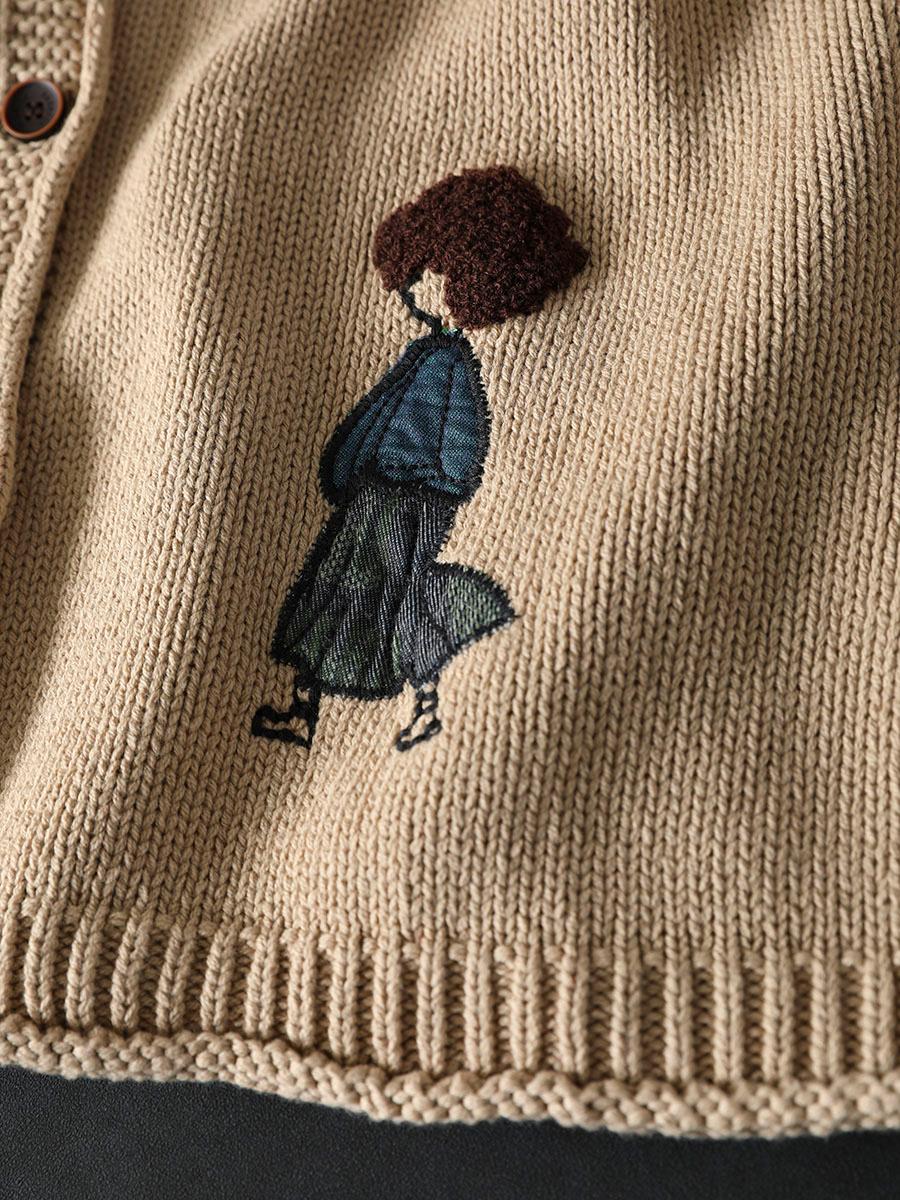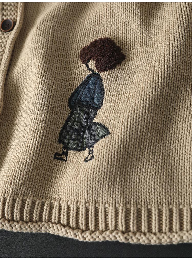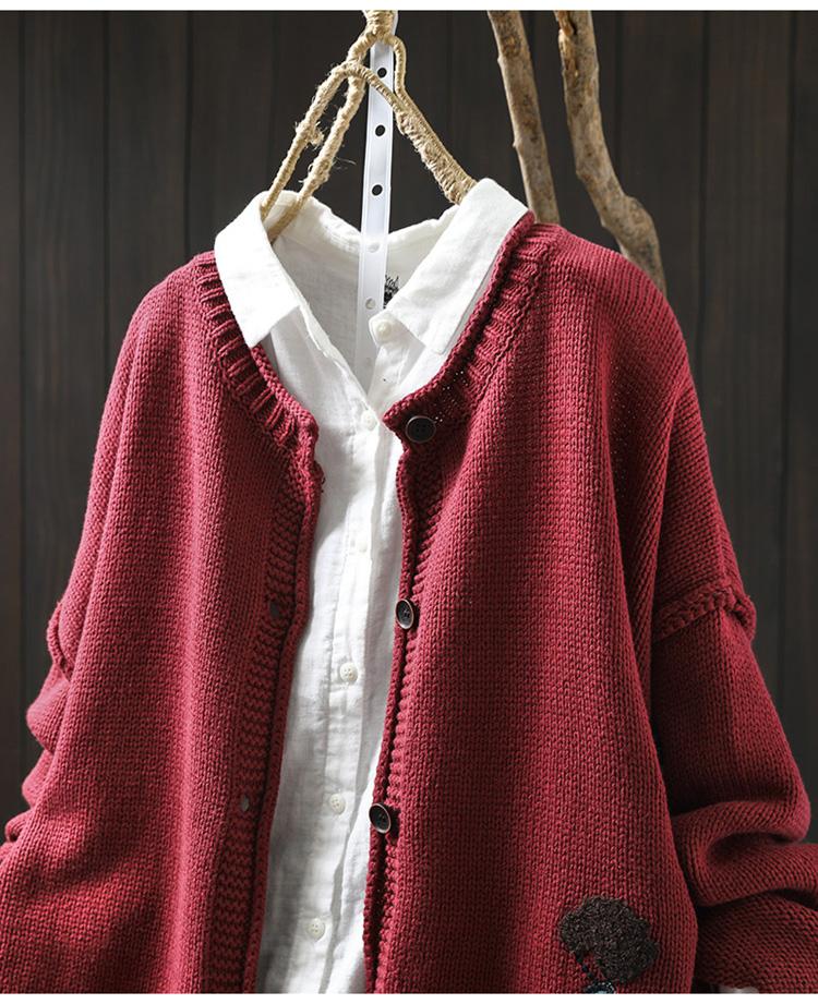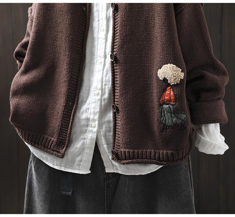 여성용 패치워크 피규어 코튼 원사 니트 카디건 재킷, 루즈하고 슬림, 2025년 가을 신상품 레트로 캐주얼 아우터웨어 탑