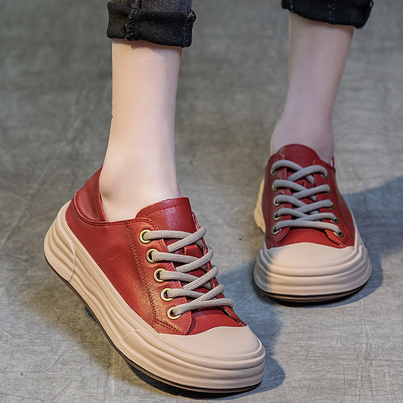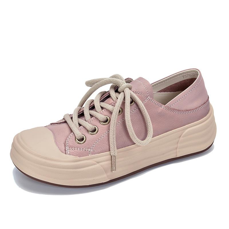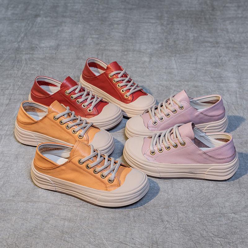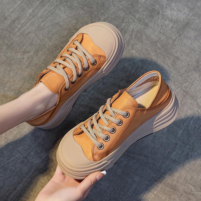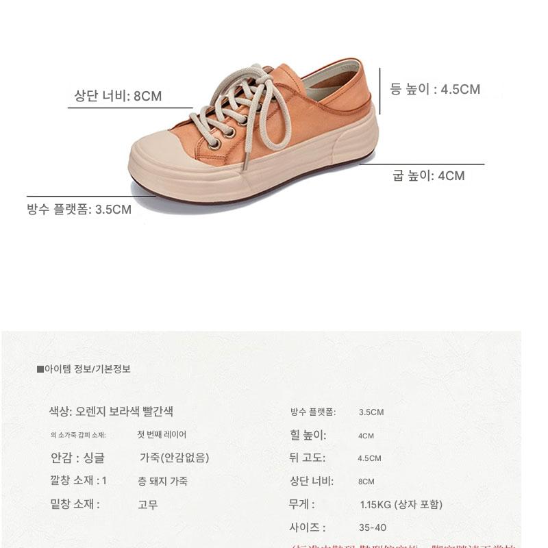 “여성용 2개 착용 화이트 슈즈 2024년 봄 여름 신상 탑 레이어 소가죽 캐주얼 슈즈 보라색 라운드 투 레이스업 두꺼운 밑창 여성용 슈즈”의 첫 상품평을 남겨 주세요