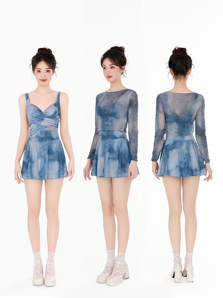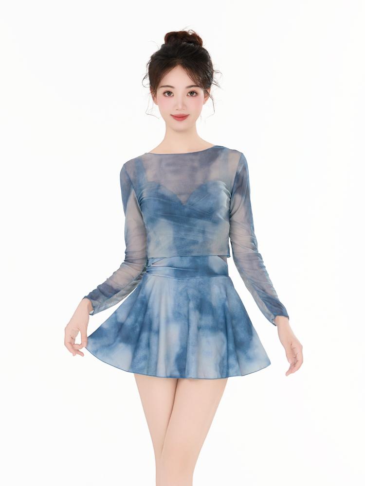 여성을 위한 새로운 투피스 긴팔 수영복, 고급 원피스 드레스, 보수적인 배 가리기, 슬리밍, 모임, 온천 리조트 스타일