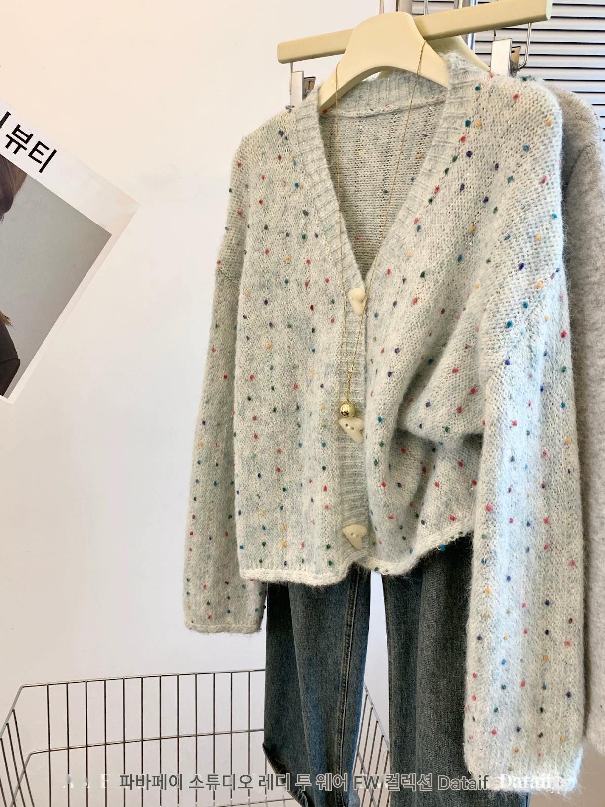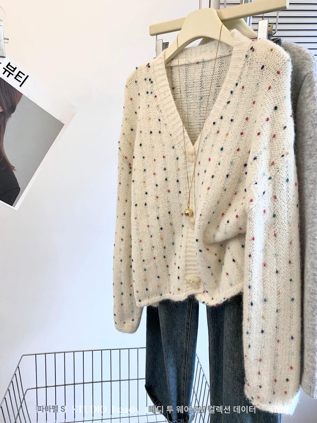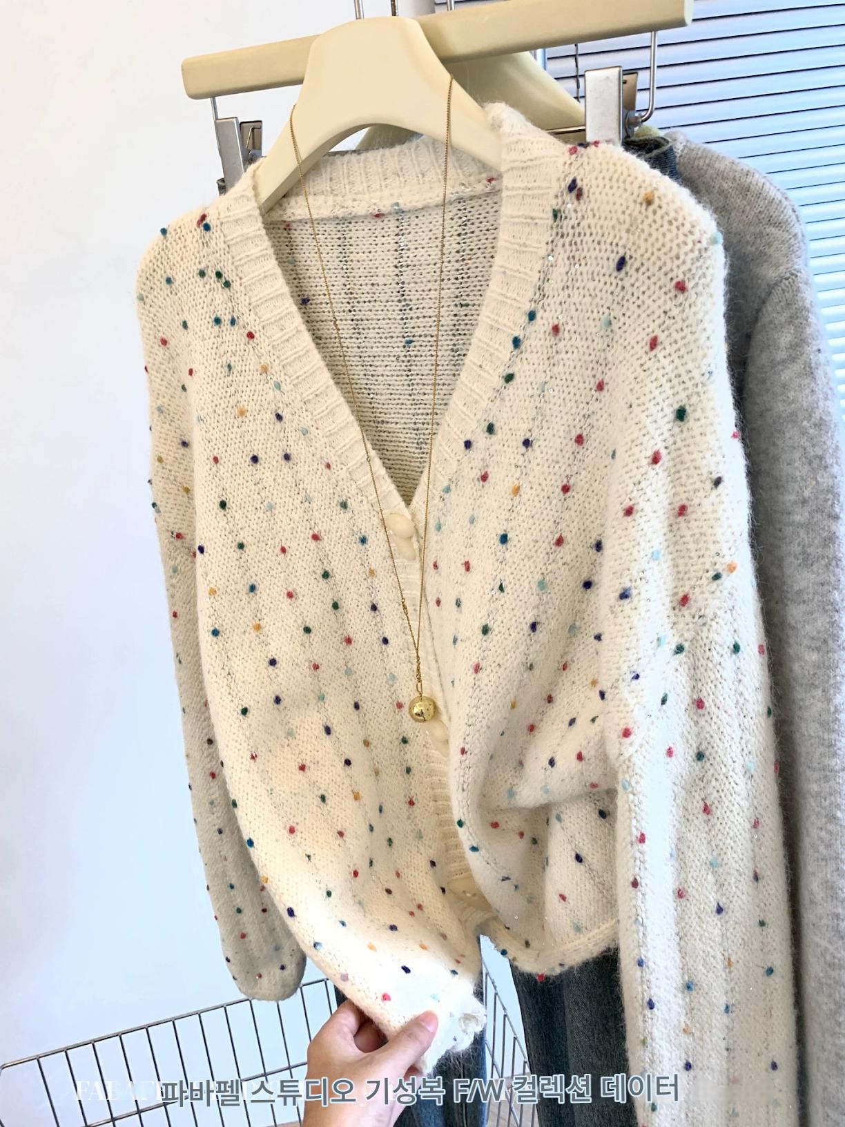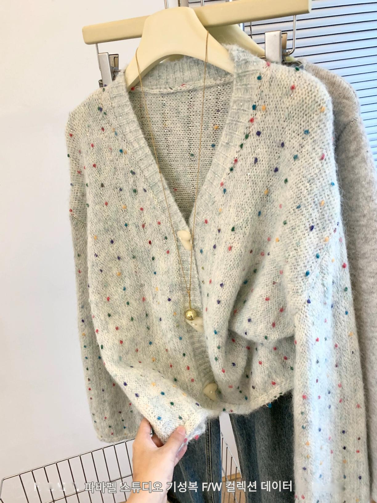 여성 가을 겨울용 부드러운 모헤어 니트 스웨터 스몰 사이즈 스웨터 재킷을 위한 부드러운 스타일의 다채로운 폼폼 V넥 카디건